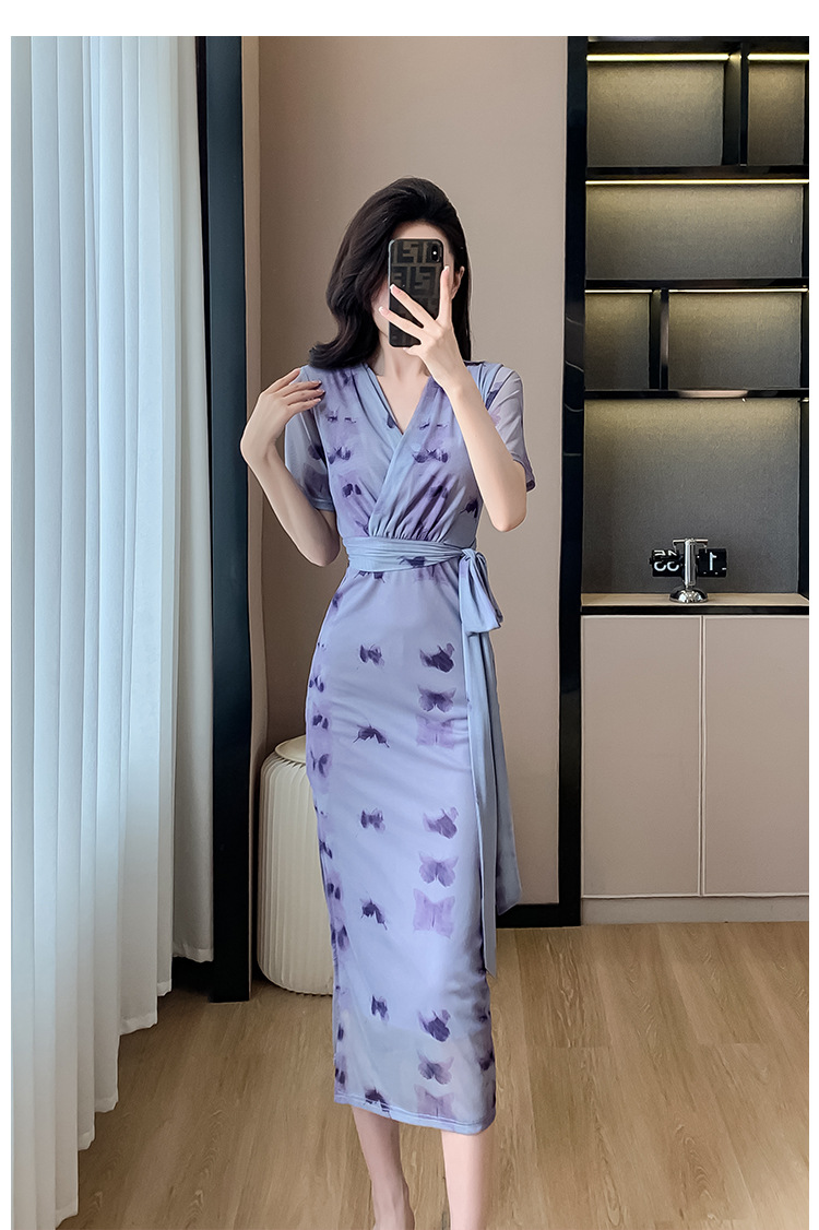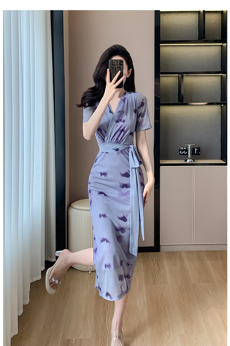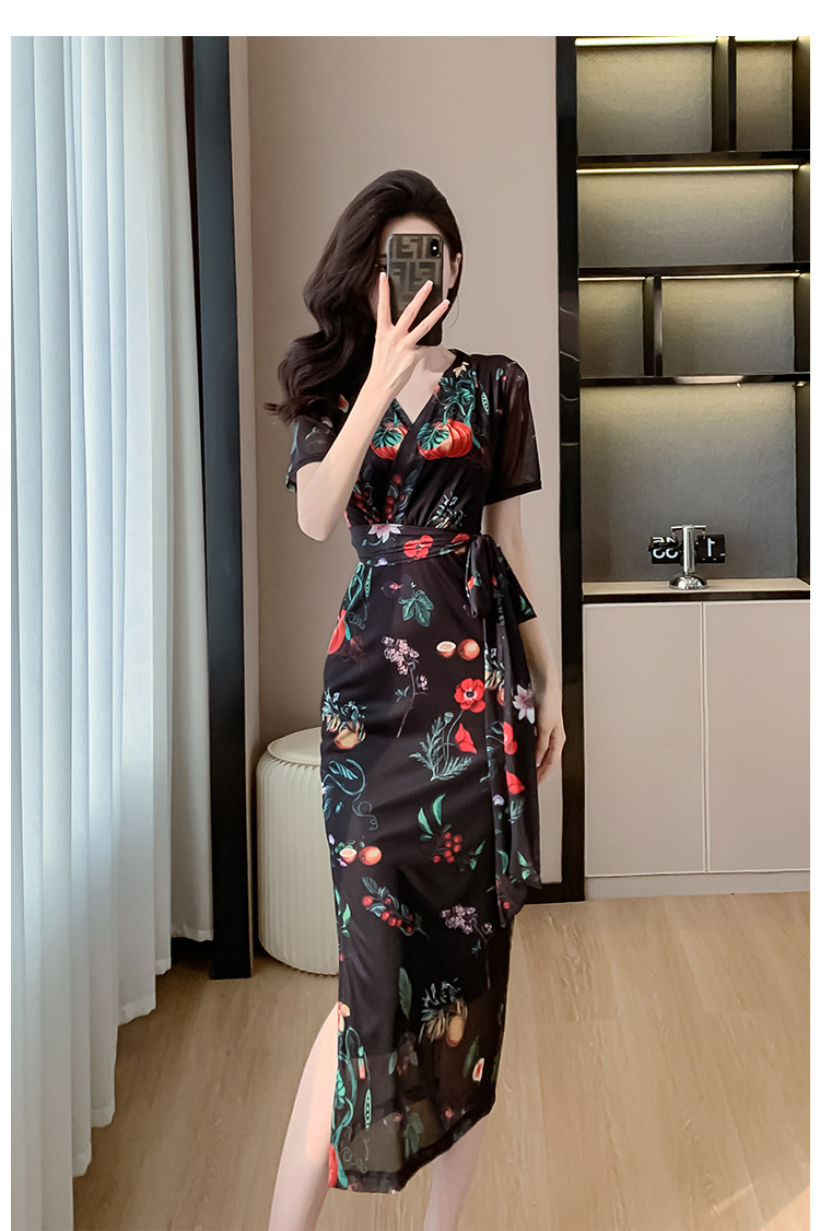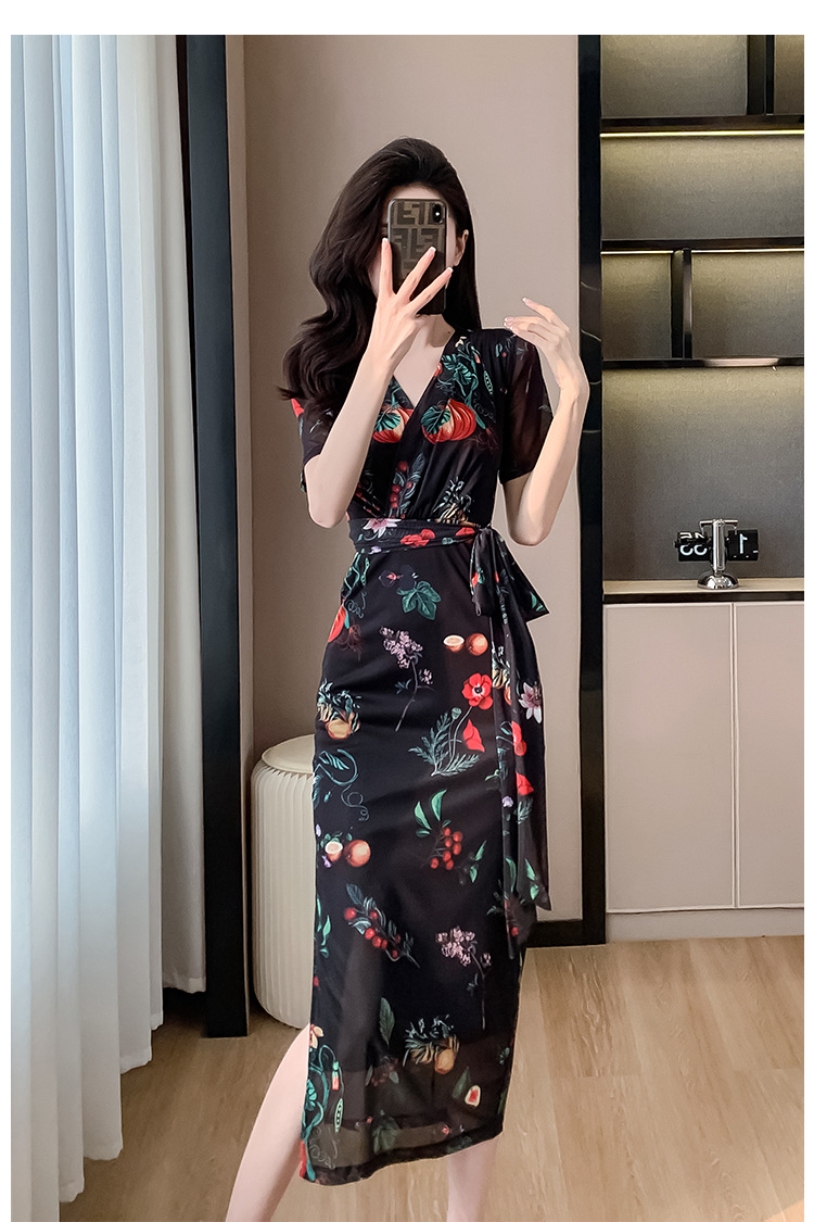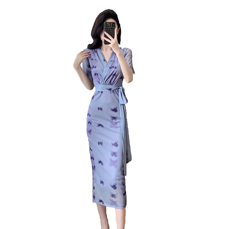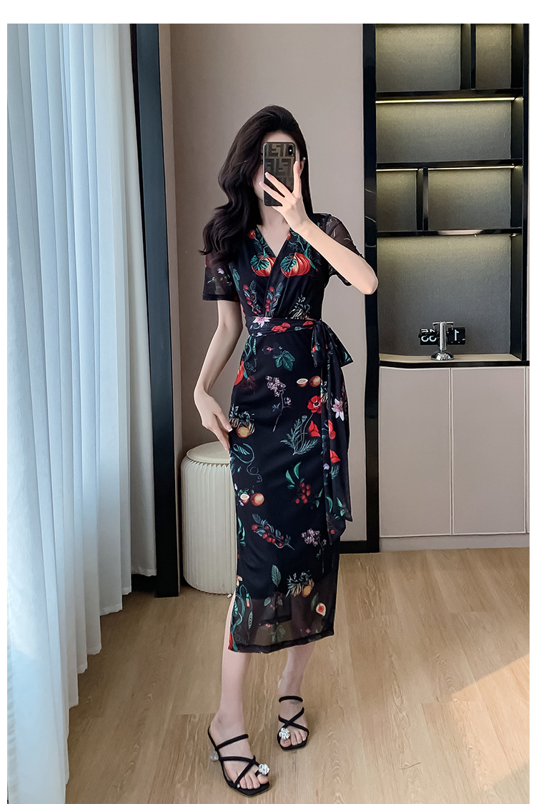 Chiếc đầm này mang nét đẹp kiểu cách với họa tiết in tinh tế. Thiết kế có cổ chữ V nhẹ nhàng, kết hợp dây buộc nơ duyên dáng. Chất vải mỏng nhẹ tạo cảm giác thoải mái, ôm nhẹ cơ thể và phom dáng bút chì giúp tôn đường nét. Sản phẩm phù hợp cho nhiều dịp đi chơi hay gặp mặt. Bạn có thể mặc cùng giày sandal hoặc giày gót thấp để hoàn thiện bộ trang phục. | Tên sản phẩm: Váy Đầm Liền Thân Nữ Dáng Ôm Lưới Mỏng Họa Tiết Hoa Cổ Chữ V Hàng Mùa Hè - Thời Trang Nữ | Mã sản phẩm: B0188 - Giá: 740.000đ | Mã nhà sản xuất: ZHOUT-G02Hình ảnh sản phẩm