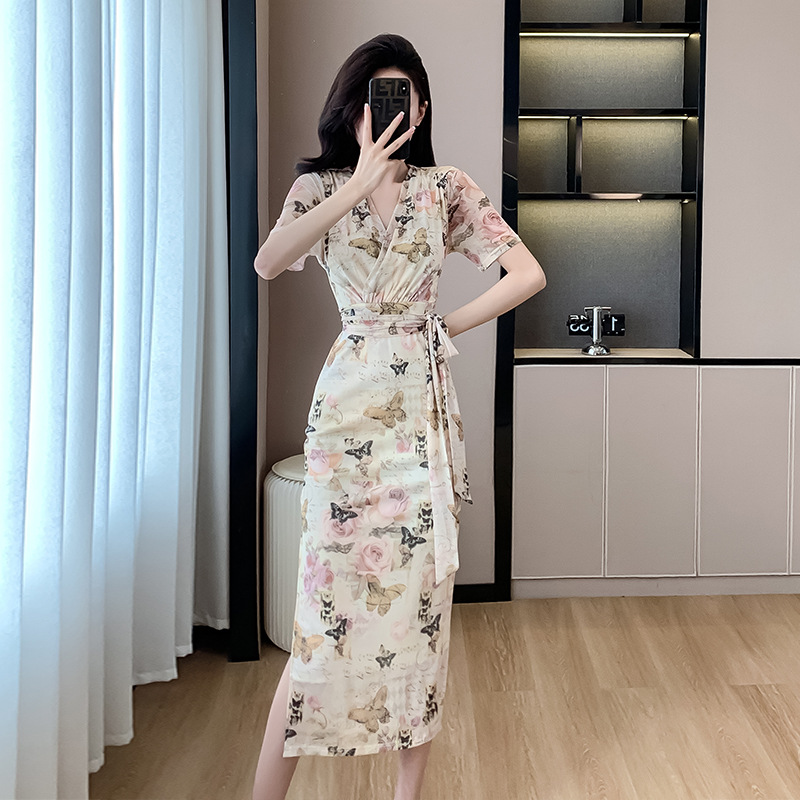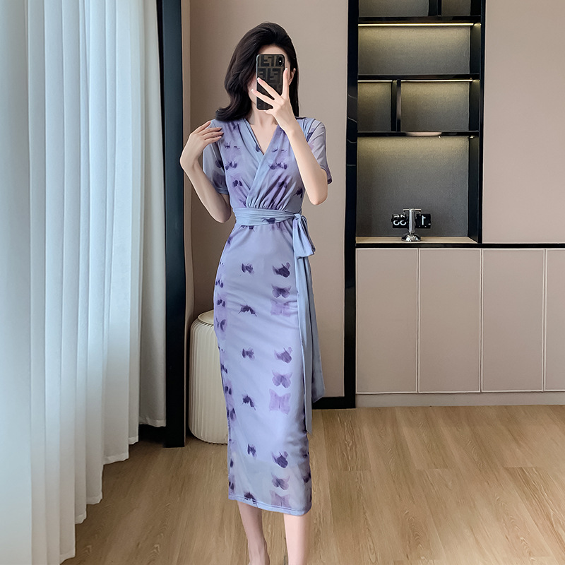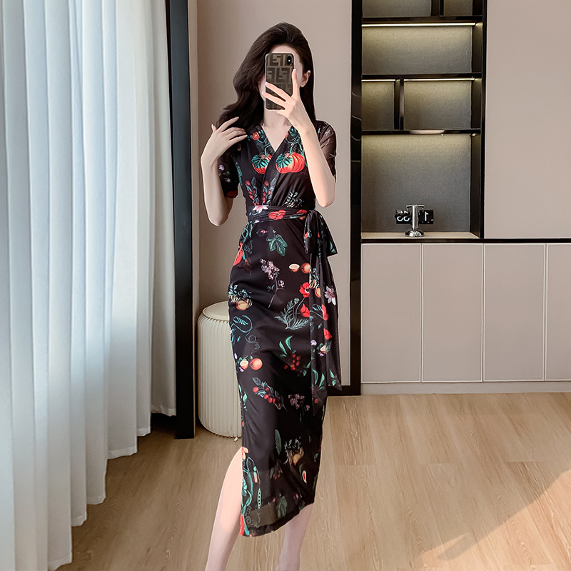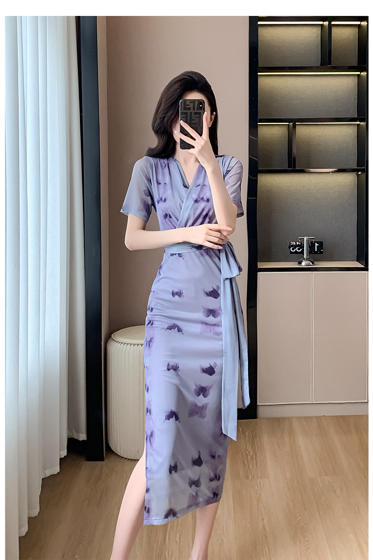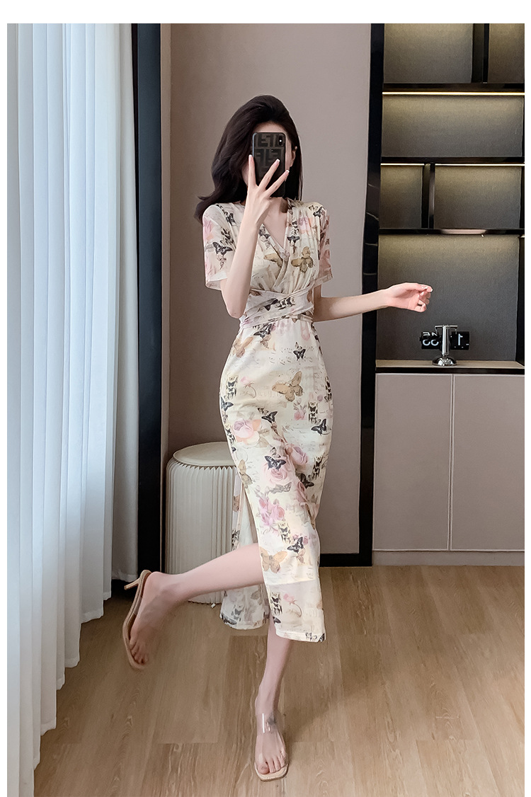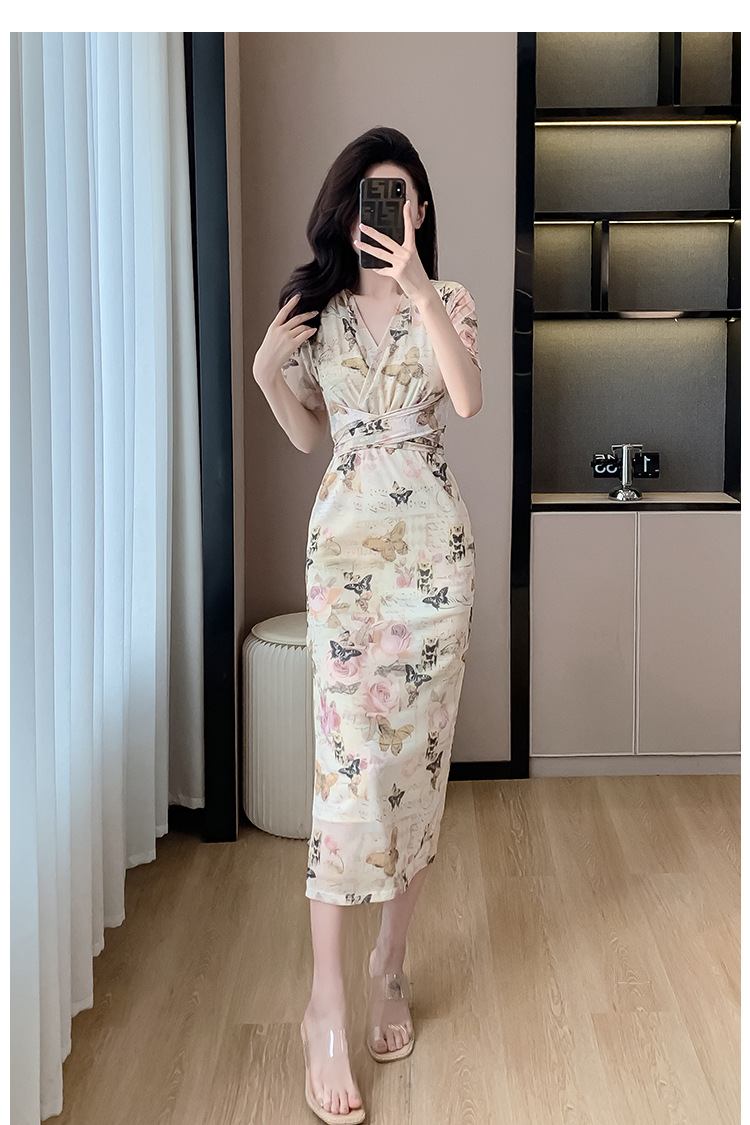 Chiếc đầm này mang nét đẹp kiểu cách với họa tiết in tinh tế. Thiết kế có cổ chữ V nhẹ nhàng, kết hợp dây buộc nơ duyên dáng. Chất vải mỏng nhẹ tạo cảm giác thoải mái, ôm nhẹ cơ thể và phom dáng bút chì giúp tôn đường nét. Sản phẩm phù hợp cho nhiều dịp đi chơi hay gặp mặt. Bạn có thể mặc cùng giày sandal hoặc giày gót thấp để hoàn thiện bộ trang phục. | Tên sản phẩm: Váy Đầm Liền Thân Nữ Dáng Ôm Lưới Mỏng Họa Tiết Hoa Cổ Chữ V Hàng Mùa Hè - Thời Trang Nữ | Mã sản phẩm: B0188 - Giá: 740.000đ | Mã nhà sản xuất: ZHOUT-G02Hình ảnh sản phẩm
