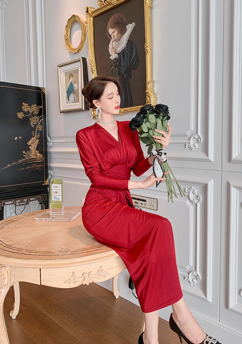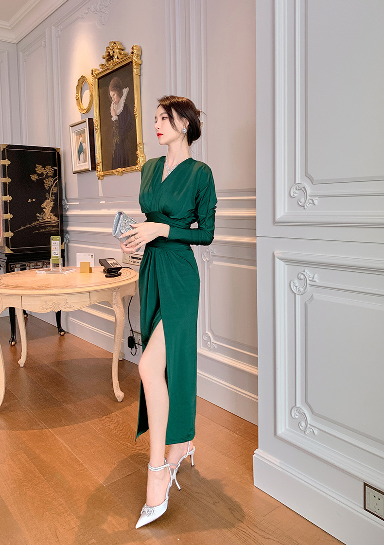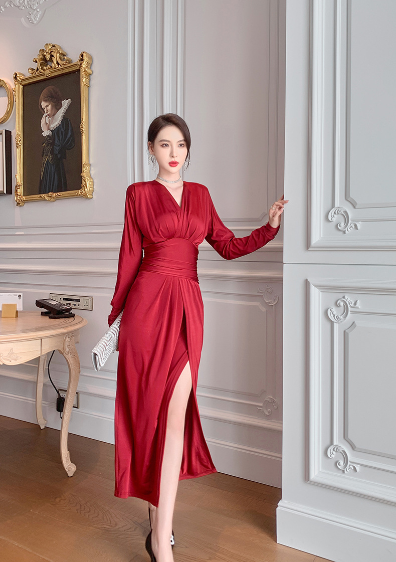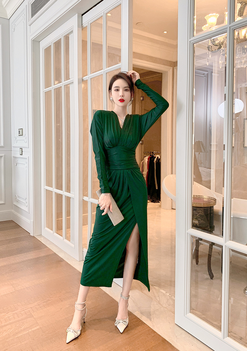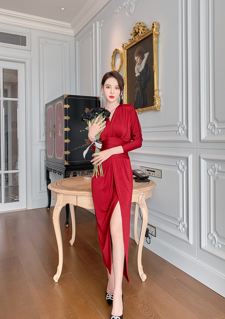 Chiếc đầm dáng dài cho thu 2025 mang phong cách cổ điển nhẹ nhàng. Thiết kế có cổ chữ V, eo được nâng cao giúp tôn dáng. Điểm nhấn là phần vạt xẻ tinh tế và thân trên ôm vừa vặn, tạo nên nét duyên dáng. Sản phẩm phù hợp cho nhiều dịp đi chơi hoặc gặp mặt. Cách sử dụng đơn giản, mặc kết hợp cùng giày sandal hoặc giày đế bằng. | Tên sản phẩm: Váy Đầm Liền Thân Dáng Dài Nữ Cổ Chữ V Hàng Mùa Xuân Thu Đông Phục Cổ Cổ Điển - Thời Trang Nữ | Mã sản phẩm: B0201 - Giá: 1.120.000đ | Mã nhà sản xuất: CHDG-G04Hình ảnh sản phẩm