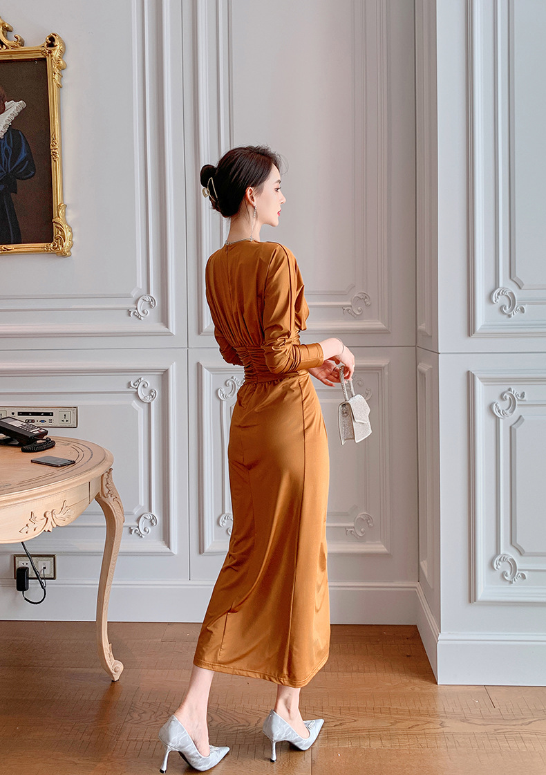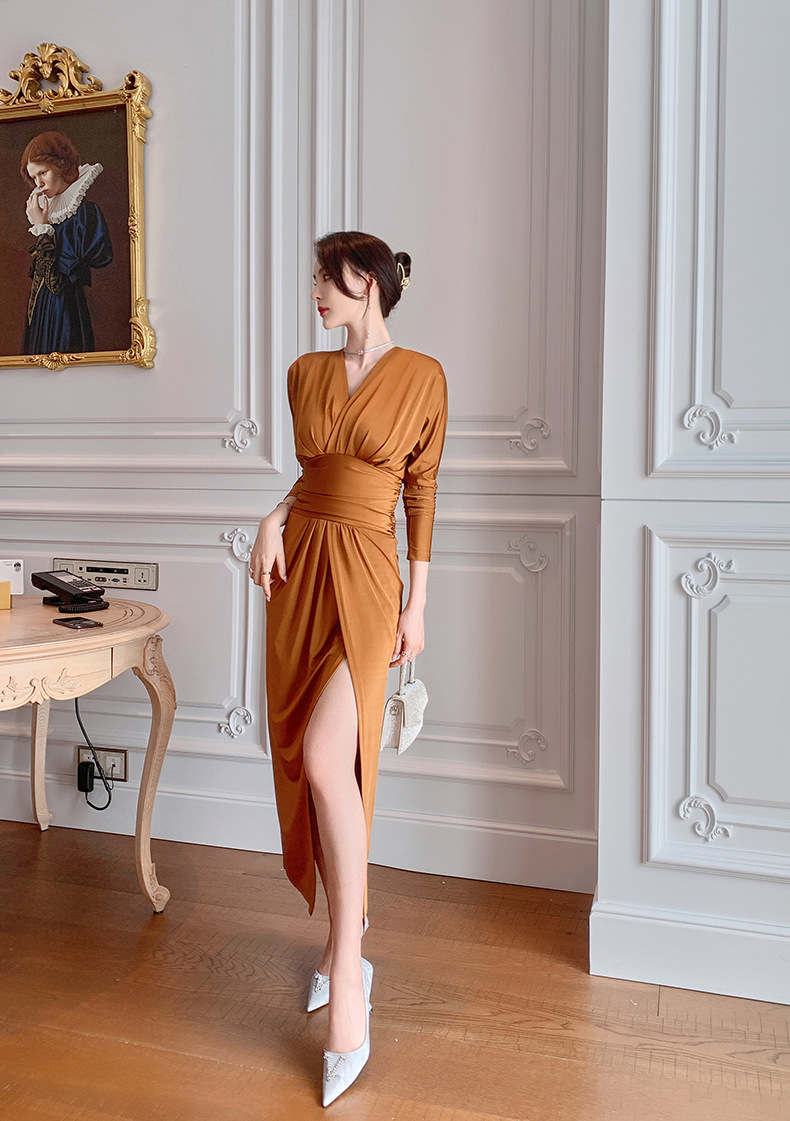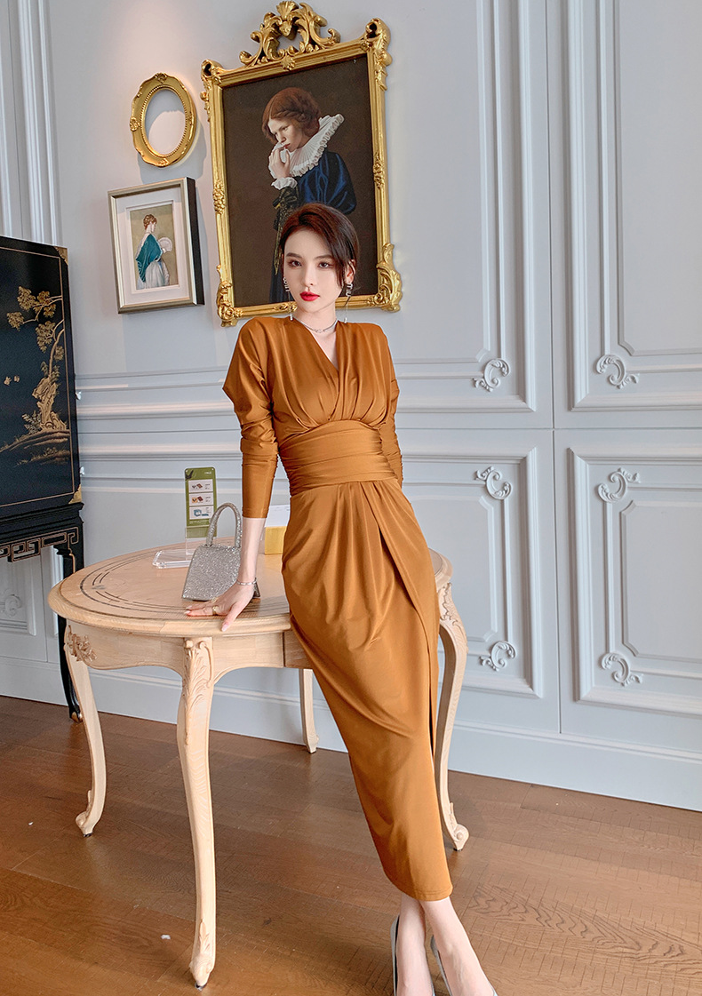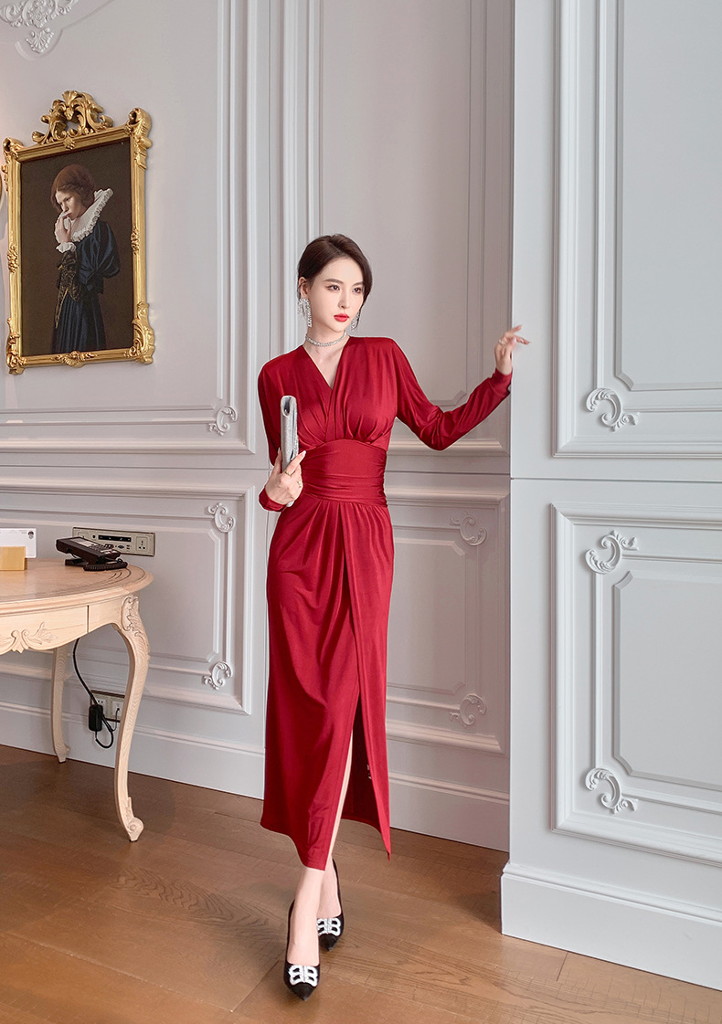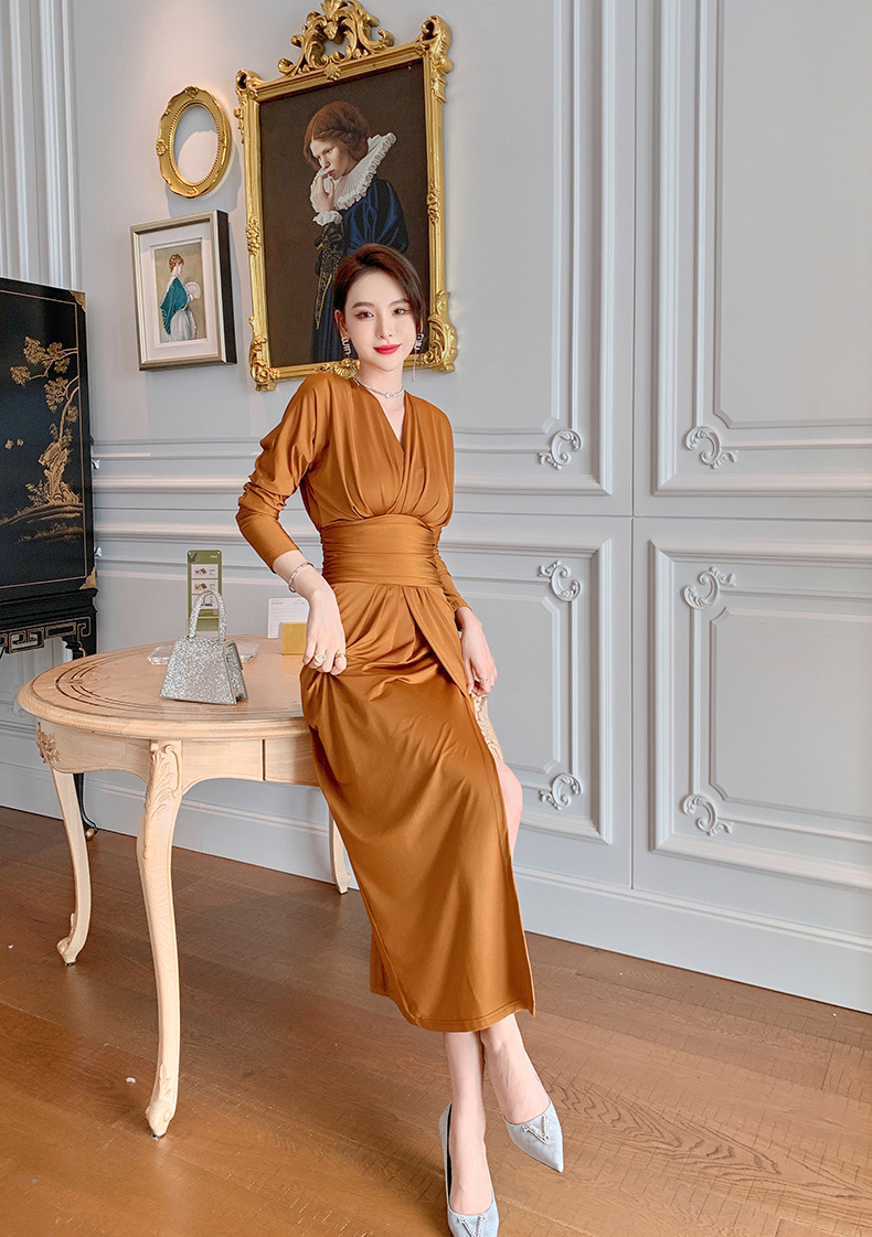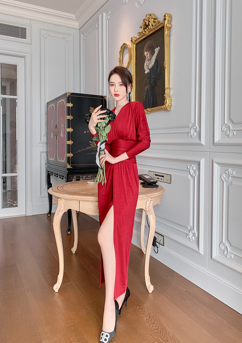 Chiếc đầm dáng dài cho thu 2025 mang phong cách cổ điển nhẹ nhàng. Thiết kế có cổ chữ V, eo được nâng cao giúp tôn dáng. Điểm nhấn là phần vạt xẻ tinh tế và thân trên ôm vừa vặn, tạo nên nét duyên dáng. Sản phẩm phù hợp cho nhiều dịp đi chơi hoặc gặp mặt. Cách sử dụng đơn giản, mặc kết hợp cùng giày sandal hoặc giày đế bằng. | Tên sản phẩm: Váy Đầm Liền Thân Dáng Dài Nữ Cổ Chữ V Hàng Mùa Xuân Thu Đông Phục Cổ Cổ Điển - Thời Trang Nữ | Mã sản phẩm: B0201 - Giá: 1.120.000đ | Mã nhà sản xuất: CHDG-G04Hình ảnh sản phẩm