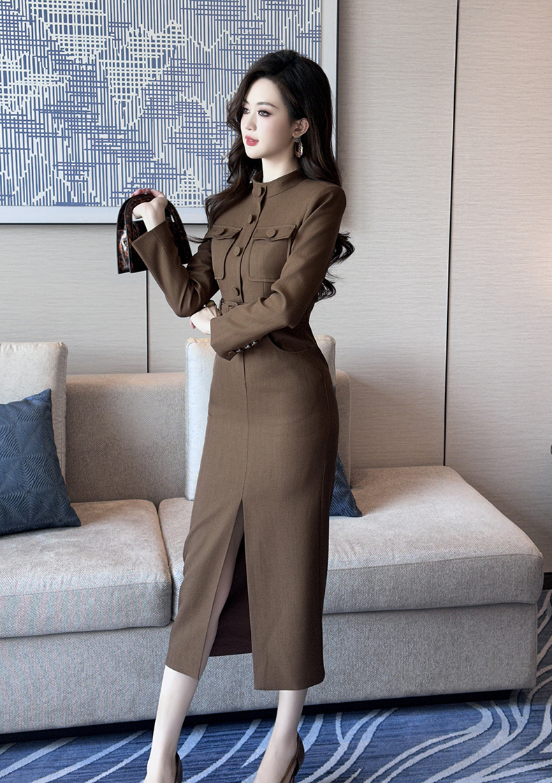Chiếc váy dài tay này có thiết kế ôm sát tôn dáng, điểm nhấn là phần xẻ tà nhẹ nhàng giúp bạn dễ dàng di chuyển. Cổ tròn đơn giản tạo cảm giác thoải mái, phù hợp cho tiết trời thu. Váy dài qua gối, kiểu dáng lịch sự, có thể mặc đi làm hoặc dự các sự kiện thường ngày. Chỉ cần phối cùng giày và phụ kiện phù hợp là bạn đã có một set đồ hoàn chỉnh. | Tên sản phẩm: Váy Đầm Liền Thân Dáng Dài Nữ Dài Quá Gối Hàng Mùa Xuân Thu Đông - Thời Trang Nữ | Mã sản phẩm: B0211 - Giá: 1.380.000đ | Mã nhà sản xuất: CHDG-G04Hình ảnh sản phẩm
