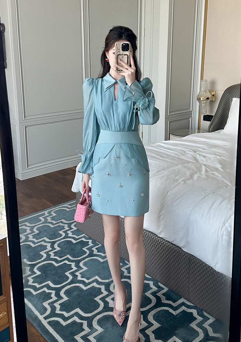 Chiếc đầm ôm dáng dành cho nữ, điểm nhấn là cổ áo kiểu búp bê cách điệu, mang nét đẹp thanh lịch. Tay dài phối kiểu loe cùng các hạt đính lấp lánh tạo nên sự duyên dáng. Thiết kế này phù hợp cho những ngày thu đông. Có thể mặc đi làm, dự tiệc hoặc gặp mặt bạn bè. Khi giặt, nên giặt nhẹ nhàng bằng tay và phơi nơi thoáng mát để giữ dáng đẹp và độ bền cho sản phẩm. | Tên sản phẩm: Váy Đầm Liền Thân Nữ Dài Tay Trông Trẻ Hơn Tuổi Hàng Mùa Xuân Thu Đông - Thời Trang Nữ | Mã sản phẩm: B0217 - Giá: 1.380.000đ | Mã nhà sản xuất: CHDG-G04Hình ảnh sản phẩm