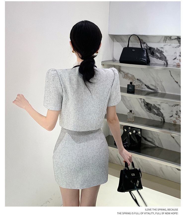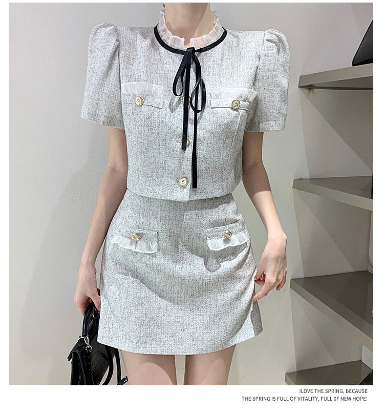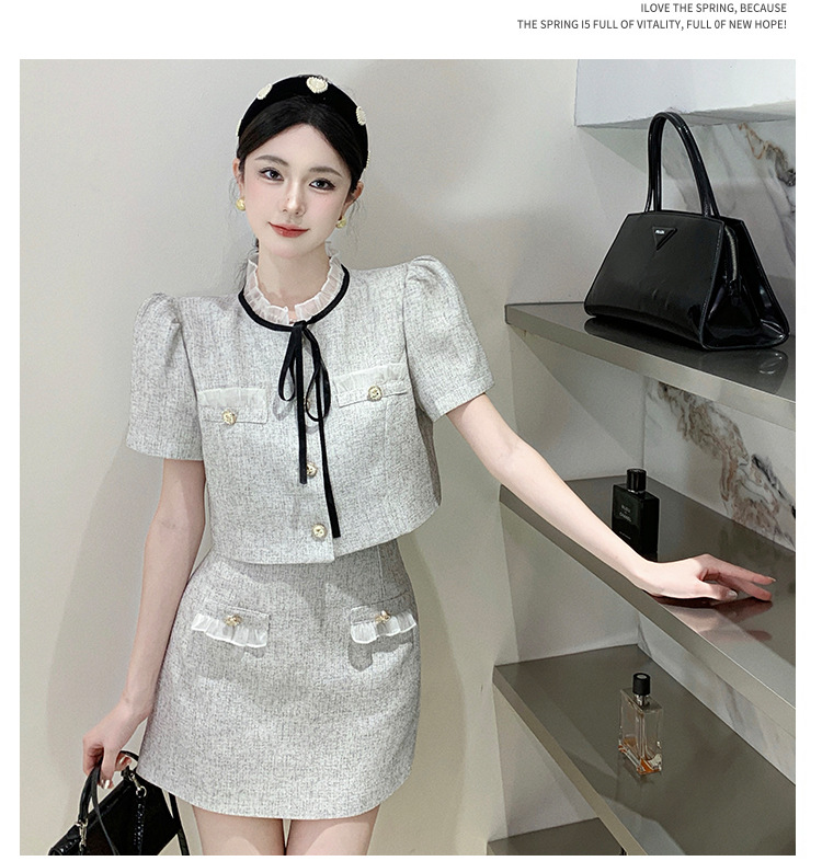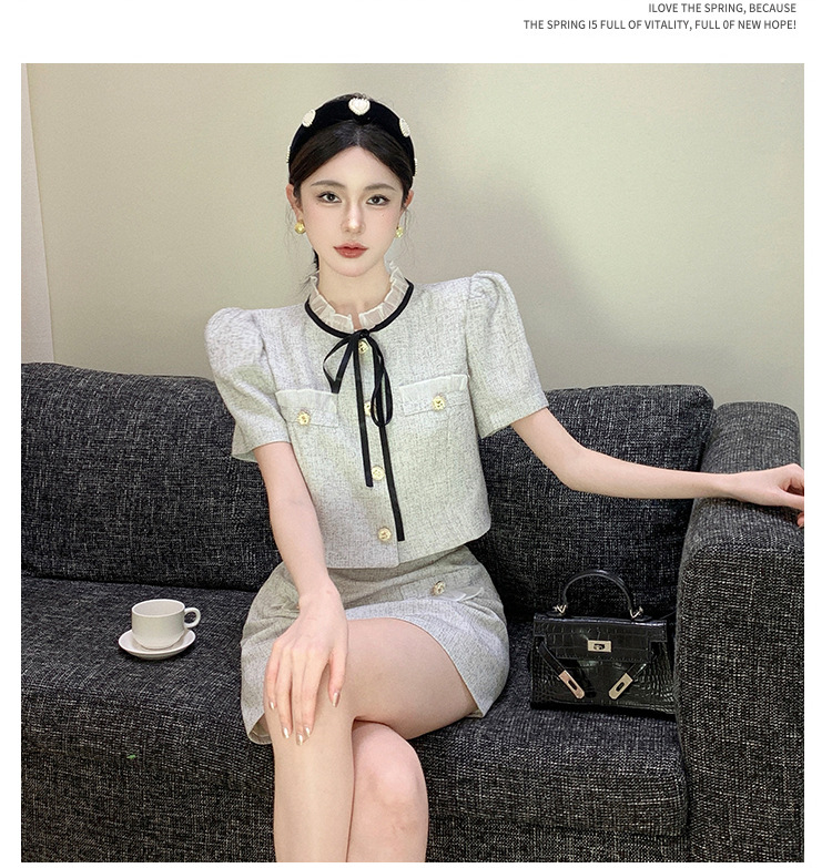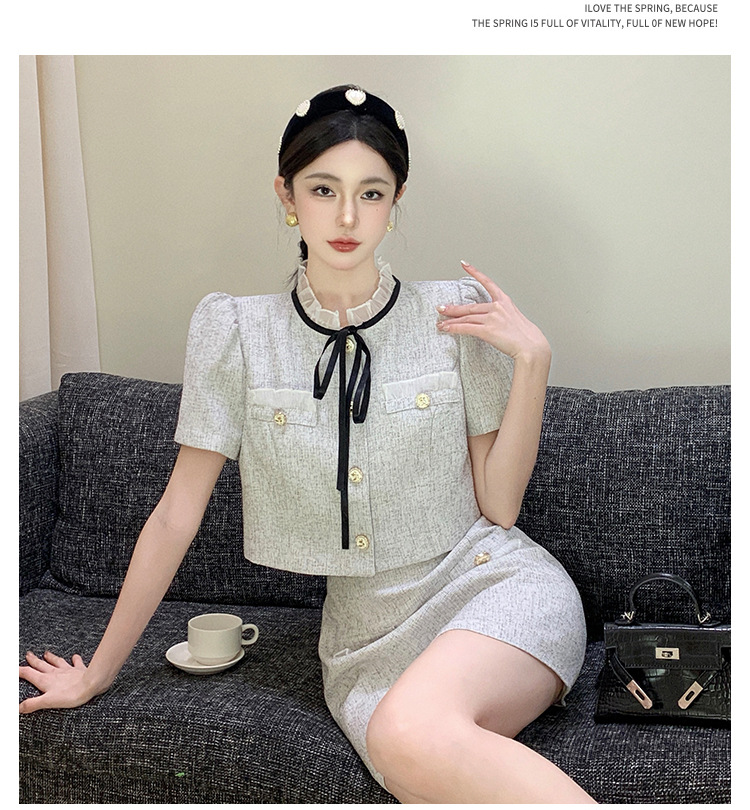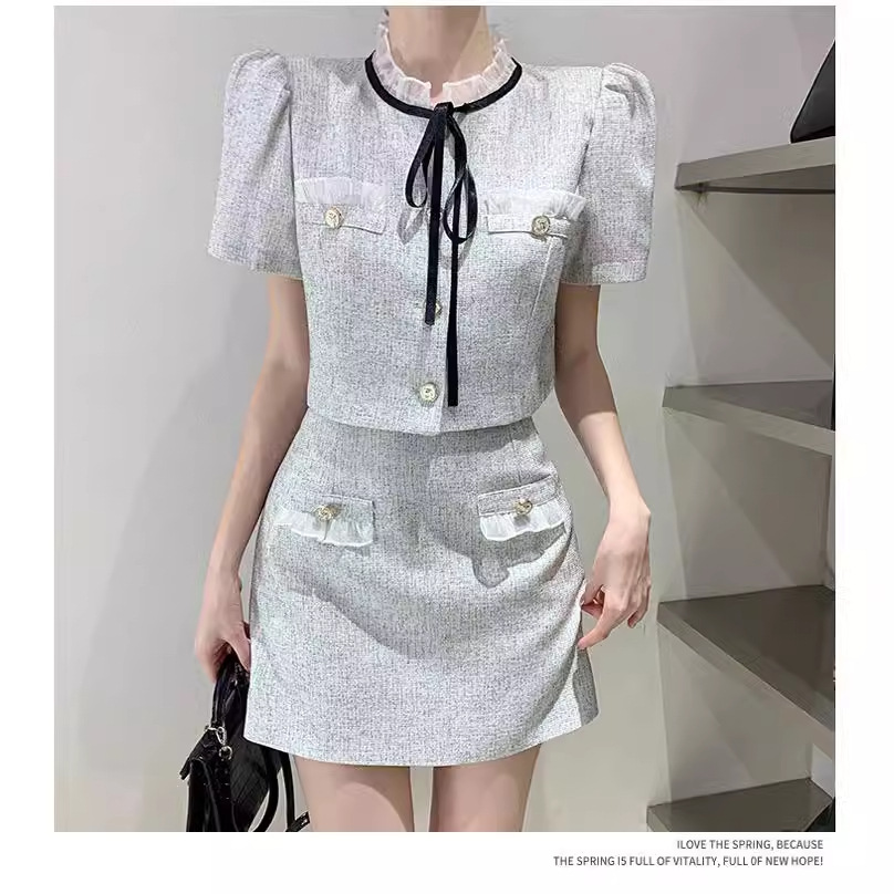 Bộ trang phục hai mảnh này mang đến vẻ đẹp nhẹ nhàng, thanh lịch. Áo khoác ngắn tay có viền t mèo và dây buộc eo tạo điểm nhấn. Chân váy dáng dài tôn lên vóc dáng. Chất vải mềm mại, thoáng mát, phù hợp cho mùa hè. Có thể mặc đi làm, dạo phố hay các buổi gặp mặt. Phối cùng giày cao gót và túi xách nhỏ để hoàn thiện bộ trang phục. | Tên sản phẩm: Áo Khoác Nữ Cả Bộ 2 Món Hàng Mùa Hè - Thời Trang Nữ | Mã sản phẩm: B0222 - Giá: 980.000đ | Mã nhà sản xuất: ZHOUT-G03Hình ảnh sản phẩm