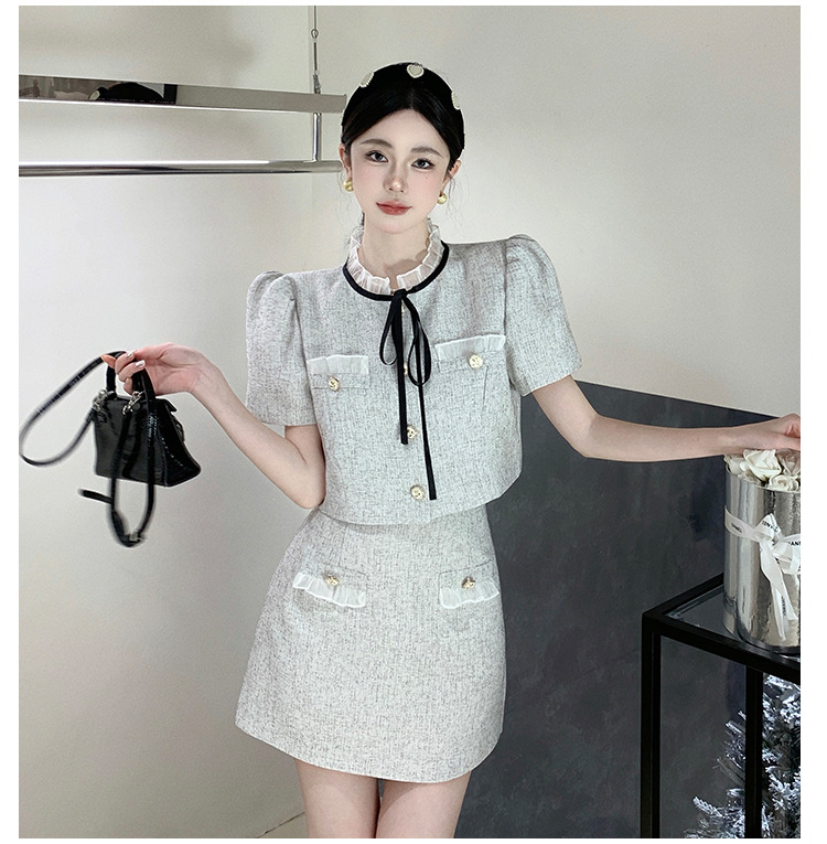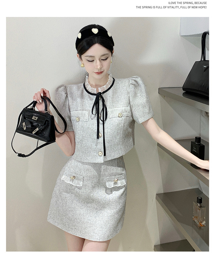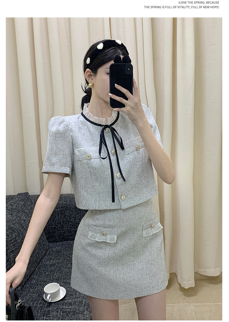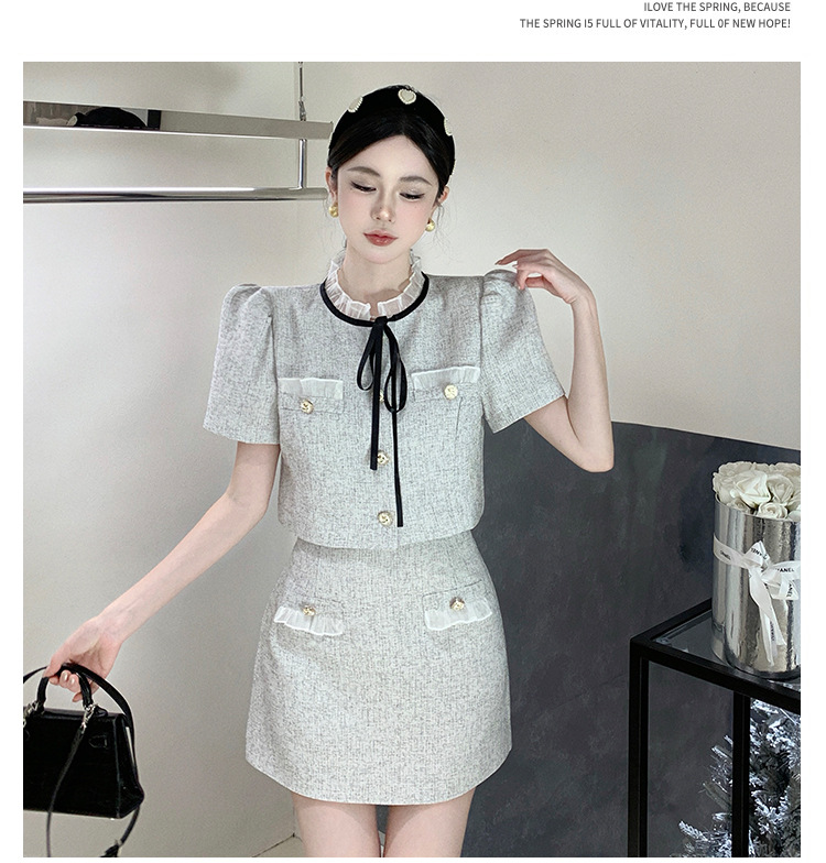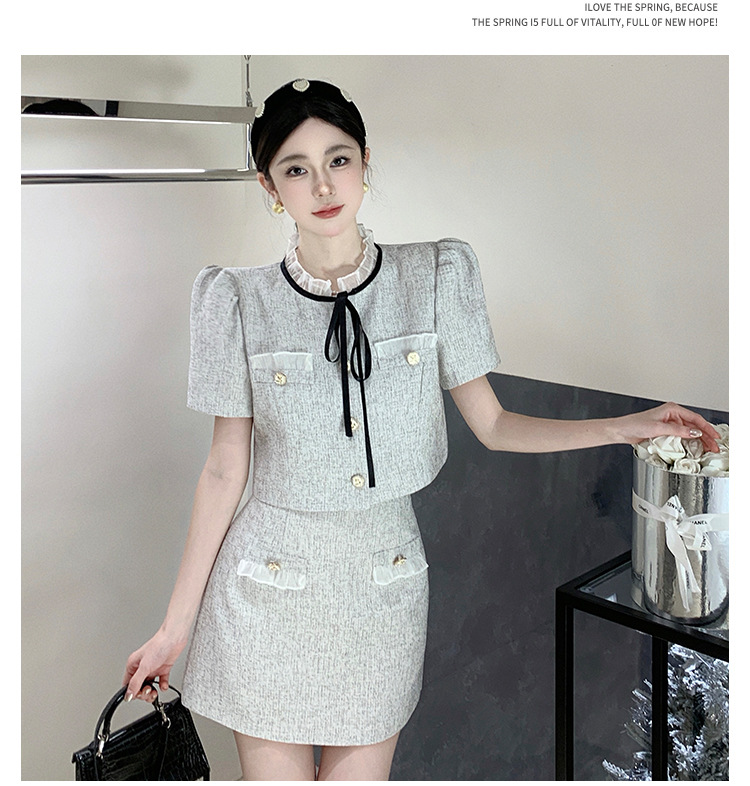 Bộ trang phục hai mảnh này mang đến vẻ đẹp nhẹ nhàng, thanh lịch. Áo khoác ngắn tay có viền t mèo và dây buộc eo tạo điểm nhấn. Chân váy dáng dài tôn lên vóc dáng. Chất vải mềm mại, thoáng mát, phù hợp cho mùa hè. Có thể mặc đi làm, dạo phố hay các buổi gặp mặt. Phối cùng giày cao gót và túi xách nhỏ để hoàn thiện bộ trang phục. | Tên sản phẩm: Áo Khoác Nữ Cả Bộ 2 Món Hàng Mùa Hè - Thời Trang Nữ | Mã sản phẩm: B0222 - Giá: 980.000đ | Mã nhà sản xuất: ZHOUT-G03Hình ảnh sản phẩm