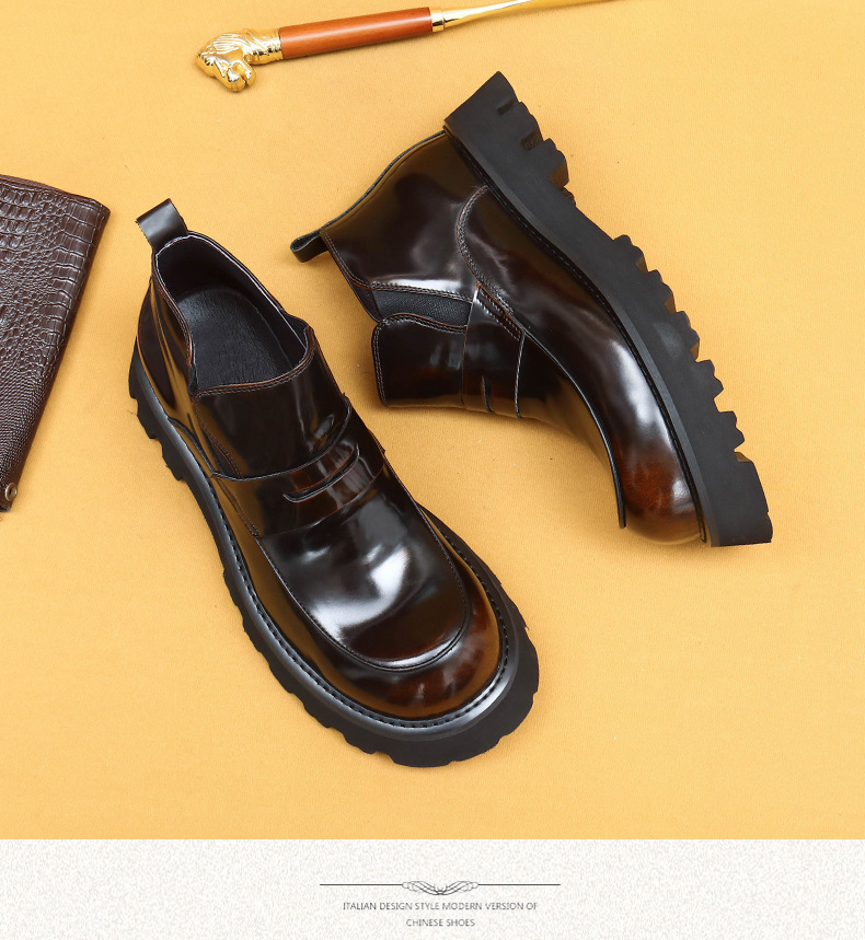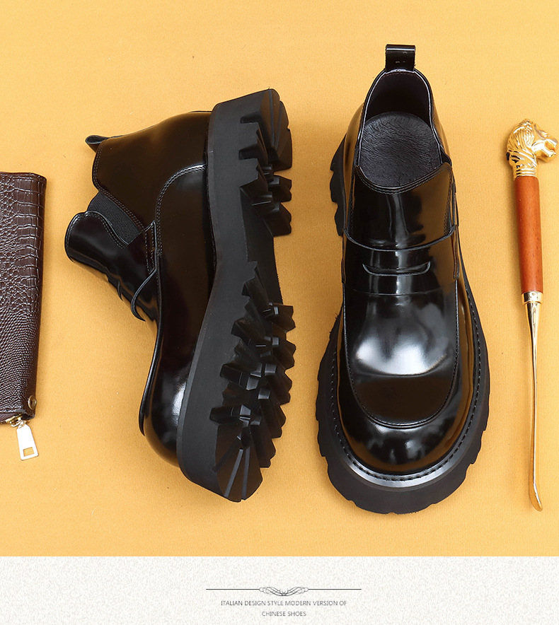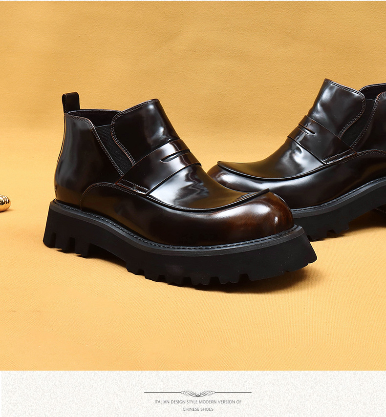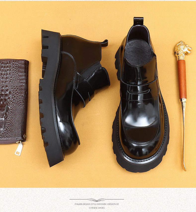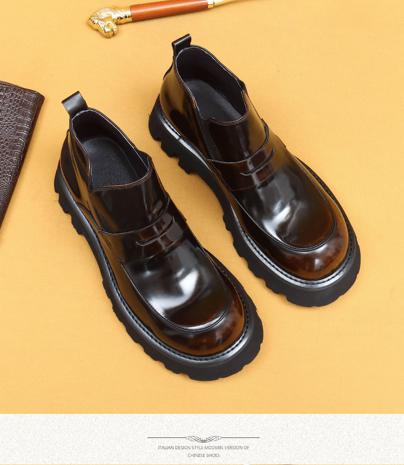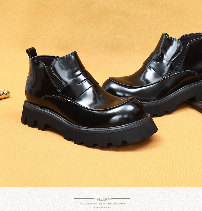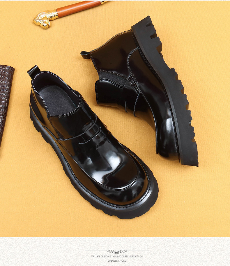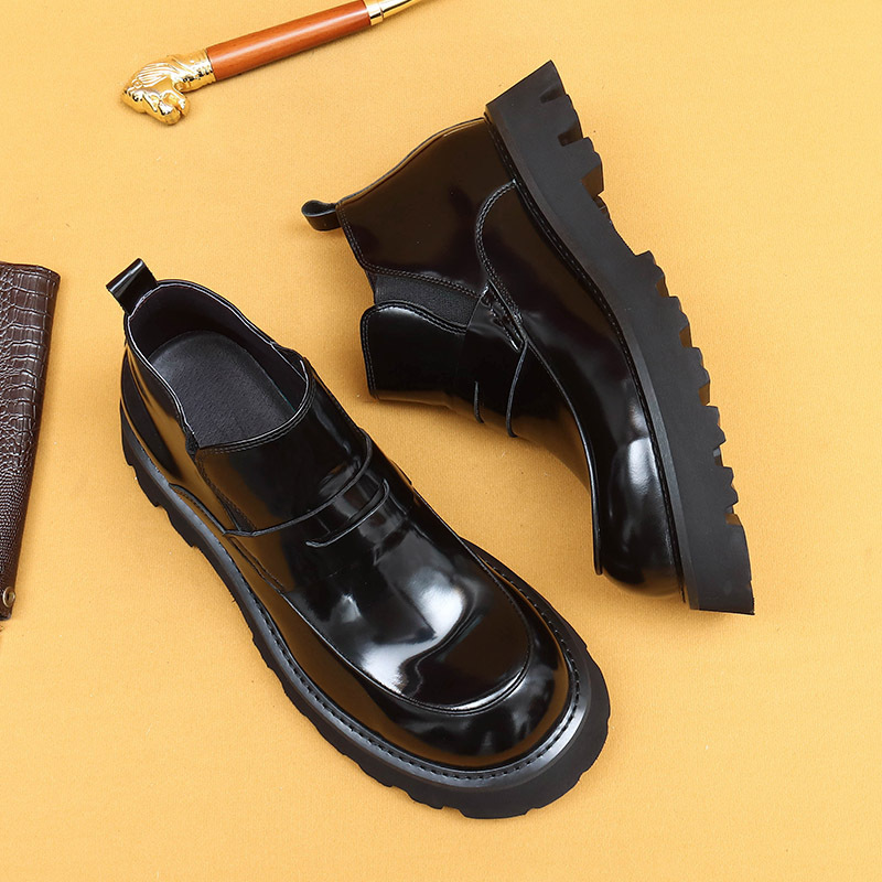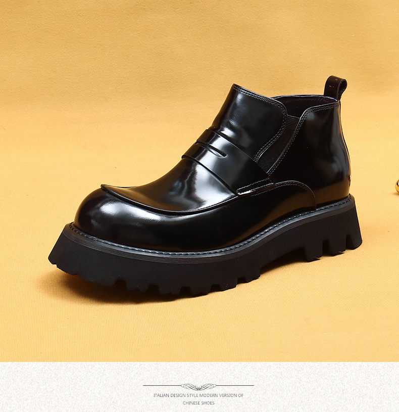 Giày bốt kiểu ôm cổ chân dành cho nam, thiết kế phần mũi rộng giúp bàn chân thoải mái hơn. Sản phẩm được làm từ chất liệu da mềm có bề mặt bóng, bên trong có lớp lót ấm và đế dày, giữ ấm tốt trong tiết trời lạnh. Kiểu dáng dễ phối đồ, phù hợp để đi làm, đi chơi hoặc dạo phố vào những ngày đông. Cách sử dụng đơn giản, chỉ cần xỏ chân vào và kéo phần miếng da ở hai bên để điều chỉnh. | Tên sản phẩm: Giày Thể Thao Tăng Chiều Cao Nam Chất Liệu Da Bò Đế Cao Hàng Mùa Xuân Thu Đông - Giày Dép Nam | Mã sản phẩm: B0223 - Giá: 2.640.000đ | Mã nhà sản xuất: SHDAP-G06Hình ảnh sản phẩm