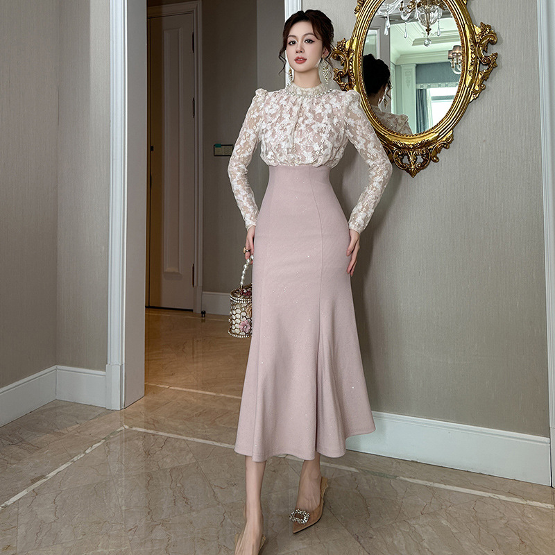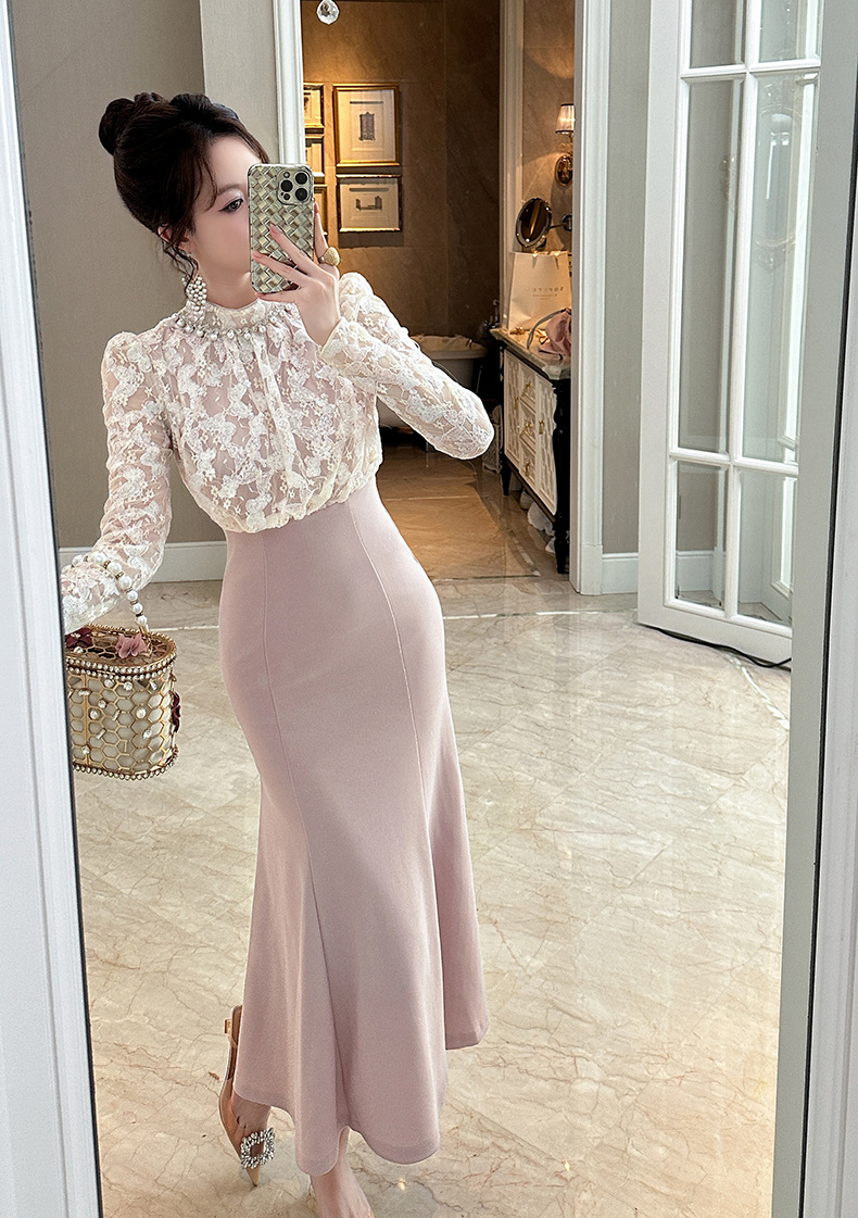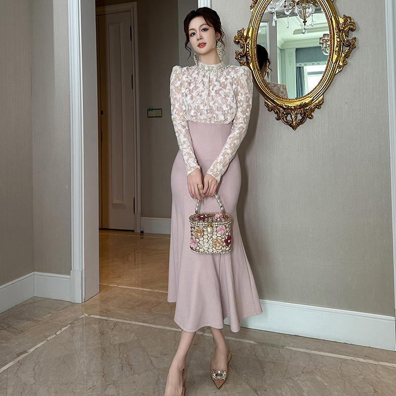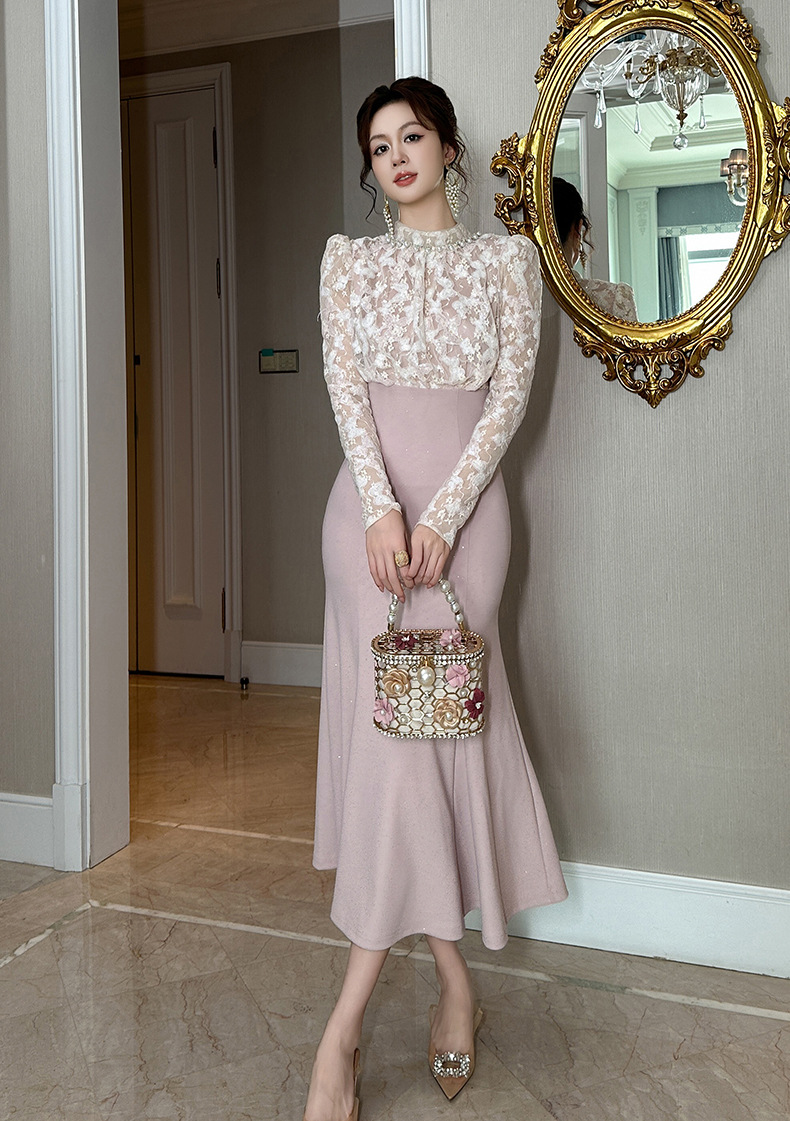 Chiếc đầm dạ hội màu hồng dịu dàng, điểm nhấn là chất ren tinh xảo suốt thân váy. Thiết kế ôm theo thân người, eo thắt nơ nhẹ nhàng rồi xòe ra ở phần đuôi cá duyên dáng, tôn lên những đường nét cơ thể. Kiểu dáng mang phong cách châu Âu lãng mạn, phù hợp cho các buổi tiệc chiều hoặc sự kiện vào mùa thu. Mặc cùng giày cao gót và phụ kiện tóc cài đơn giản để hoàn thiện vẻ ngoại hình. | Tên sản phẩm: Váy Đầm Liền Thân Nữ Chất Liệu Ren Kiểu Đuôi Cá Hàng Mùa Xuân Thu Đông - Thời Trang Nữ | Mã sản phẩm: B0235 - Giá: 1.630.000đ | Mã nhà sản xuất: CHDG-G05Hình ảnh sản phẩm