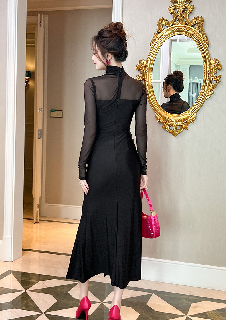 Chiếc đầm dáng ôm dành cho nữ, điểm nhấn là phần tay dài và thiết kế xẻ tà tinh tế. Chất liệu kết hợp giữa vải thun mềm mại và các mảng lưới tạo nên vẻ đẹp quyến rũ nhưng vẫn kín đáo. Sản phẩm có màu đen dễ dàng phối đồ, phù hợp cho những buổi tối hoặc sự kiện. Bạn có thể mặc cùng giày cao gót và phụ kiện đơn giản để hoàn thiện bộ trang phục. | Tên sản phẩm: Váy Đầm Liền Thân Nữ Dáng Ôm Lưới Mỏng Hàng Mùa Xuân Thu Đông - Thời Trang Nữ | Mã sản phẩm: B0237 - Giá: 1.090.000đ | Mã nhà sản xuất: CHDG-G03Hình ảnh sản phẩm