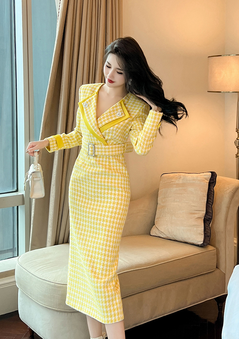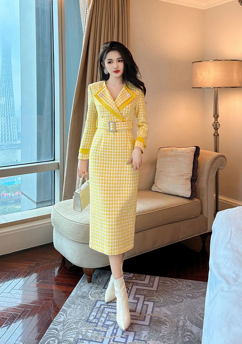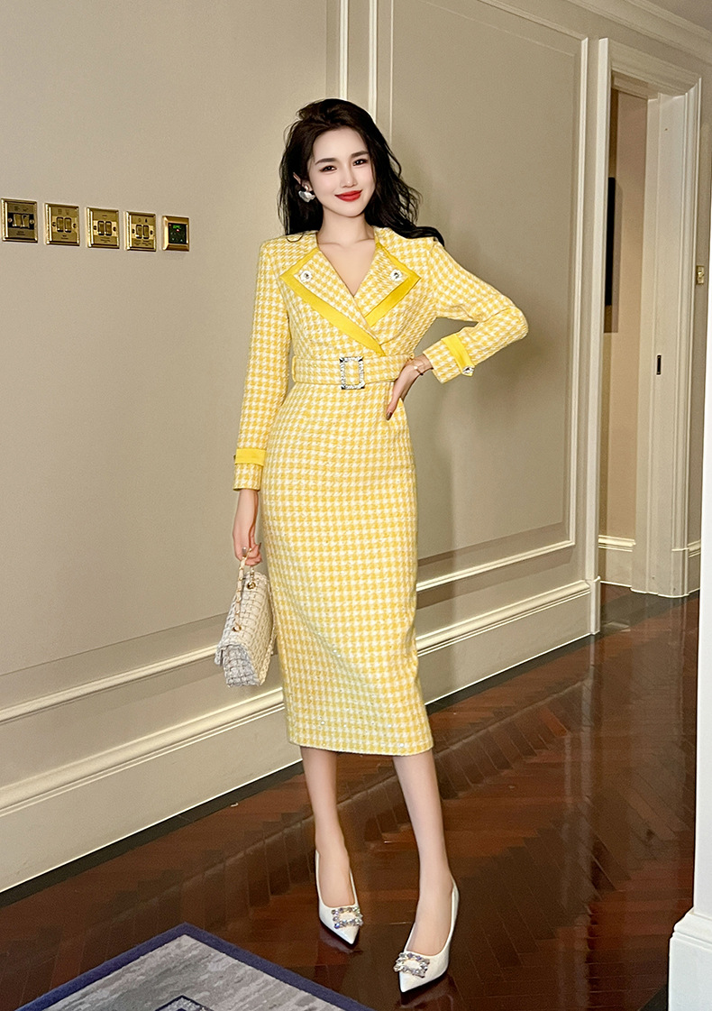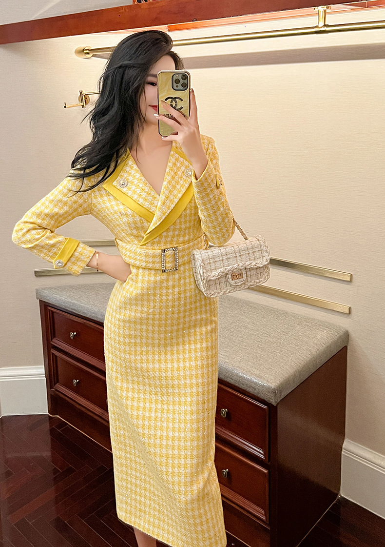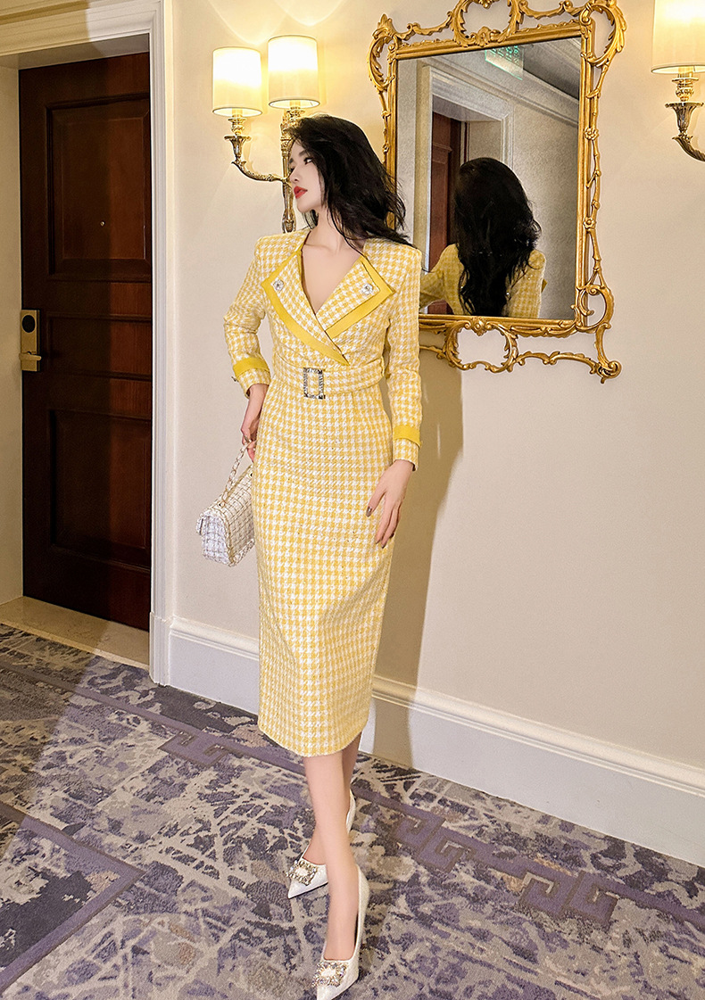 Đầm thiết kế kiểu dáng cổ bẻ, thân ôm tôn dáng với điểm nhấn là eo được viền dây thắt nơ. Chất liệu vải dệt caro mang đến vẻ ngoài thanh lịch, phù hợp cho dịp đi làm hay gặp mặt. Sản phẩm mặc kèm áo khoác nhẹ hoặc phụ kiện đơn giản đều dễ phối đồ. Bạn chỉ cần giặt nhẹ và phơi khô tự nhiên để giữ form vải đẹp lâu dài. | Tên sản phẩm: Váy Đầm Liền Thân Nữ Kẻ Caro Kẻ Caro Kín Cổ Hàng Mùa Xuân Thu Đông - Thời Trang Nữ | Mã sản phẩm: B0246 - Giá: 1.460.000đ | Mã nhà sản xuất: CHDG-G04Hình ảnh sản phẩm
