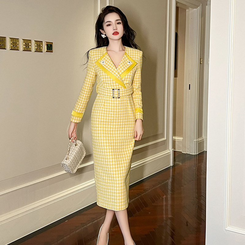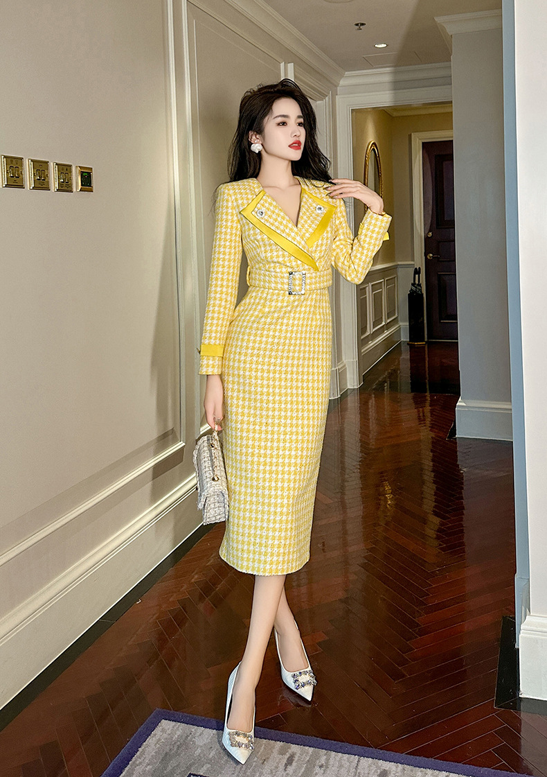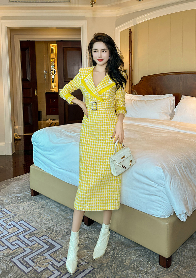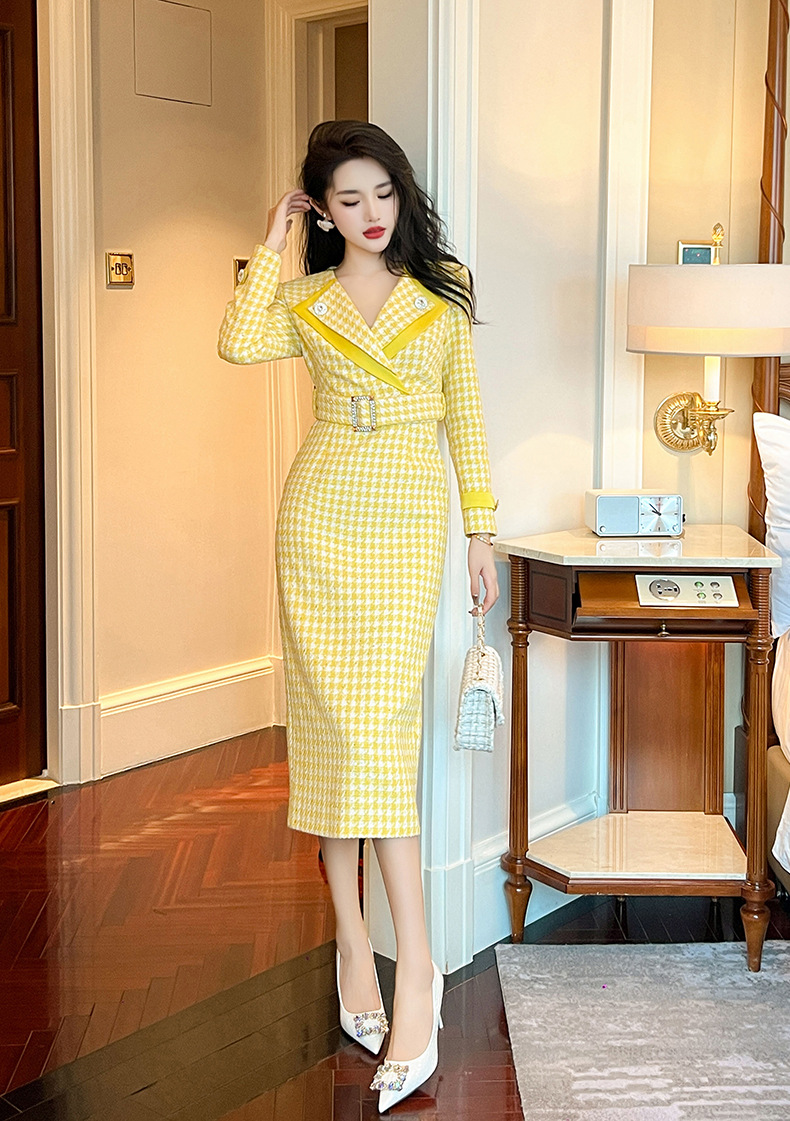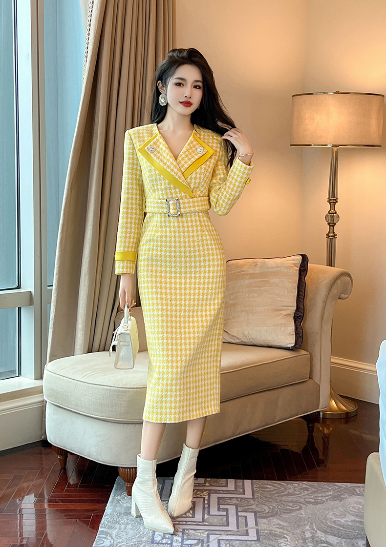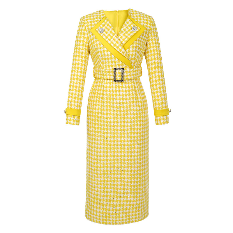 Đầm thiết kế kiểu dáng cổ bẻ, thân ôm tôn dáng với điểm nhấn là eo được viền dây thắt nơ. Chất liệu vải dệt caro mang đến vẻ ngoài thanh lịch, phù hợp cho dịp đi làm hay gặp mặt. Sản phẩm mặc kèm áo khoác nhẹ hoặc phụ kiện đơn giản đều dễ phối đồ. Bạn chỉ cần giặt nhẹ và phơi khô tự nhiên để giữ form vải đẹp lâu dài. | Tên sản phẩm: Váy Đầm Liền Thân Nữ Kẻ Caro Kẻ Caro Kín Cổ Hàng Mùa Xuân Thu Đông - Thời Trang Nữ | Mã sản phẩm: B0246 - Giá: 1.460.000đ | Mã nhà sản xuất: CHDG-G04Hình ảnh sản phẩm