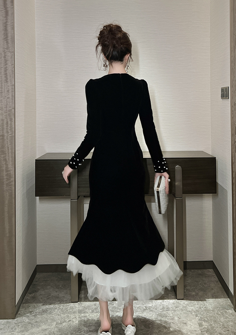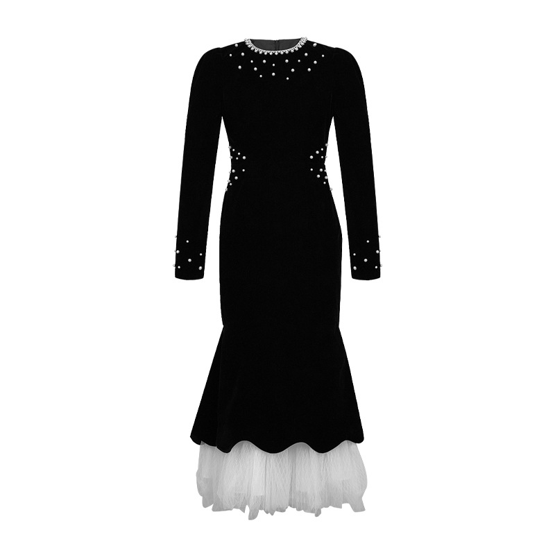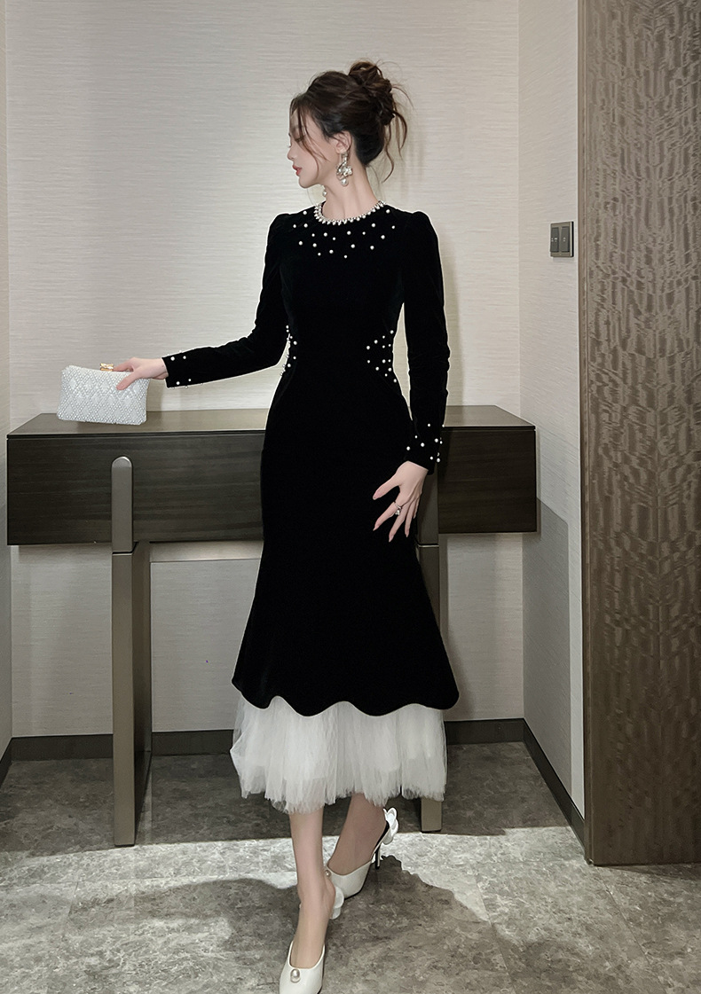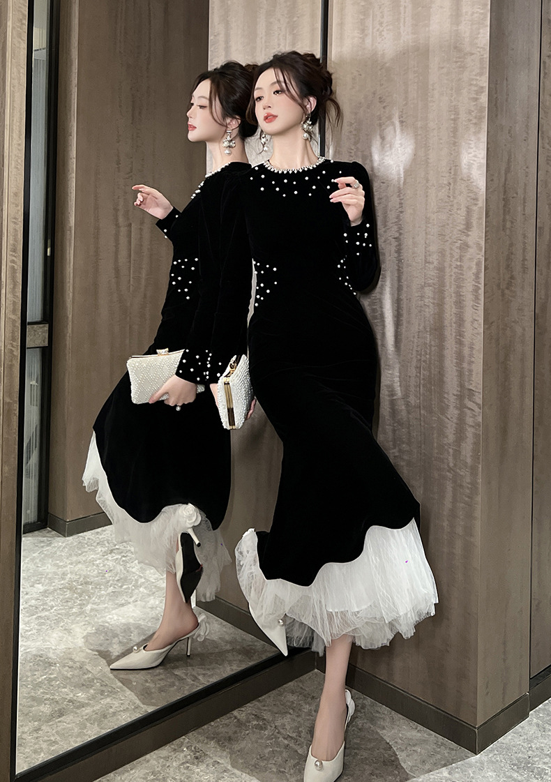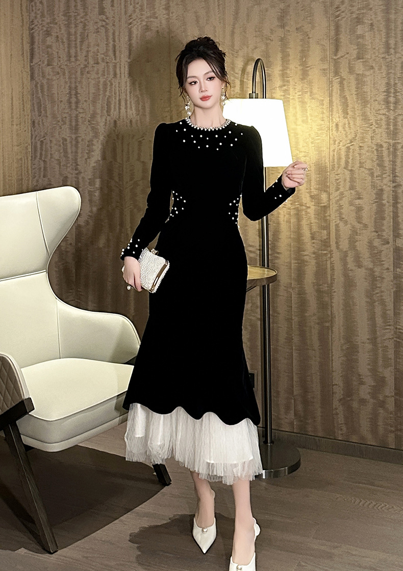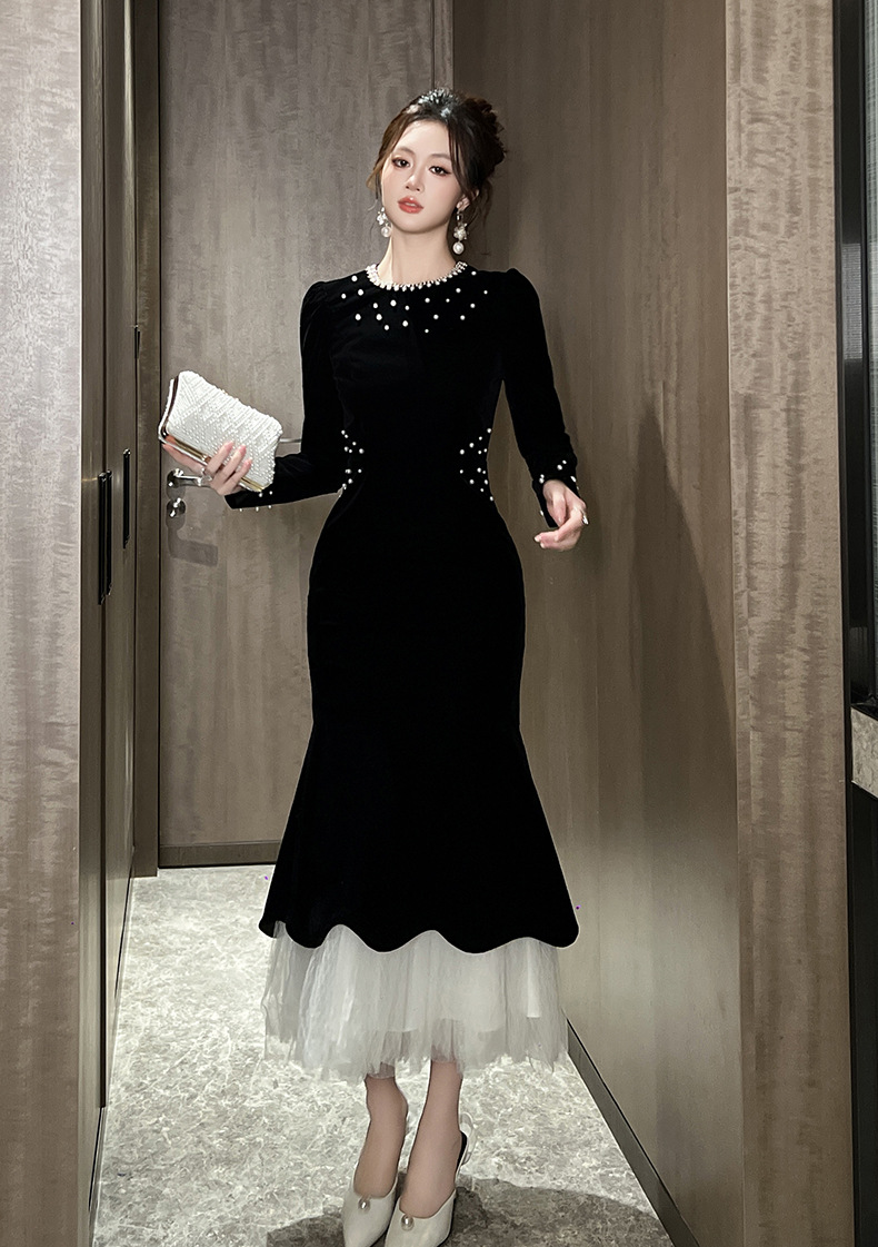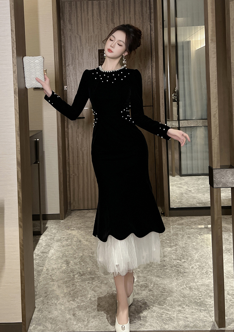 Chiếc đầm dáng ôm dành cho nữ, được làm từ chất liệu nhung mềm mại, điểm nhấn là những hạt đính cầu kỳ quanh cổ tròn. Thiết kế phom dáng thon gọn, phần vạt xẻ tạo hình đuôi cá không đối xứng mang đến nét đẹp hiện đại và nữ tính. Sản phẩm phù hợp cho những buổi gặp mặt hoặc dạo phố. Giặt nhẹ nhàng bằng tay và phơi nơi râm mát để giữ dáng đầm bền đẹp. | Tên sản phẩm: Váy Đầm Liền Thân Nữ Dáng Ôm Kiểu Đuôi Cá Hàng Mùa Xuân Thu Đông - Thời Trang Nữ | Mã sản phẩm: B0251 - Giá: 1.620.000đ | Mã nhà sản xuất: CHDG-G05Hình ảnh sản phẩm