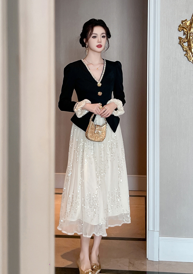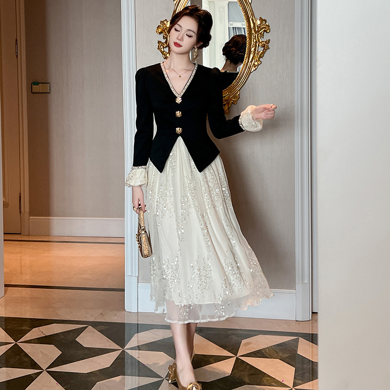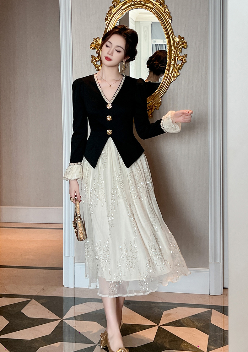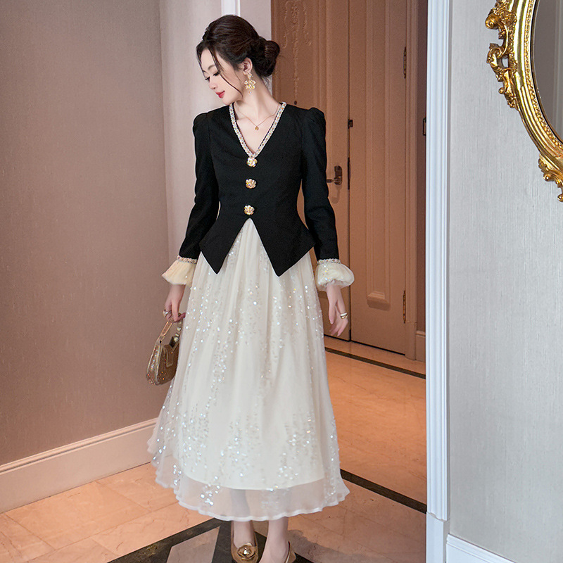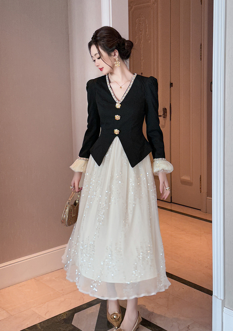 Chiếc đầm hai dáng cho nữ, lấy cảm hứng từ những nàng tiên nhẹ nhàng. Cổ chữ V tôn dáng, eo thắt nơ tạo điểm nhấn duyên dáng. Thiết kế giả hai mảnh với phần thân trên và tay áo kết hợp tinh tế, mang đến vẻ đẹp thanh thoát và hiện đại. Phù hợp cho những dịp đi chơi, gặp gỡ. Mặc cùng giày sandal hoặc giày búp bê để hoàn thiện phong cách. | Tên sản phẩm: Váy Đầm Liền Thân Nữ Cả Bộ 2 Món Cổ Chữ V Hàng Mùa Xuân Thu Đông - Thời Trang Nữ | Mã sản phẩm: B0253 - Giá: 1.590.000đ | Mã nhà sản xuất: CHDG-G04Hình ảnh sản phẩm
