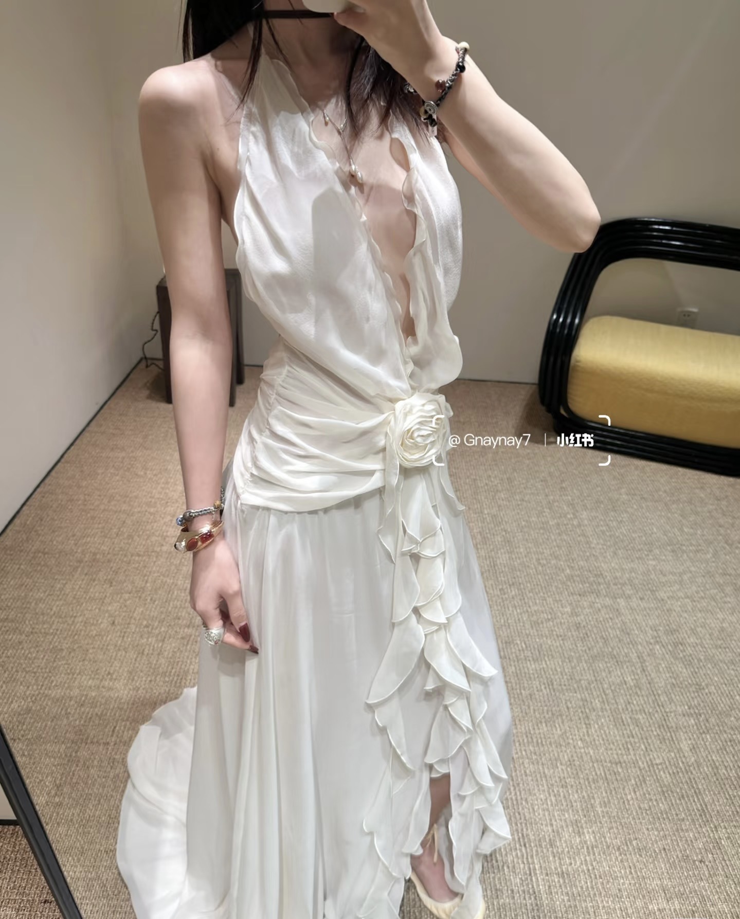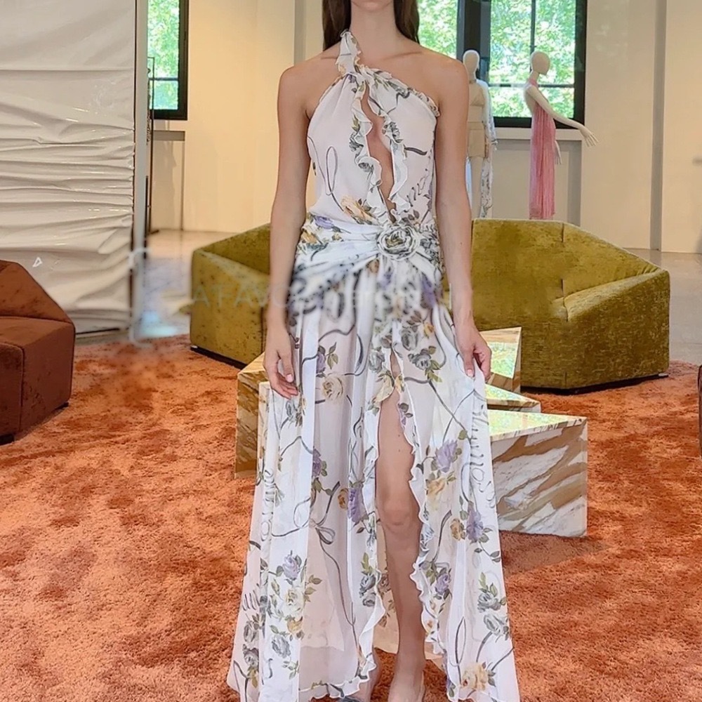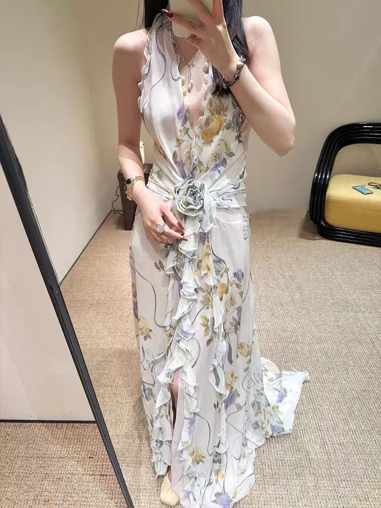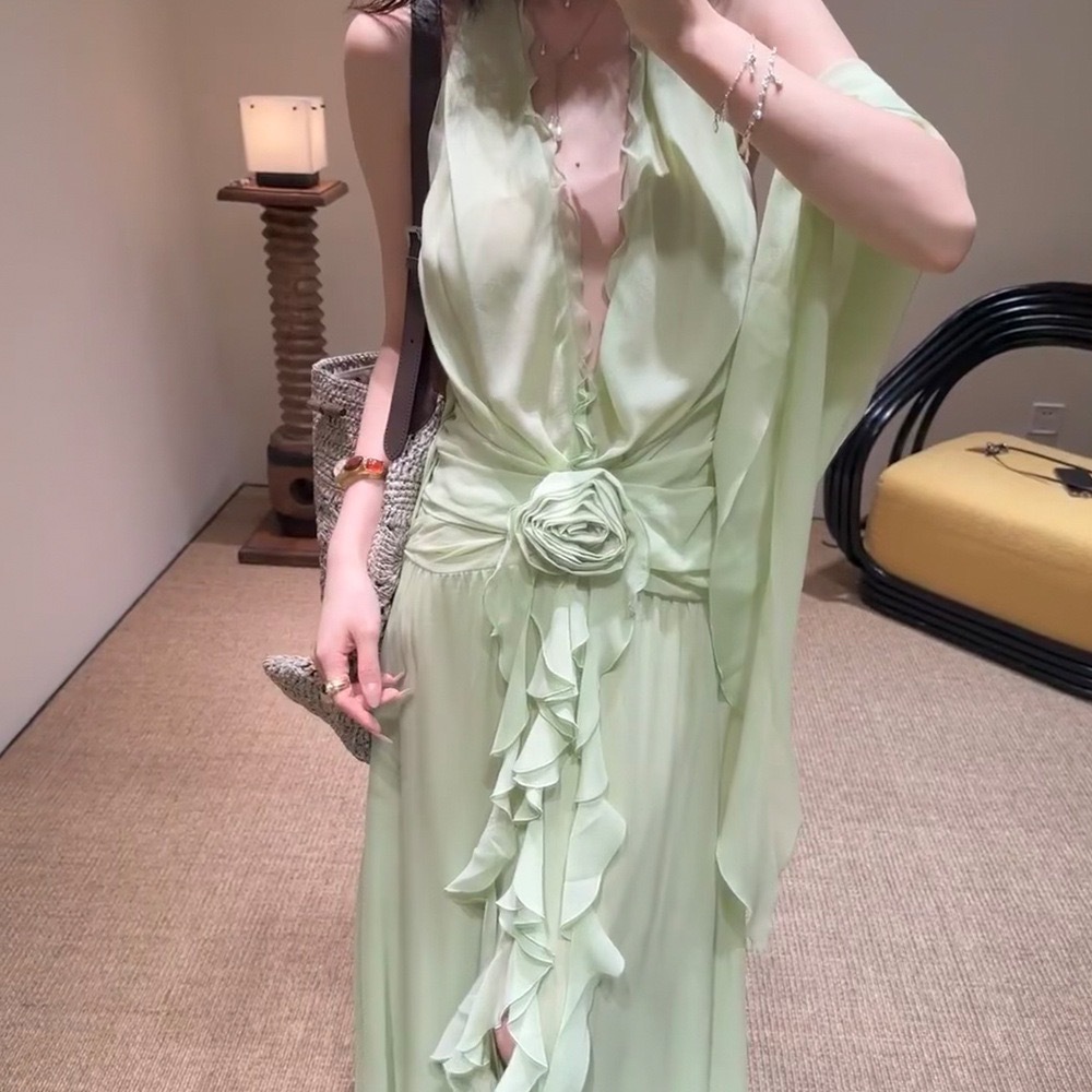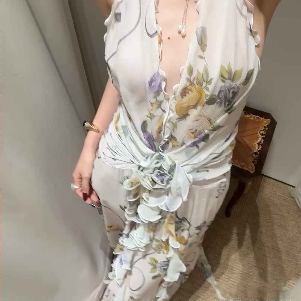 Chiếc đầm này mang nét đẹp lãng mạn với phần cổ vòng cùng đường cắt xuyên thấu tinh tế. Viền cổ áo được điểm xuyết bằng chi tiết bèo nhún mềm mại, tạo nên vẻ dịu dàng. Điểm nhấn nổi bật là những bông hoa nổi ba chiều được đính khéo léo, làm tăng thêm chiều sâu và sự sinh động cho trang phục. Kiểu dáng ôm vừa vặn, phù hợp để mặc trong các buổi gặp mặt hoặc dạo phố. Bạn chỉ cần mặc vào và kéo khóa là đã có ngay một vẻ ngoài ấn tượng. | Tên sản phẩm: Váy Đầm Liền Thân Dáng Dài Nữ Họa Tiết Hoa - Thời Trang Nữ | Mã sản phẩm: B0259 - Giá: 1.720.000đ | Mã nhà sản xuất: DODN-G05Hình ảnh sản phẩm