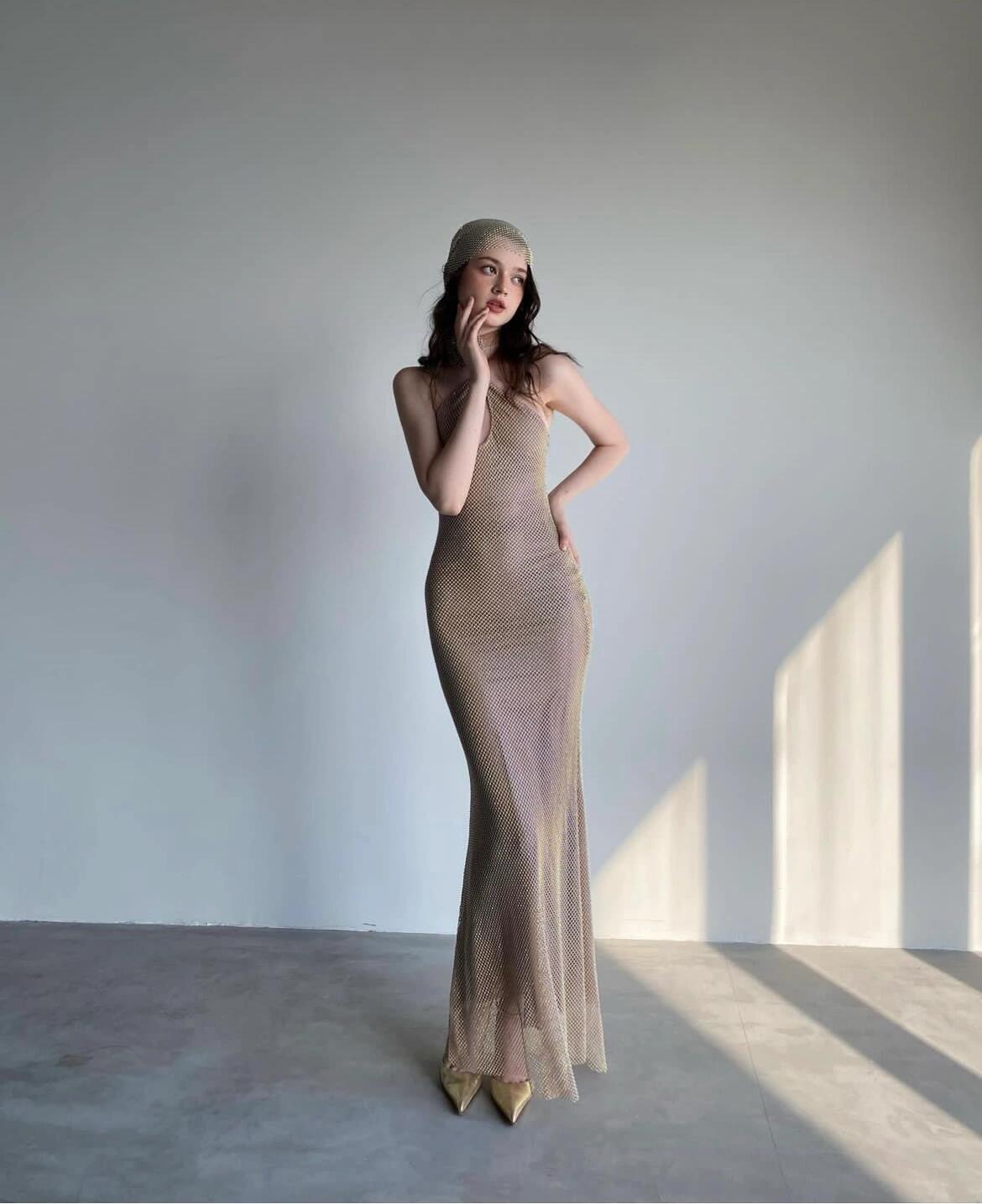 Chiếc đầm ôm dáng tôn lên vóc dáng thanh lịch. Thiết kế cổ vòng cùng dây buộc nơ tạo điểm nhấn duyên dáng. Phần lưng được khoét hở cách điệu, phối cùng lớp vải mỏng có điểm xuyết các hạt ánh sáng lấp lánh. Chất vải mềm mại, nhẹ nhàng tạo cảm giác dễ chịu khi mặc. Sản phẩm phù hợp để dạo phố, gặp gỡ bạn bè hoặc tham dự các buổi tiệc nhẹ. | Tên sản phẩm: Váy Đầm Liền Thân Nữ Thắt Nơ Bướm Dáng Ôm Lưới Mỏng - Thời Trang Nữ | Mã sản phẩm: B0263 - Giá: 1.620.000đ | Mã nhà sản xuất: DODN-G05Hình ảnh sản phẩm
