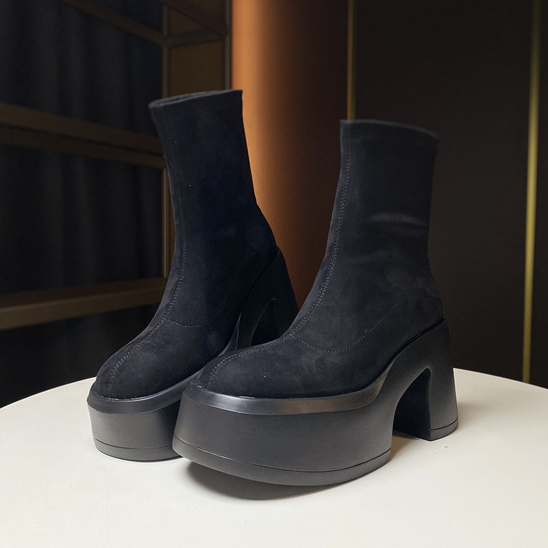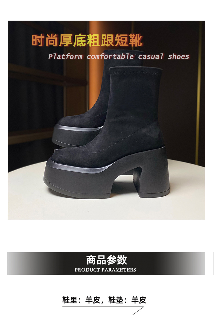 Đôi bốt cổ thấp này có phần đế được làm dày giúp tăng chiều cao một cách tự nhiên. Chất liệu vải co giãn ôm lấy chân, mang lại cảm giác thoải mái khi mang. Kiểu dáng với gót chân to vững chãi, phù hợp để phối cùng nhiều loại trang phục khác nhau trong mùa thu. Sản phẩm có khả năng chống nước nhẹ ở phần đế, giúp bạn tự tin hơn trong những ngày thời tiết ẩm ướt. Chỉ cần xỏ chân vào và kéo nhẹ phần khóa kéo là đã sẵn sàng diện xuống phố. | Tên sản phẩm: Boot Cổ Thấp Nữ Gót Vuông Tăng Chiều Cao Hàng Mùa Xuân Thu Đông - Giày Dép Nữ | Mã sản phẩm: B0269 - Giá: 2.020.000đ | Mã nhà sản xuất: GUDT-G05Hình ảnh sản phẩm