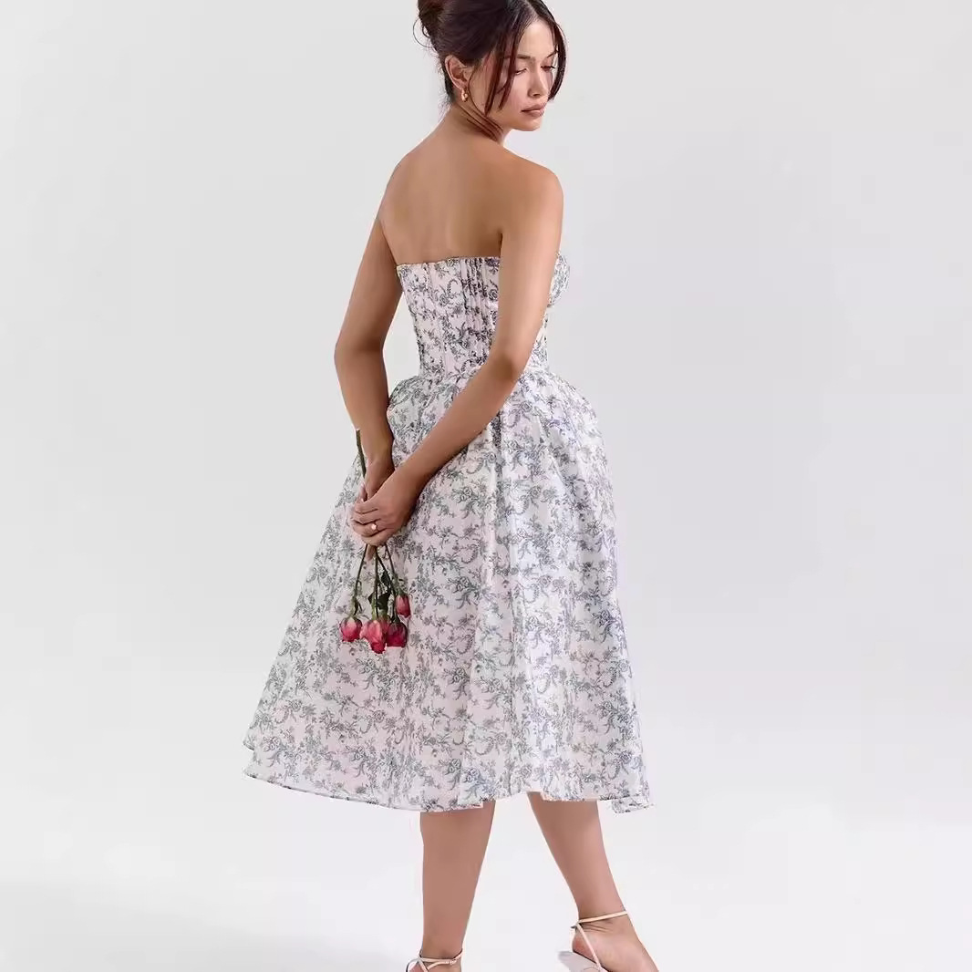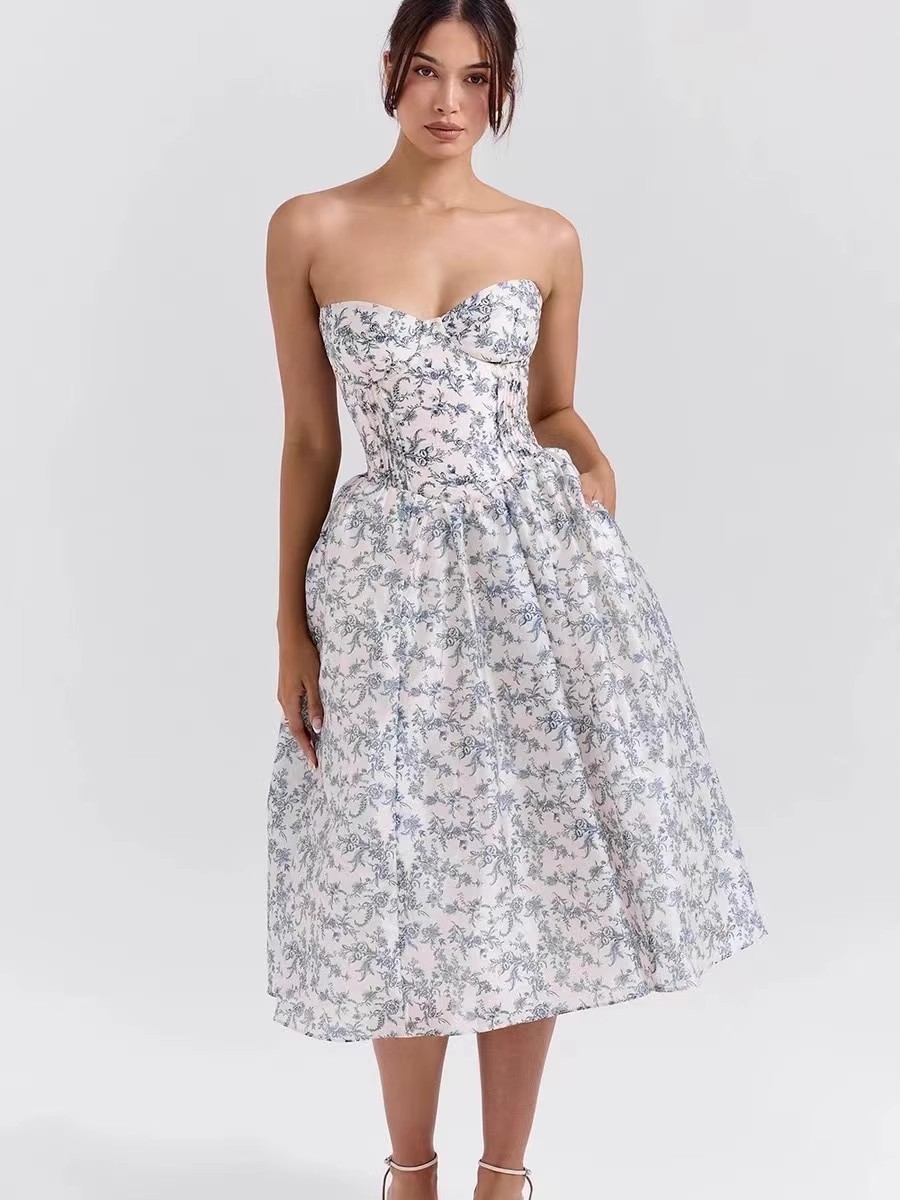 Chiếc đầm dành cho nữ với phần trên ôm sát, không có dây. Họa tiết in trên vải lấy cảm hứng từ những đường nét tinh xảo trên đồ gốm cổ điển. Vải được tạo kiểu xếp ly mềm mại từ eo trở xuống, tạo nên một chiếc đầm dáng dài qua gối. Sản phẩm dễ dàng kết hợp cùng áo khoác mỏng hoặc áo cardigan. Phù hợp cho nhiều dịp đi chơi trong ngày. | Tên sản phẩm: Váy Đầm Liền Thân Dáng Dài Nữ Họa Tiết Hoa Hàng Mùa Xuân Thu Đông - Thời Trang Nữ | Mã sản phẩm: B0280 - Giá: 2.100.000đ | Mã nhà sản xuất: DODN-G05Hình ảnh sản phẩm