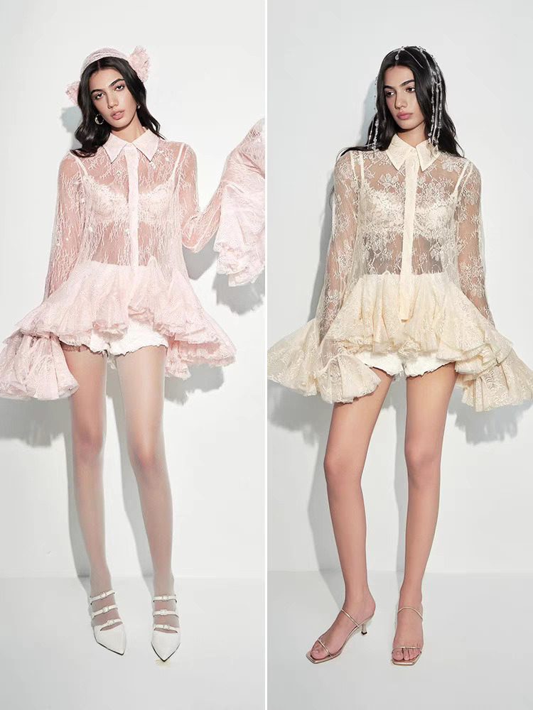 Bộ trang phục này mang phong cách nhẹ nhàng, nữ tính với họa tiết ren tinh tế trên áo. Phần cổ áo và tay áo được điểm xuyết bằng diềm bèo sóng mềm mại. Quần short thiết kế dáng bó vừa vặn, ôm nhẹ phần eo tạo dáng thanh thoát. Bạn có thể mặc bộ này đi làm, dạo phố hay dự tiệc nhẹ. Phối cùng giày sandal và túi xách nhỏ để hoàn thiện vẻ ngoại ấn tượng. | Tên sản phẩm: Áo Sơ Mi Nữ Chất Liệu Ren Họa Tiết Hoa - Thời Trang Nữ | Mã sản phẩm: B0282 - Giá: 1.060.000đ | Mã nhà sản xuất: DODN-G03Hình ảnh sản phẩm