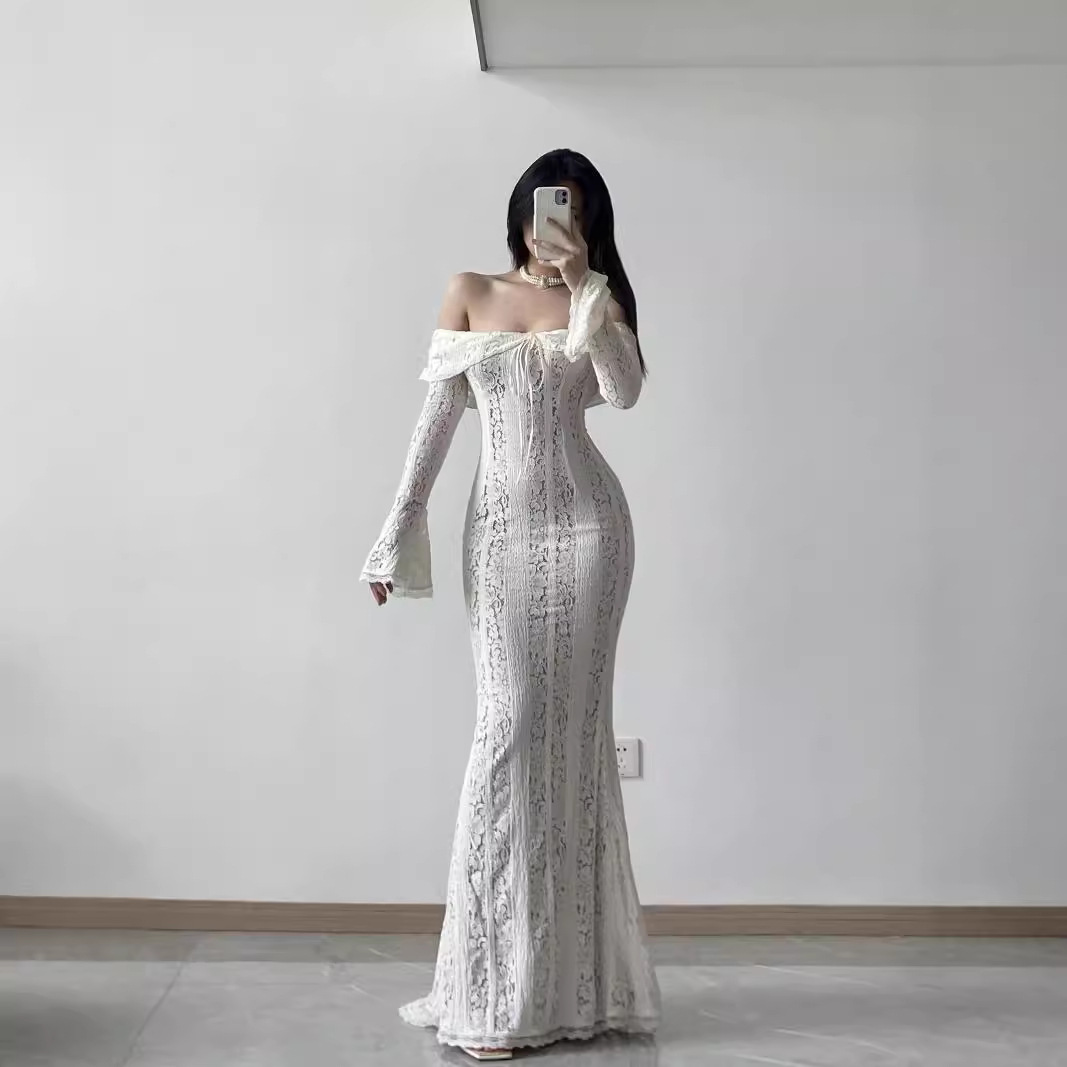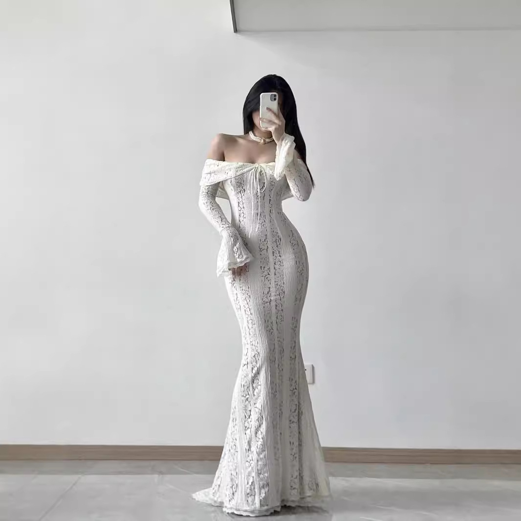 Chiếc đầm dáng dài với phần cổ khoét sâu tạo điểm nhấn thanh thoát cho bờ v. Chất liệu ren mềm mại kết hợp thiết kế ôm eo giúp tôn lên những đường nét cơ thể. Phần đuôi váy nhẹ nhàng kéo dài tạo nên sự uyển chuyển mỗi bước chân. Sản phẩm phù hợp cho nhiều dịp tham dự, mang đến vẻ đẹp dịu dàng và nữ tính. Có thể giặt bằng tay và phơi nơi râm mát để giữ form váy lâu bền. | Tên sản phẩm: Váy Đầm Liền Thân Dáng Dài Nữ Chất Liệu Ren - Thời Trang Nữ | Mã sản phẩm: B0304 - Giá: 1.630.000đ | Mã nhà sản xuất: DODN-G05Hình ảnh sản phẩm