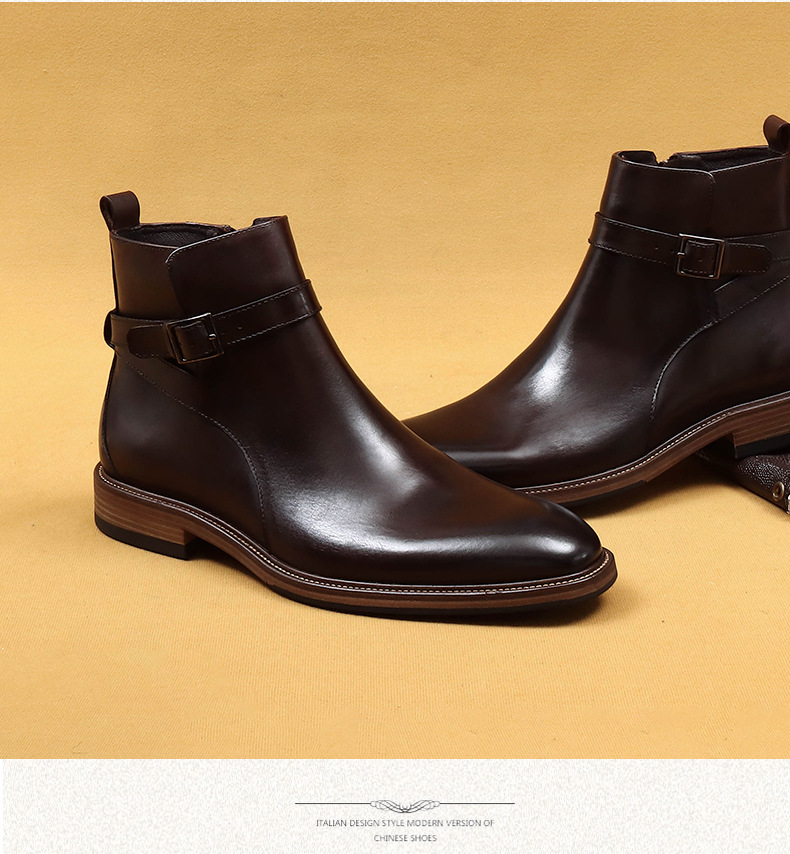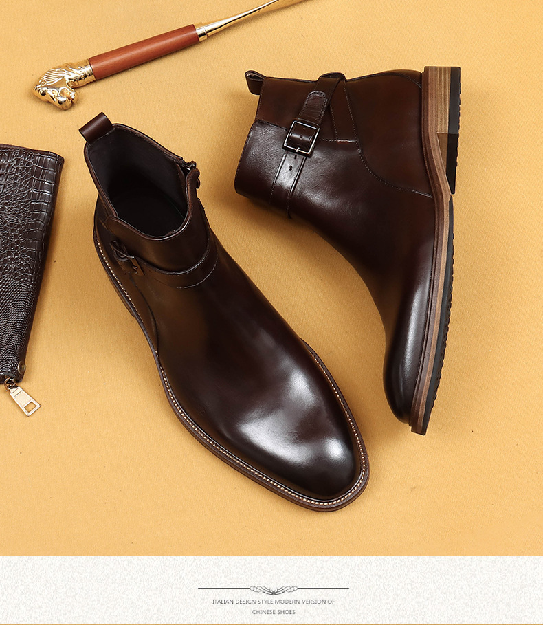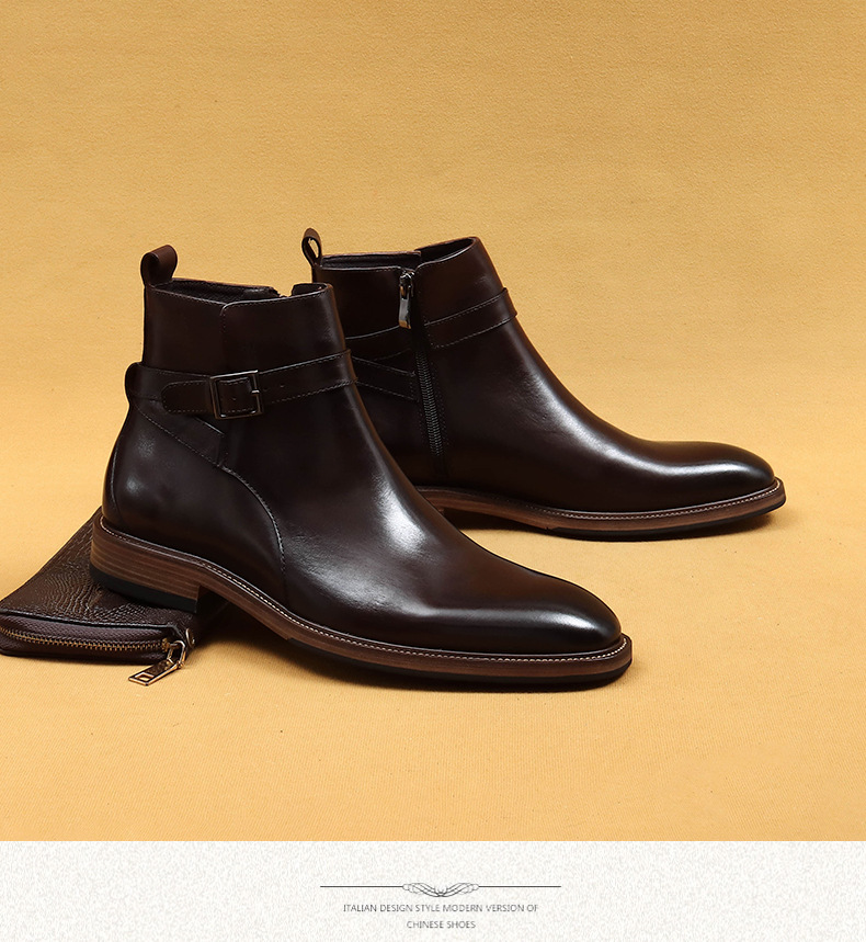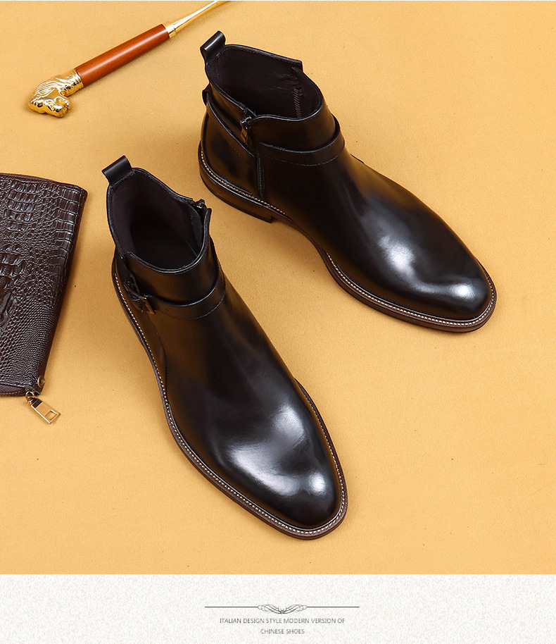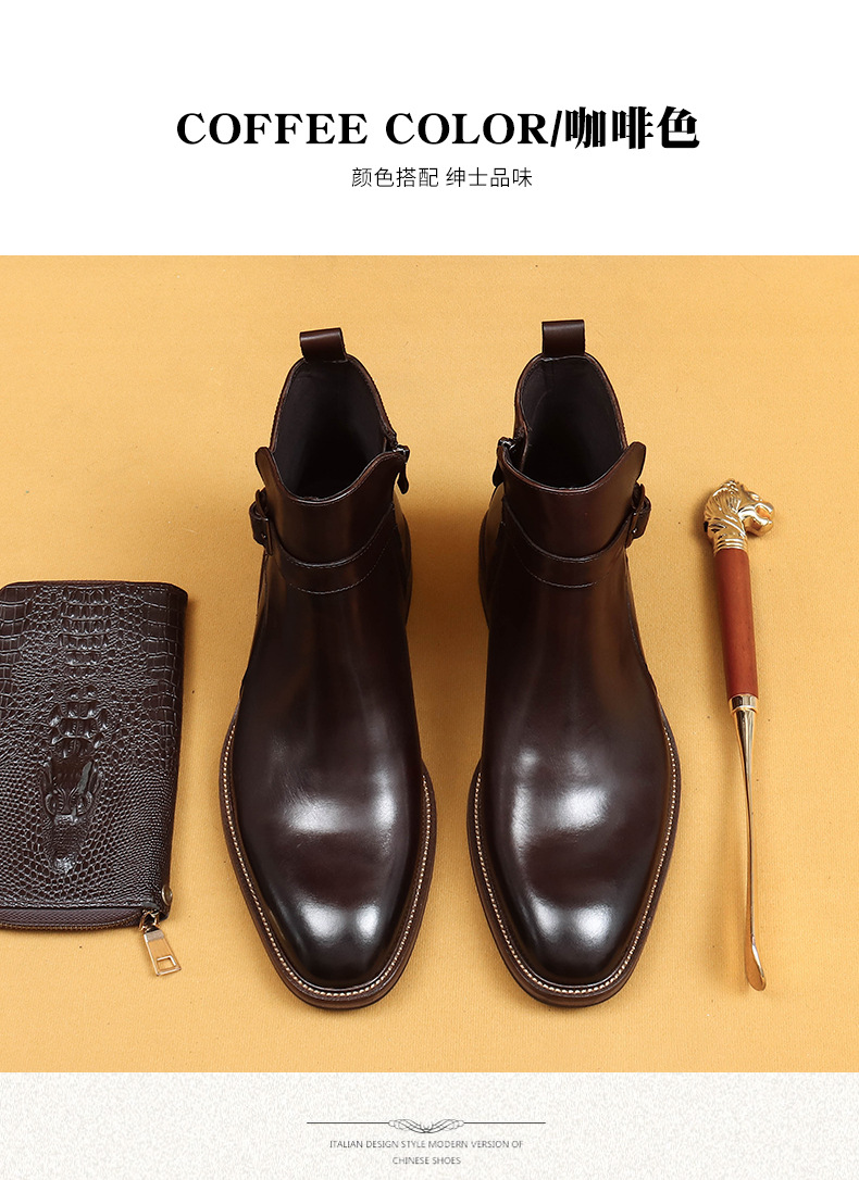 Giày bốt cổ thấp kiểu Anh dành cho nam, thiết kế mũi nhọn thanh lịch. Sản phẩm được làm từ chất liệu da thật bền đẹp, bên trong là lớp lót da mềm mại giữ ấm tốt cho mùa đông. Kiểu dáng ôm gọn chân, phù hợp để kết hợp cùng trang phục công sở hoặc dạo phố. Dễ dàng mang vào và tháo ra nhờ thiết kế có miếng đàn hồi hai bên. Sử dụng hàng ngày và vệ sinh nhẹ nhàng bằng khăn mềm. | Tên sản phẩm: Giày Boot Cổ Thấp Nam Chất Liệu Da Bò Mũi Nhọn Hàng Mùa Xuân Thu Đông - Giày Dép Nam | Mã sản phẩm: B0315 - Giá: 2.780.000đ | Mã nhà sản xuất: SHDAP-G06Hình ảnh sản phẩm