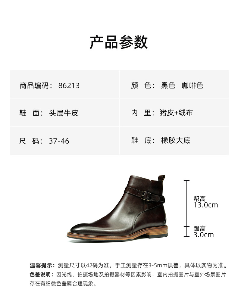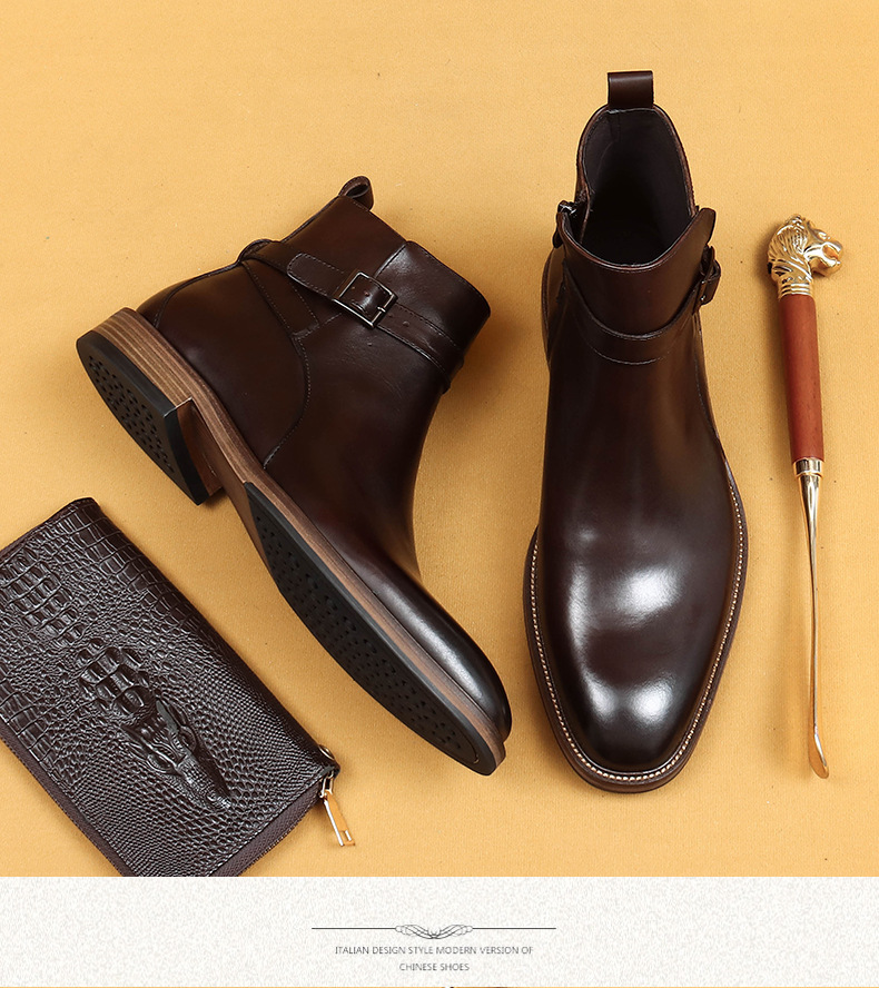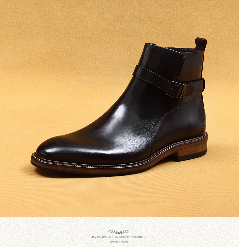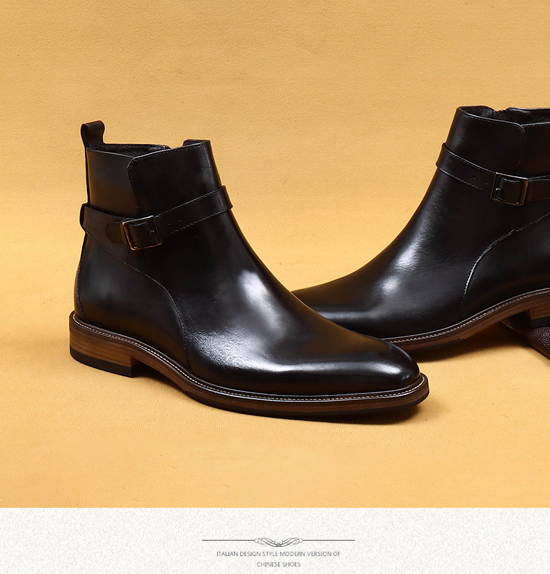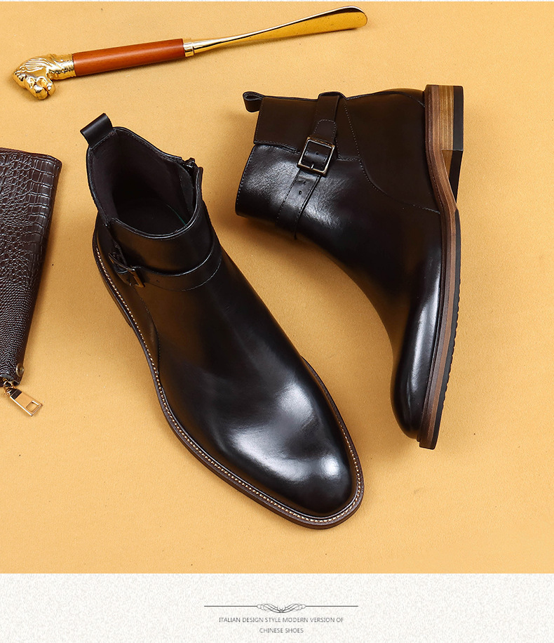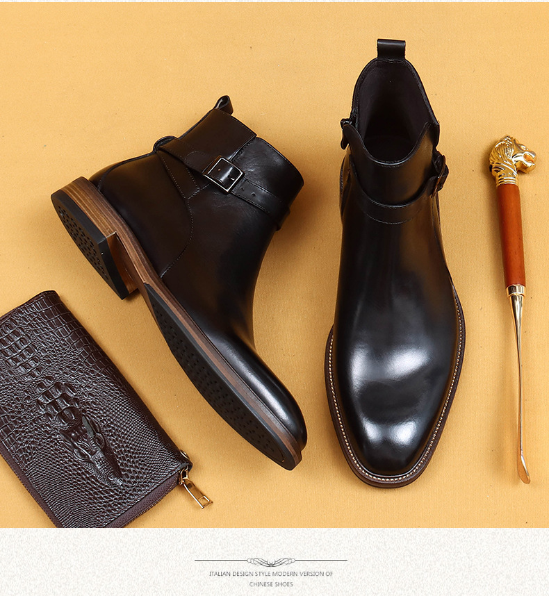 Giày bốt cổ thấp kiểu Anh dành cho nam, thiết kế mũi nhọn thanh lịch. Sản phẩm được làm từ chất liệu da thật bền đẹp, bên trong là lớp lót da mềm mại giữ ấm tốt cho mùa đông. Kiểu dáng ôm gọn chân, phù hợp để kết hợp cùng trang phục công sở hoặc dạo phố. Dễ dàng mang vào và tháo ra nhờ thiết kế có miếng đàn hồi hai bên. Sử dụng hàng ngày và vệ sinh nhẹ nhàng bằng khăn mềm. | Tên sản phẩm: Giày Boot Cổ Thấp Nam Chất Liệu Da Bò Mũi Nhọn Hàng Mùa Xuân Thu Đông - Giày Dép Nam | Mã sản phẩm: B0315 - Giá: 2.780.000đ | Mã nhà sản xuất: SHDAP-G06Hình ảnh sản phẩm