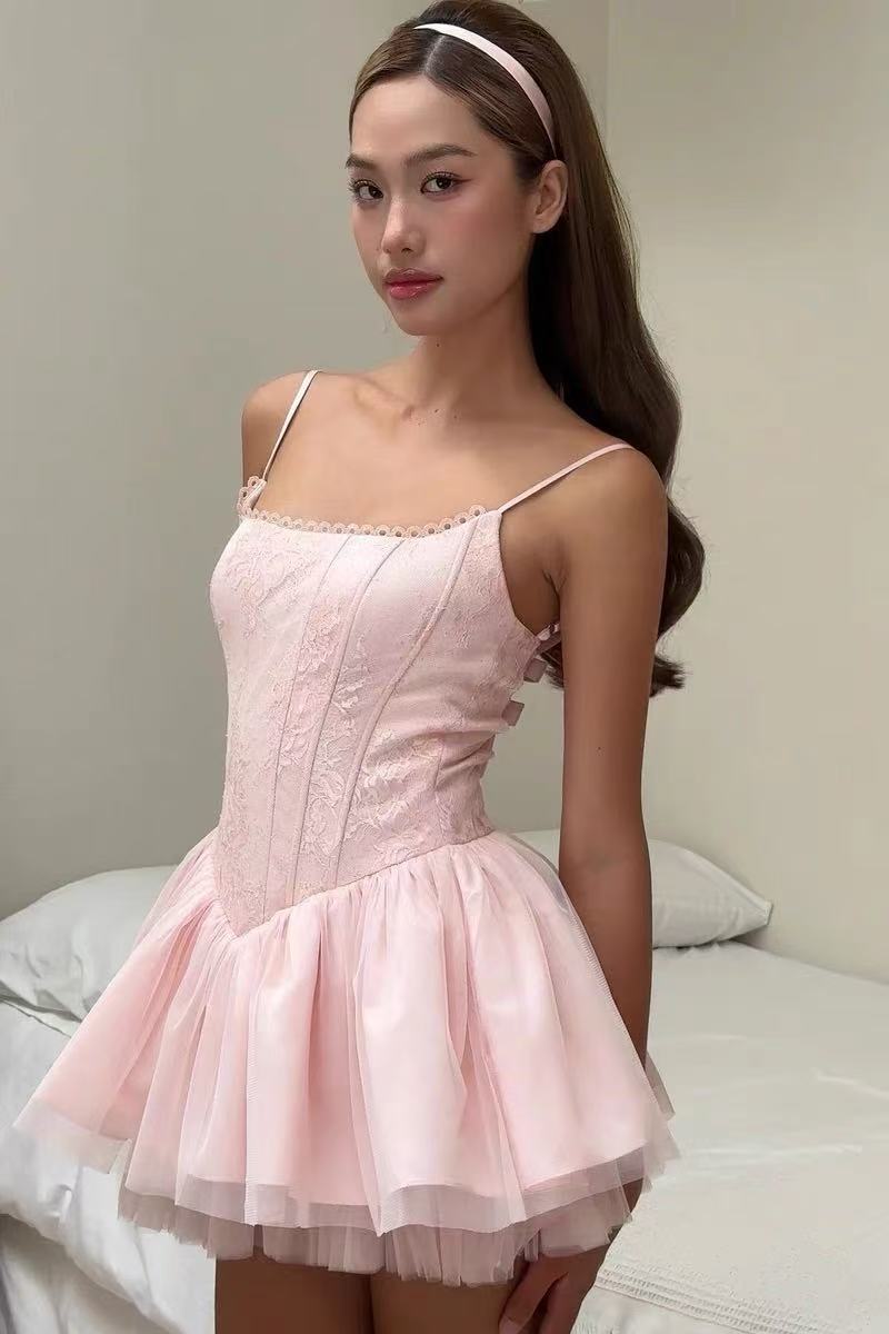 Chiếc đầm hai dây này có điểm nhấn là chiếc nơ xinh xắn phía trước và phần lưng được khoét tạo điểm thu hút. Thiết kế ôm theo đường cong cơ thể nhờ các đường chèn đặc biệt, giúp tôn dáng người mặc. Váy có phần chân váy xòe được làm từ nhiều lớp vải mỏng lấp lánh, tạo cảm giác nhẹ nhàng và nữ tính. Sản phẩm phù hợp để mặc trong các buổi tiệc hoặc dịp dạo phố. | Tên sản phẩm: Áo Hai Dây Nữ Thắt Nơ Bướm Hai Dây Hở Vai - Thời Trang Nữ | Mã sản phẩm: B0354 - Giá: 1.620.000đ | Mã nhà sản xuất: DODN-G05Hình ảnh sản phẩm