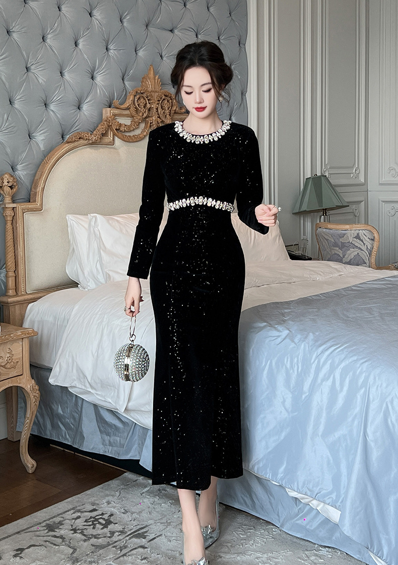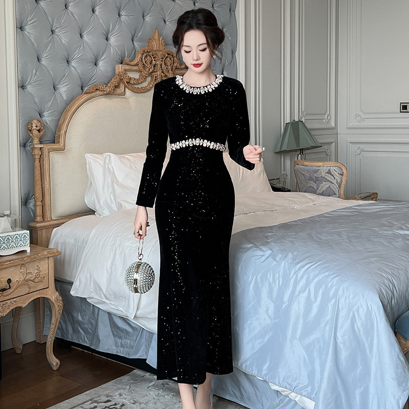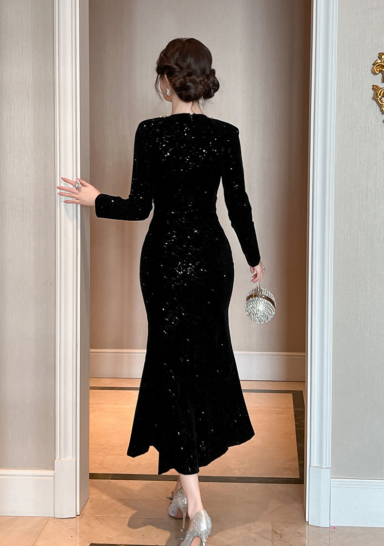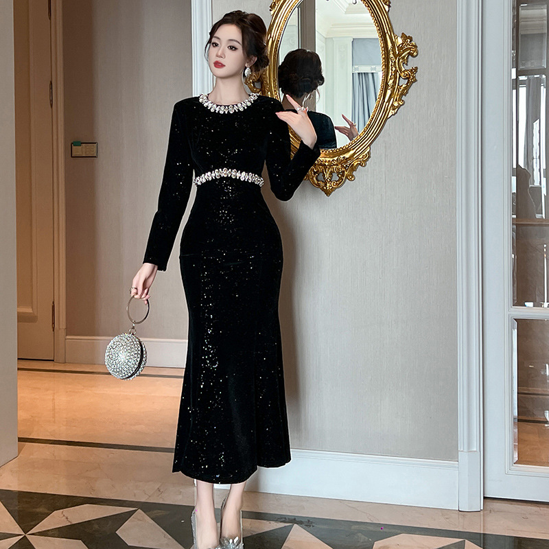 Váy dạ hội dáng người thon, phần thân dưới xòe nhẹ như đuôi cá, tạo nên nét duyên dáng và nữ tính. Cổ tròn được điểm xuyết bằng các hạt nhỏ lấp lánh tinh tế. Thiết kế ôm sát cơ thể, eo thắt nhẹ và phần mông ôm vừa vặn, giúp tôn lên các đường nét cơ thể. Sản phẩm phù hợp cho các buổi tiệc hoặc sự kiện. Chỉ cần giặt nhẹ và phơi khô tự nhiên để giữ dáng váy đẹp lâu dài. | Tên sản phẩm: Váy Đầm Liền Thân Nữ Kiểu Đuôi Cá Hàng Mùa Xuân Thu Đông - Thời Trang Nữ | Mã sản phẩm: B0429 - Giá: 1.440.000đ | Mã nhà sản xuất: CHDG-G04Hình ảnh sản phẩm