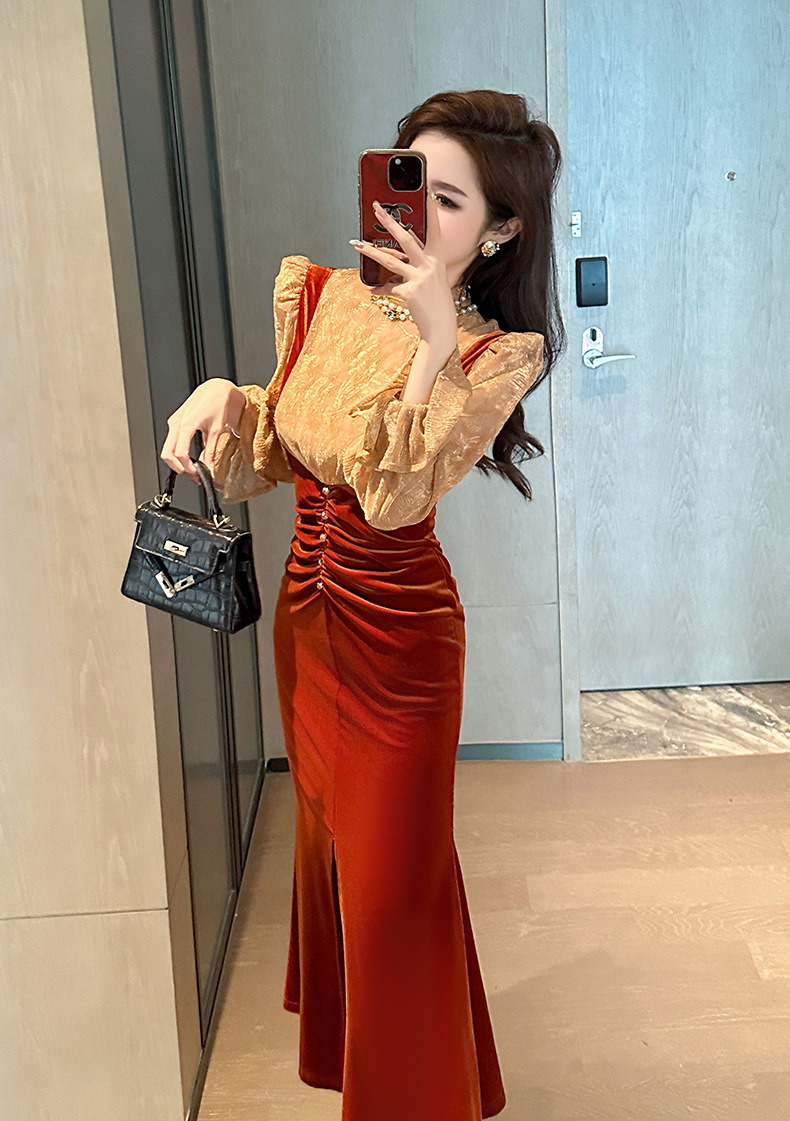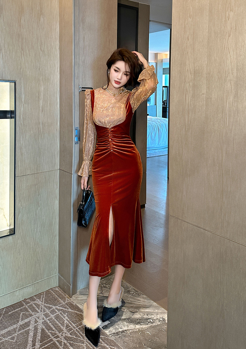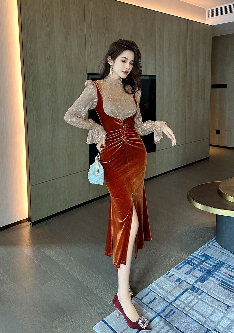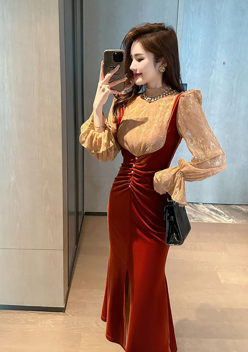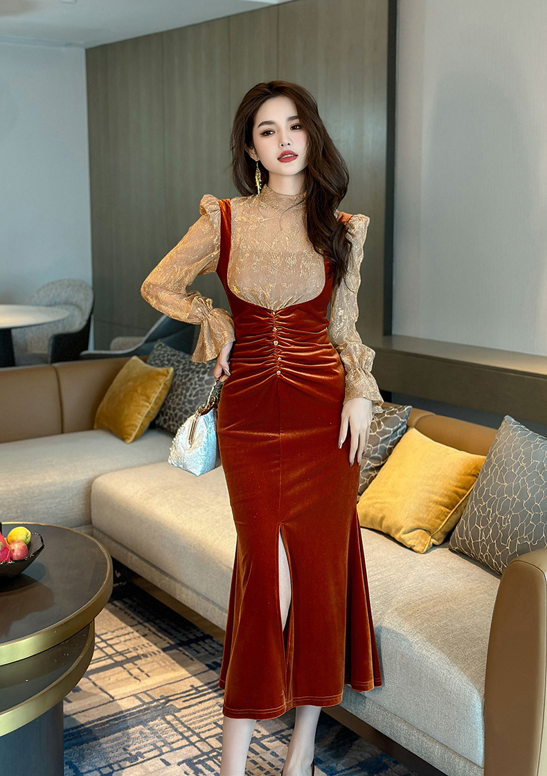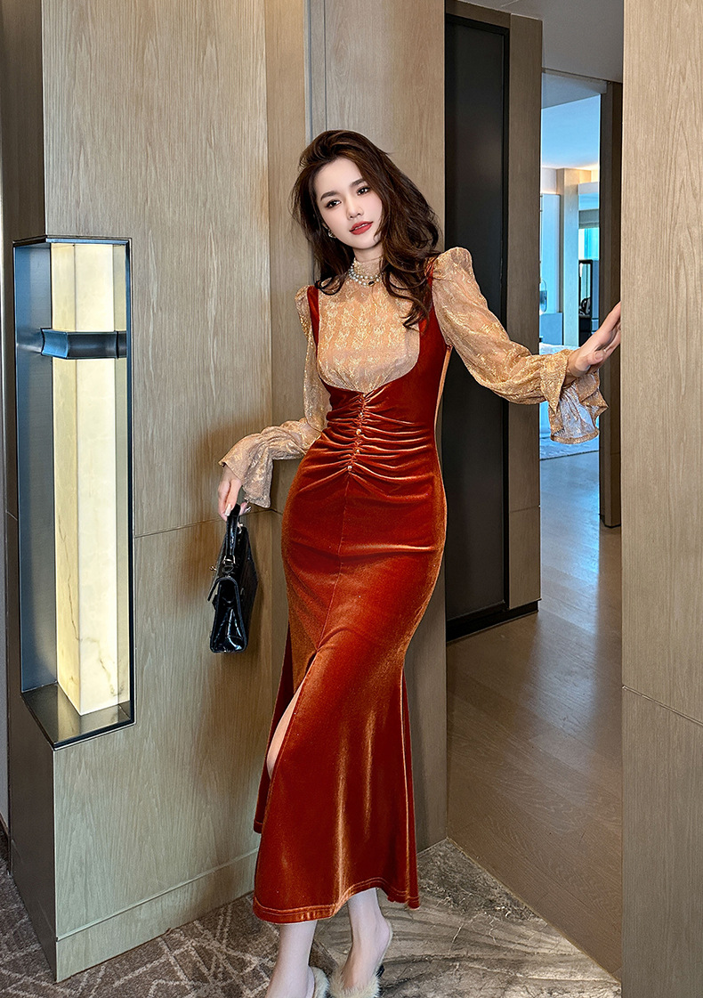 Chiếc đầm dáng dài mang nét thanh lịch, phù hợp cho những buổi tiệc trà nhẹ nhàng. Thiết kế giả hai mảnh với phần kết hợp ren tinh tế và chất liệu nhung mềm mại, tạo nên vẻ ngoại hình dịu dàng và nữ tính. Kiểu dáng theo phong cách Pháp cổ điển, ôn vừa vặn giúp tôn lên các đường nét cơ thể. Có thể mặc đi làm hoặc dự các sự kiện thường ngày. Dễ dàng phối cùng giày cao gót và túi xách nhỏ để hoàn thiện bộ trang phục. | Tên sản phẩm: Váy Đầm Liền Thân Dáng Dài Nữ Chất Liệu Ren Cả Bộ 2 Món Hàng Mùa Xuân Thu Đông - Thời Trang Nữ | Mã sản phẩm: B0439 - Giá: 1.290.000đ | Mã nhà sản xuất: CHDG-G04Hình ảnh sản phẩm
