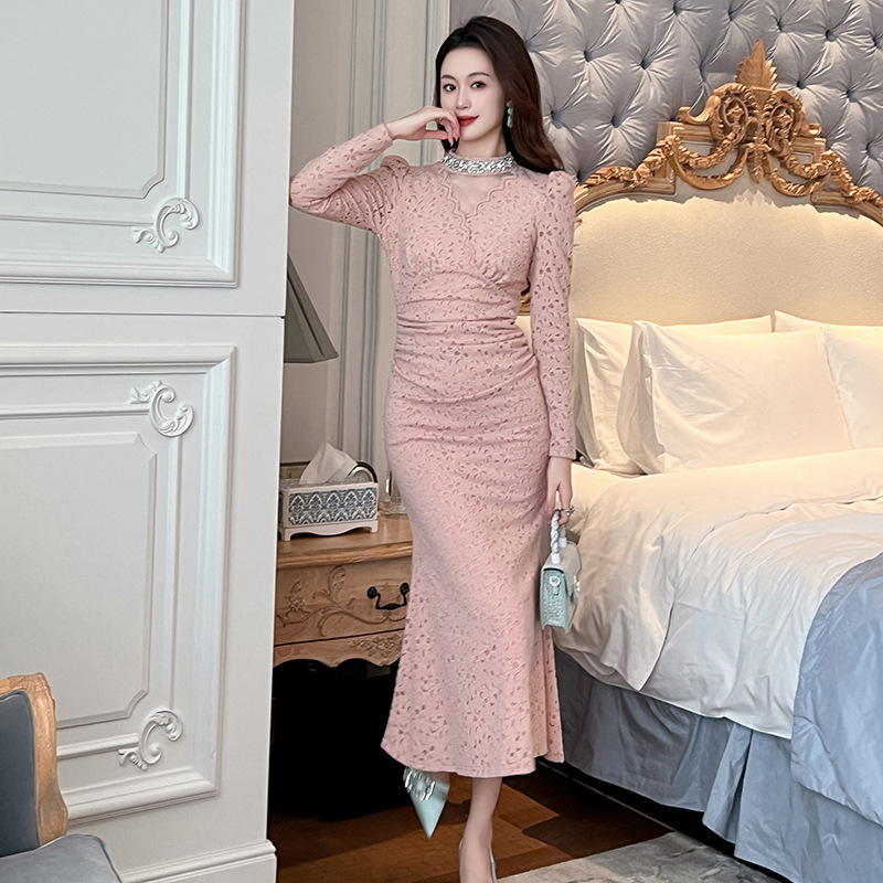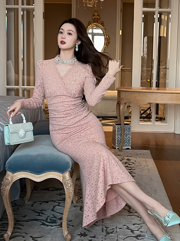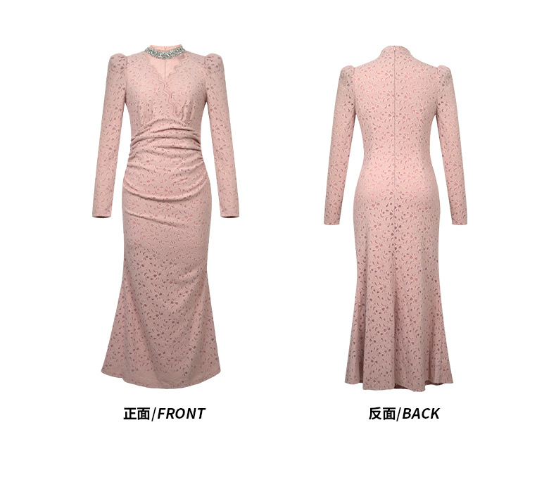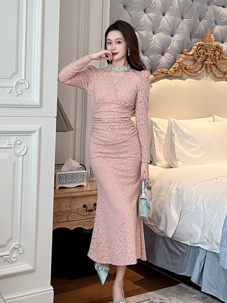 Chiếc đầm mới cho mùa thu, được thiết kế với cổ chữ V tôn dáng. Điểm nhấn là phần eo được bo khéo léo cùng form ôm gọn ở mông, tạo nên đường nét thanh thoát cho người mặc. Chất liệu kết hợp ren màu hồng nhẹ nhàng, mang đến vẻ đẹp dịu dàng và nữ tính. Sản phẩm phù hợp cho nhiều dịp đi chơi hoặc gặp mặt hằng ngày. Cách sử dụng đơn giản, mặc trực tiếp và phối cùng giày dép, túi xách phù hợp. | Tên sản phẩm: Váy Đầm Liền Thân Nữ Chất Liệu Ren Cổ Chữ V Hàng Mùa Xuân Thu Đông - Thời Trang Nữ | Mã sản phẩm: B0447 - Giá: 1.360.000đ | Mã nhà sản xuất: CHDG-G04Hình ảnh sản phẩm