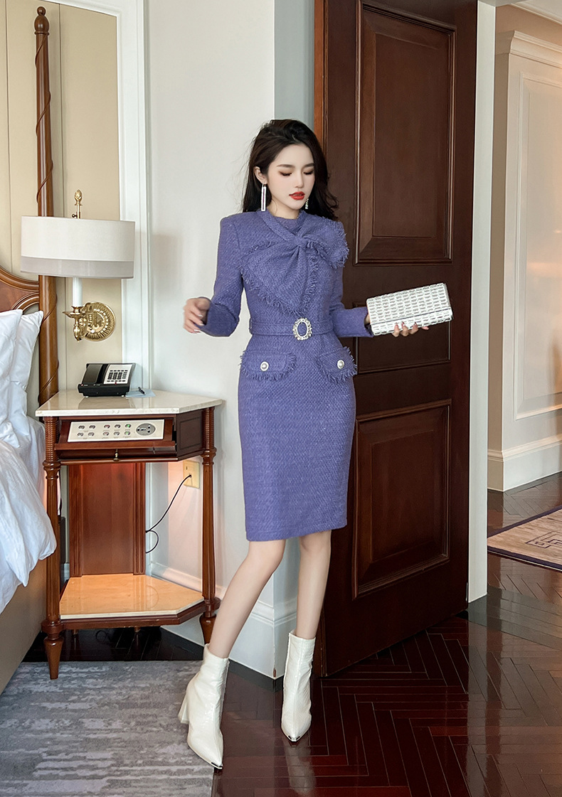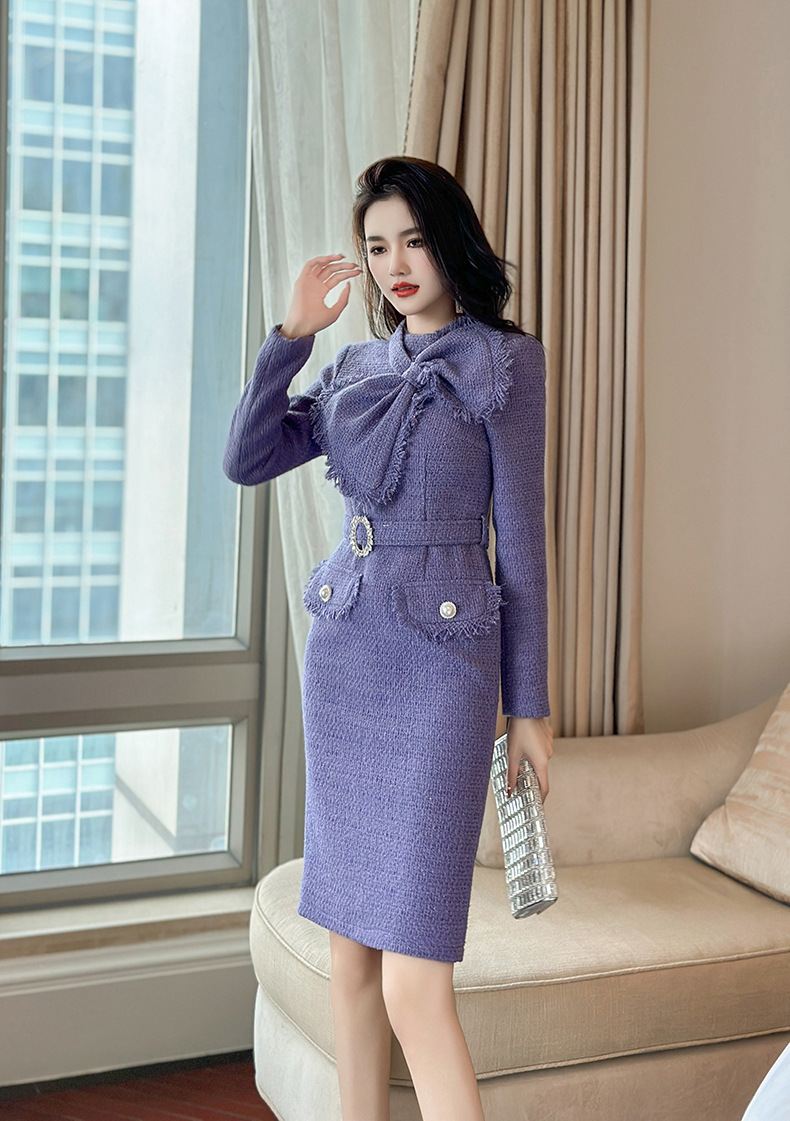 Chiếc đầm dành cho mùa thu đông này có điểm nhấn là nơ thắt eo tạo dáng thanh lịch. Chất liệu dệt thô mang đến cảm giác ấm áp và có độ bền tốt. Kiểu dáng ôm nhẹ cơ thể, phù hợp cho nhiều dịp đi làm hoặc gặp mặt. Có thể kết hợp cùng giày cao gót hoặc boots để hoàn thiện bộ trang phục. Màu tím dịu nhẹ giúp tôn lên làn da và vẻ nữ tính. | Tên sản phẩm: Váy Đầm Liền Thân Nữ Thắt Nơ Bướm Họa Tiết Hoa Hàng Mùa Xuân Thu Đông - Thời Trang Nữ | Mã sản phẩm: B0448 - Giá: 1.620.000đ | Mã nhà sản xuất: CHDG-G05Hình ảnh sản phẩm