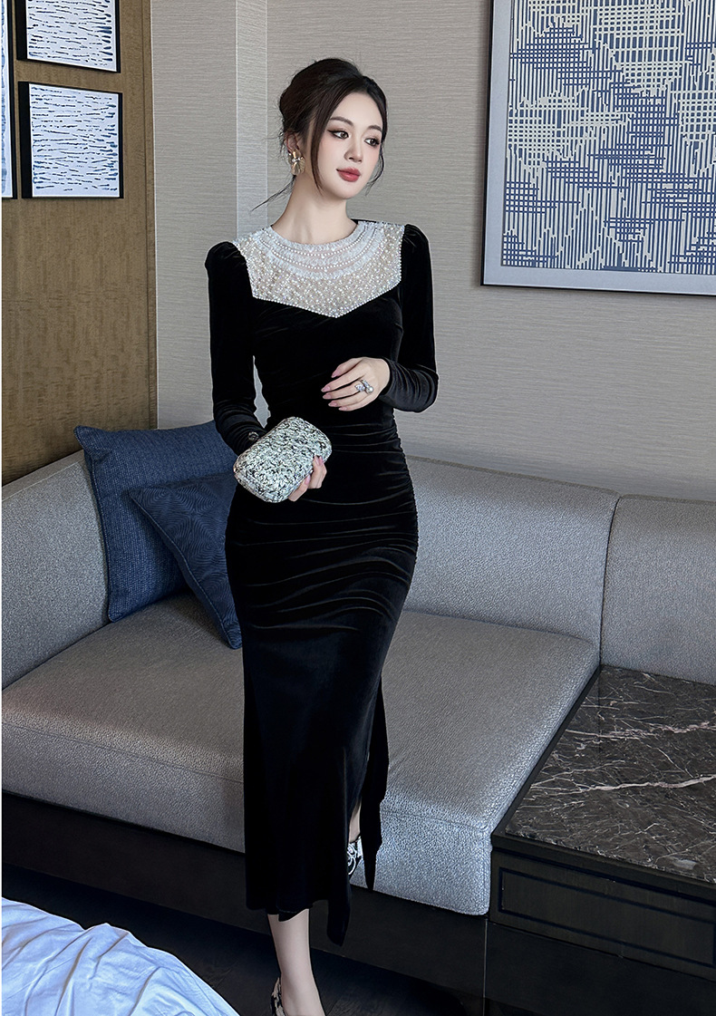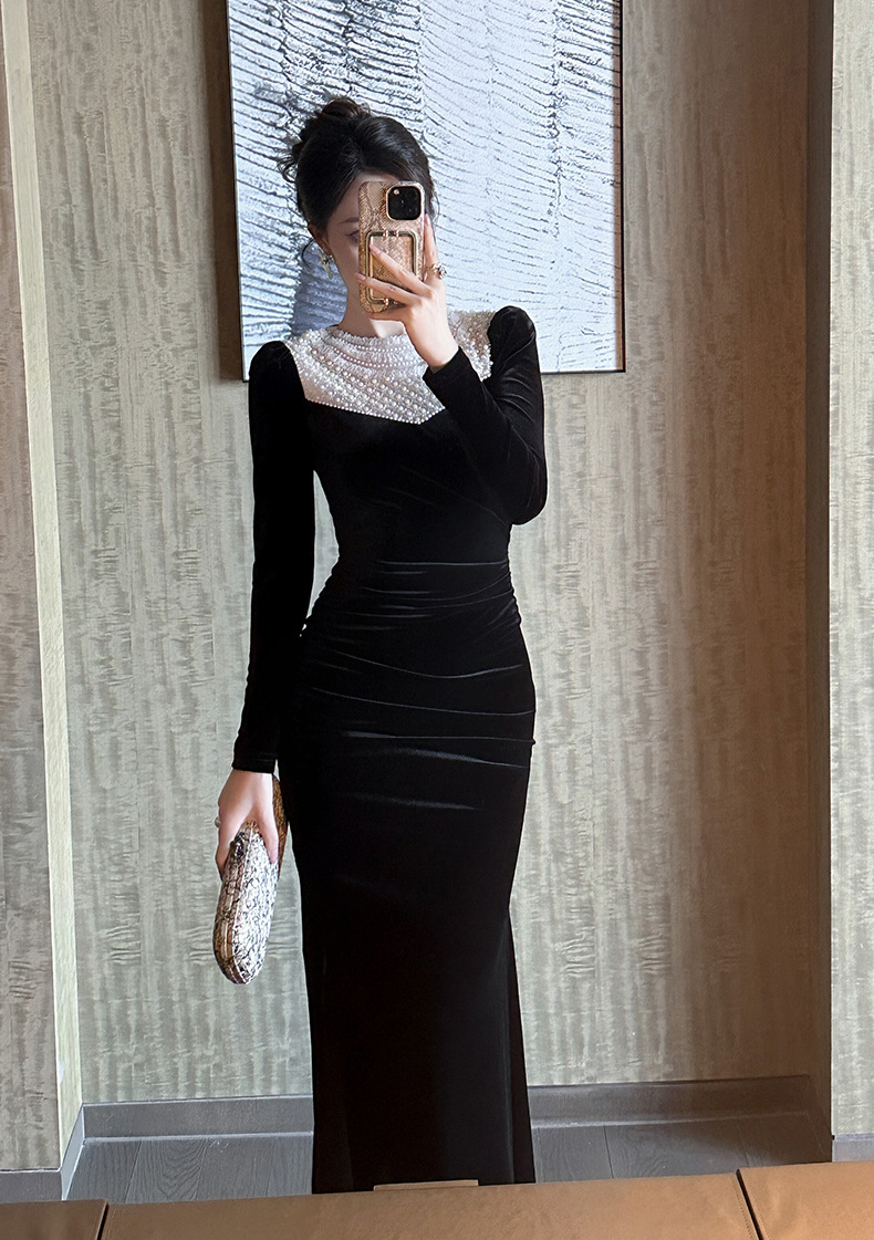 Chiếc đầm dáng dài tay thích hợp cho tiết trời mùa thu. Chất liệu nhung mềm mại tạo cảm giác dễ chịu khi mặc. Cổ áo điểm xuyến những hạt ngọc tr nhỏ xinh, mang đến nét đẹp dịu dàng. Kiểu dáng ôm vừa phải, phù hợp cho nhiều dịp gặp mặt. Có thể phối cùng giày gót thấp hoặc túi xách cỡ vừa. Sản phẩm dễ dàng bảo quản bằng cách giặt tay nhẹ nhàng và phơi nơi râm mát. | Tên sản phẩm: Váy Đầm Liền Thân Nữ Dài Tay Hàng Mùa Xuân Thu Đông - Thời Trang Nữ | Mã sản phẩm: B0480 - Giá: 1.260.000đ | Mã nhà sản xuất: CHDG-G04Hình ảnh sản phẩm