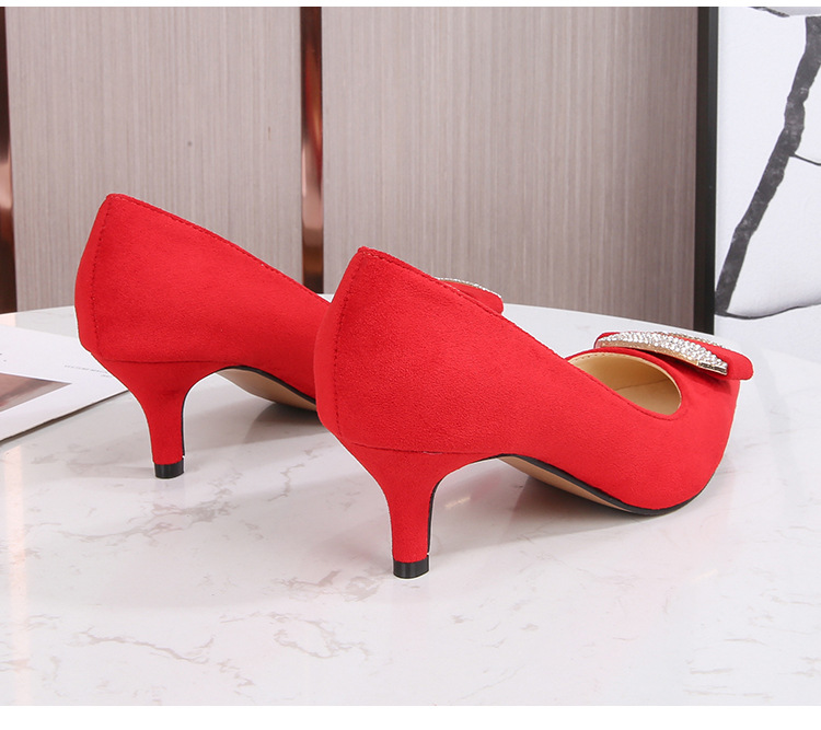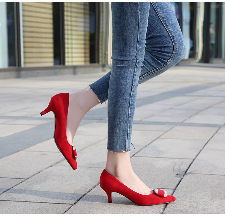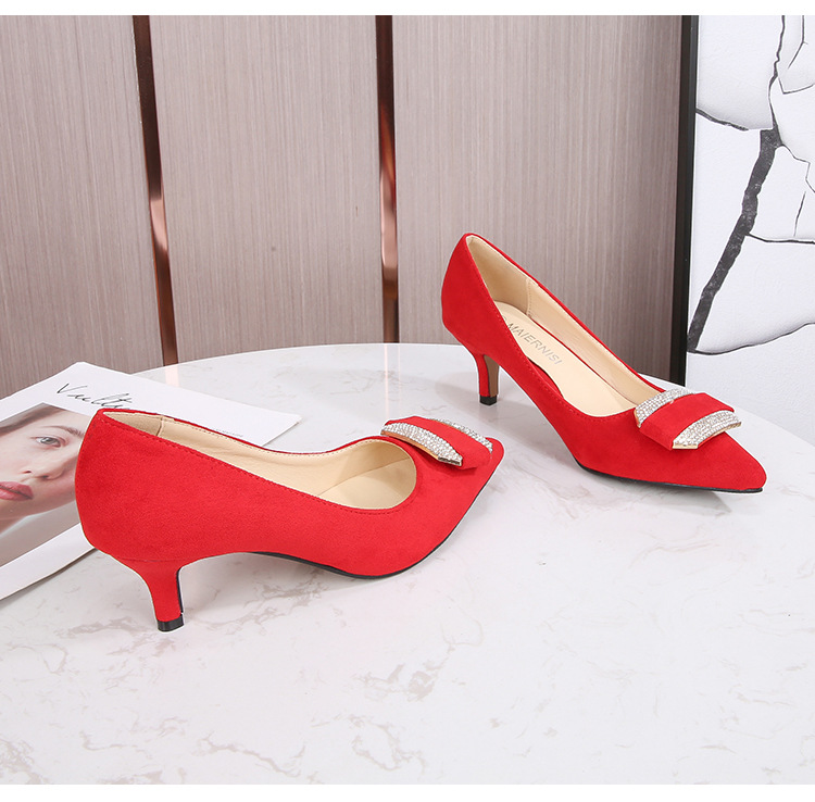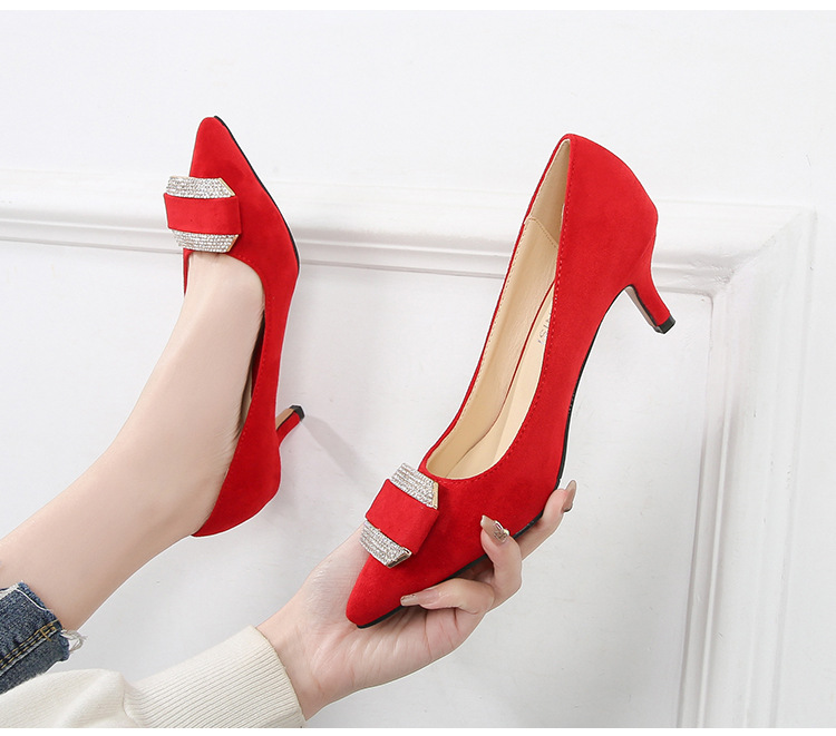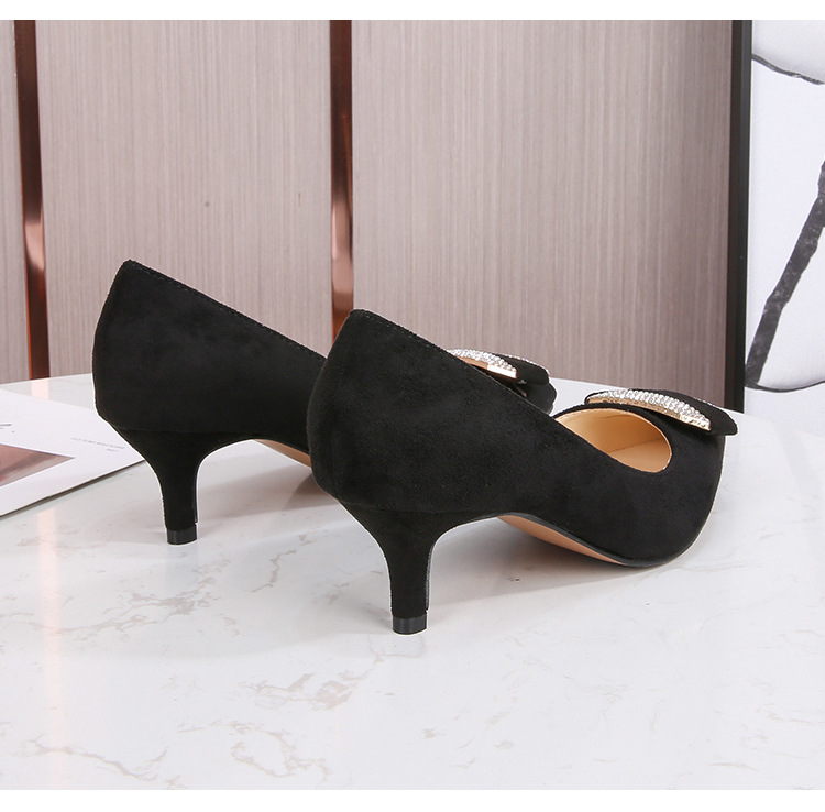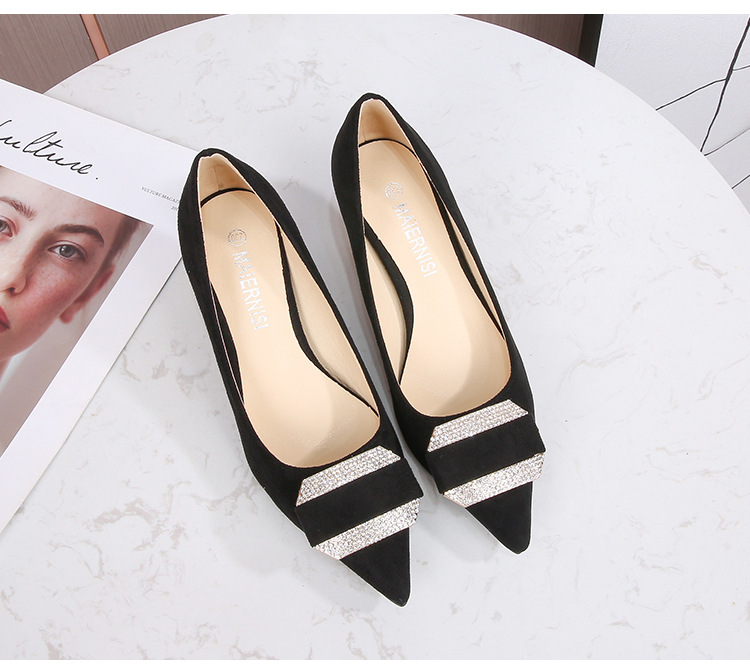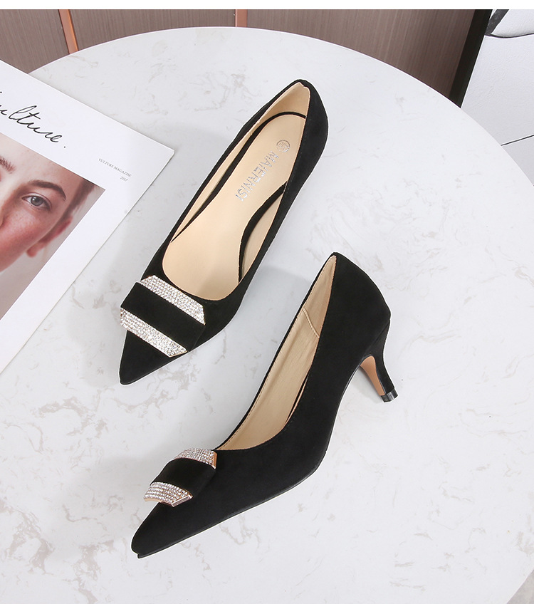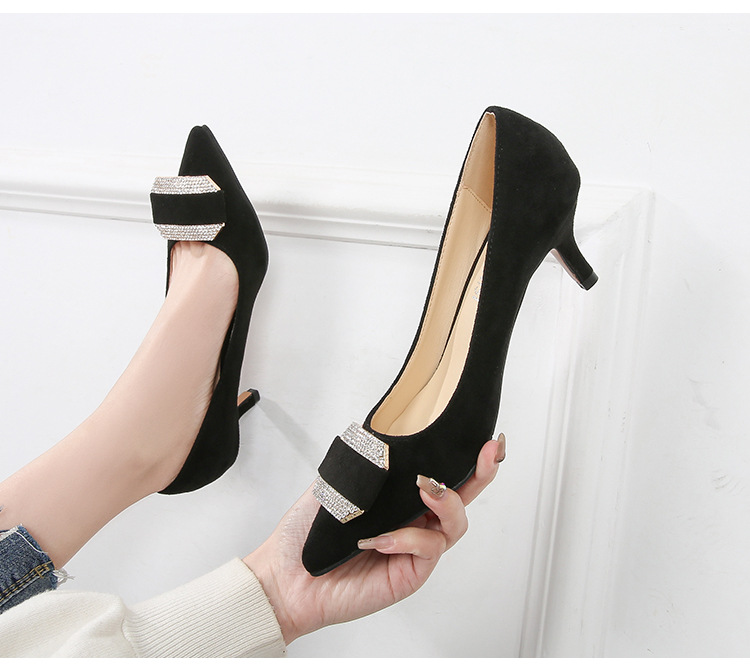 Đôi giày này có mũi nhọn và phần cổ thấp, phù hợp cho cả lúc làm việc và dùng hằng ngày. Chất liệu bề mặt được làm từ vải mềm mịn, tạo cảm giác dễ chịu. Phần gót được thiết kế thanh mảnh, điểm thêm các viên đá lấp lánh nhỏ ở phía trước, tăng thêm nét duyên dáng. Kiểu dáng theo phong cách trẻ trung, hiện đại. Khi sử dụng, bạn nên chọn size phù hợp với chân để mang lại sự thoải mái khi di chuyển. | Tên sản phẩm: Giày Cao Gót Nữ Gắn Đá Mũi Nhọn Gót Nhọn Phong Cách Hàn Quốc - Giày Dép Nữ | Mã sản phẩm: B0486 - Giá: 580.000đ | Mã nhà sản xuất: MATYAL-G01Hình ảnh sản phẩm