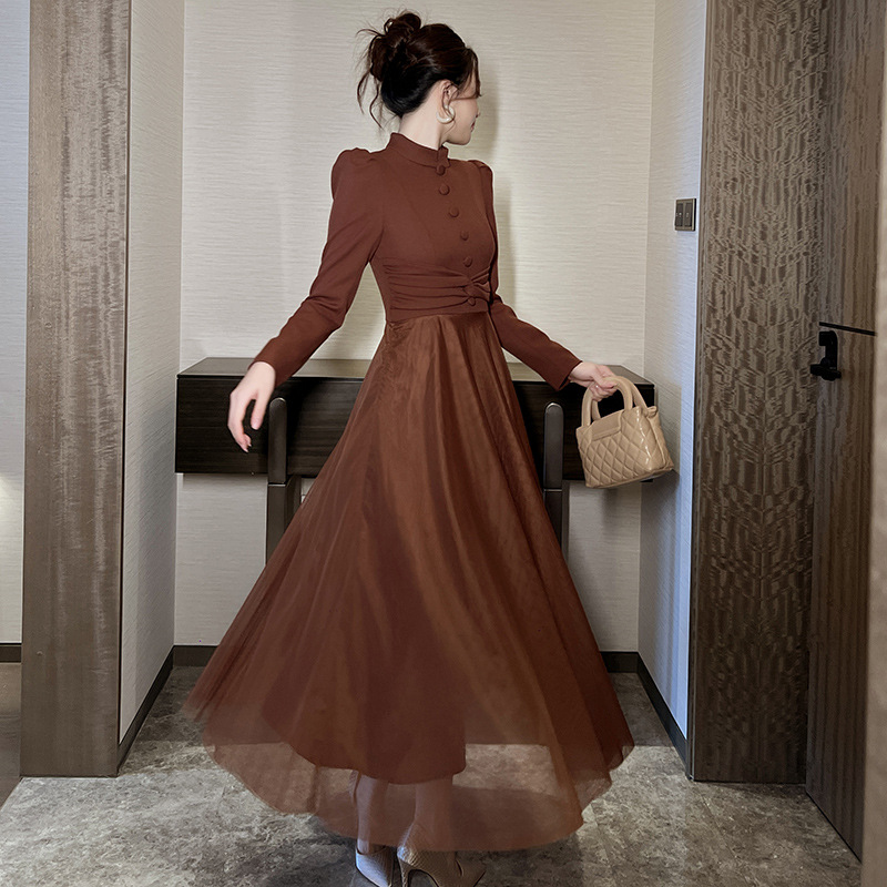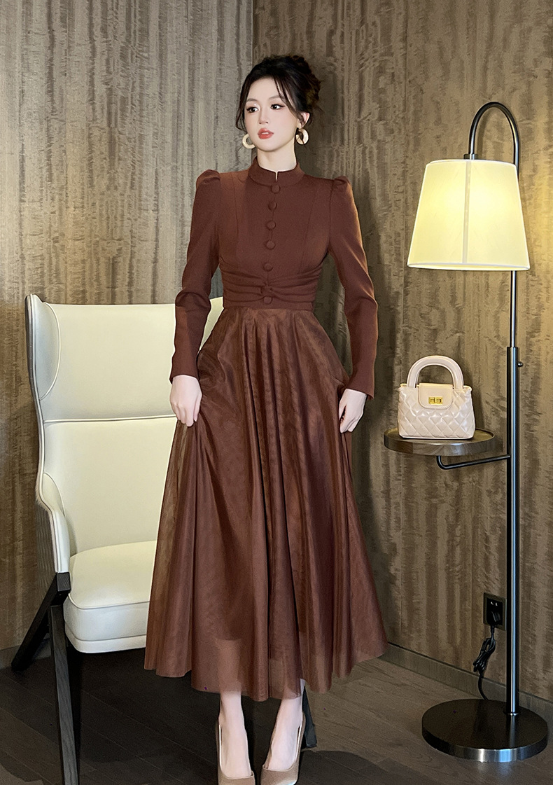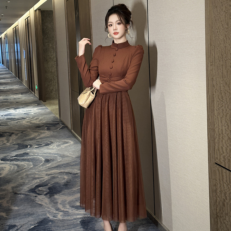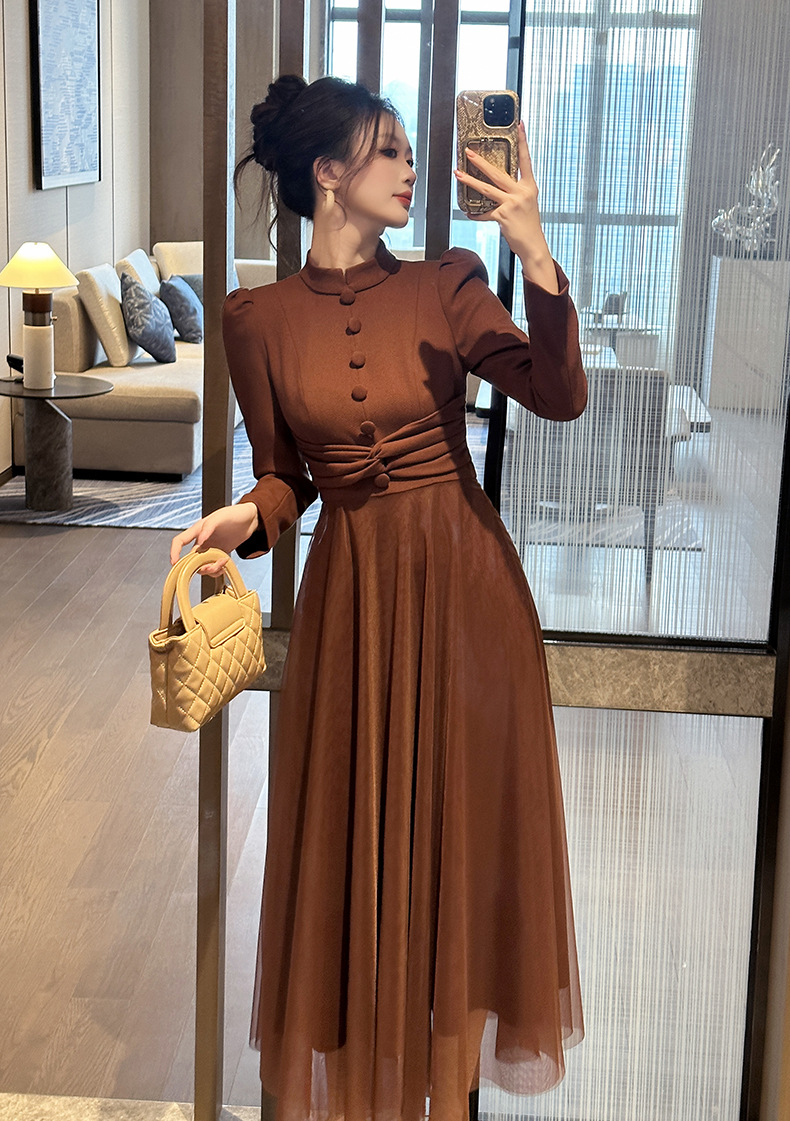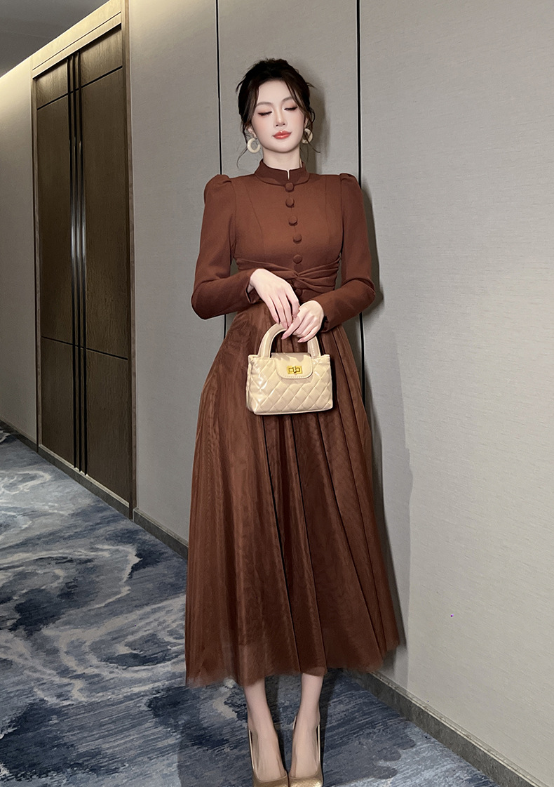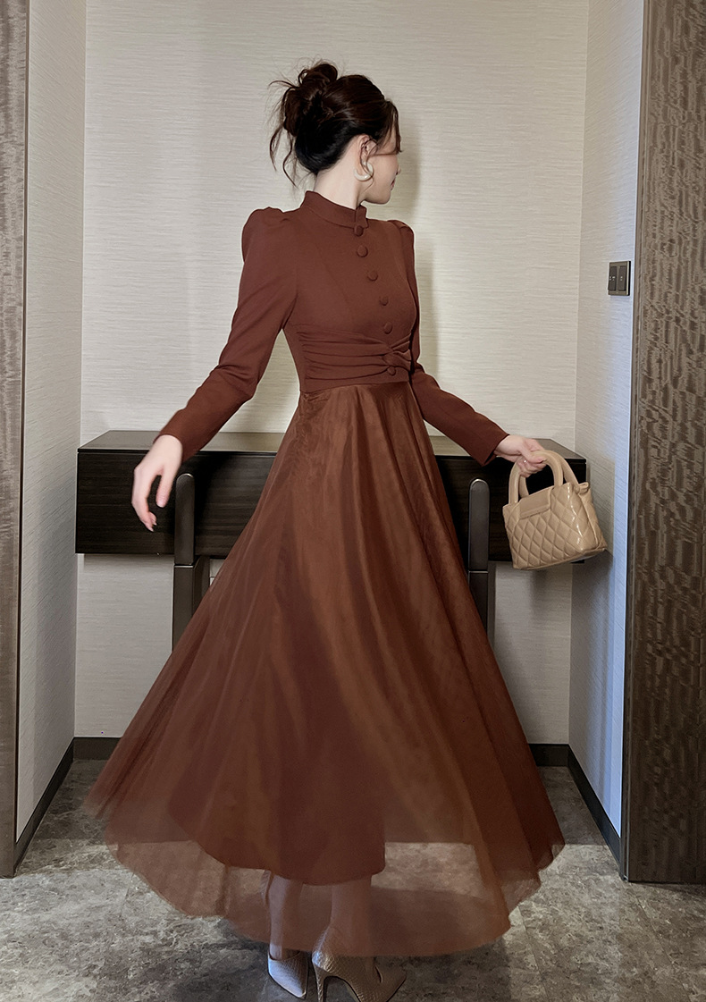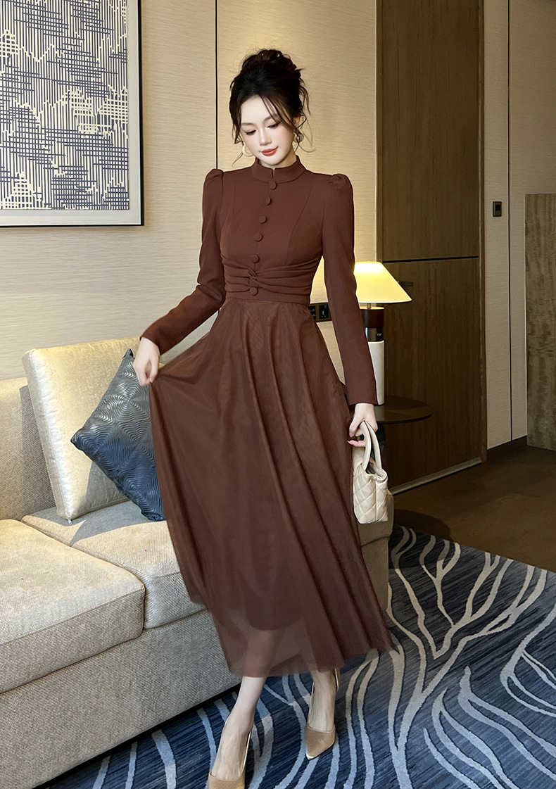 Chiếc váy mới cho mùa thu, lấy cảm hứng từ phong cách cổ điển Pháp. Thiết kế cổ tròn ôm tròn trịa, eo được may chiết nhẹ nhàng tôn dáng. Điểm nhấn đặc biệt đến từ phần thân dưới kết hợp chất vải mỏng nhẹ tạo nên những đường xếp lớp không đều nhau, giúp váy phồng nhẹ mỗi khi bạn di chuyển. Sản phẩm phù hợp để mặc đi làm, dạo phố hay dự những buổi gặp mặt. | Tên sản phẩm: Váy Đầm Liền Thân Nữ Lưới Mỏng Hàng Mùa Xuân Thu Đông Phục Cổ Cổ Điển - Thời Trang Nữ | Mã sản phẩm: B0521 - Giá: 1.440.000đ | Mã nhà sản xuất: CHDG-G04Hình ảnh sản phẩm