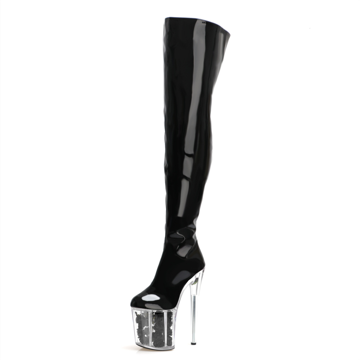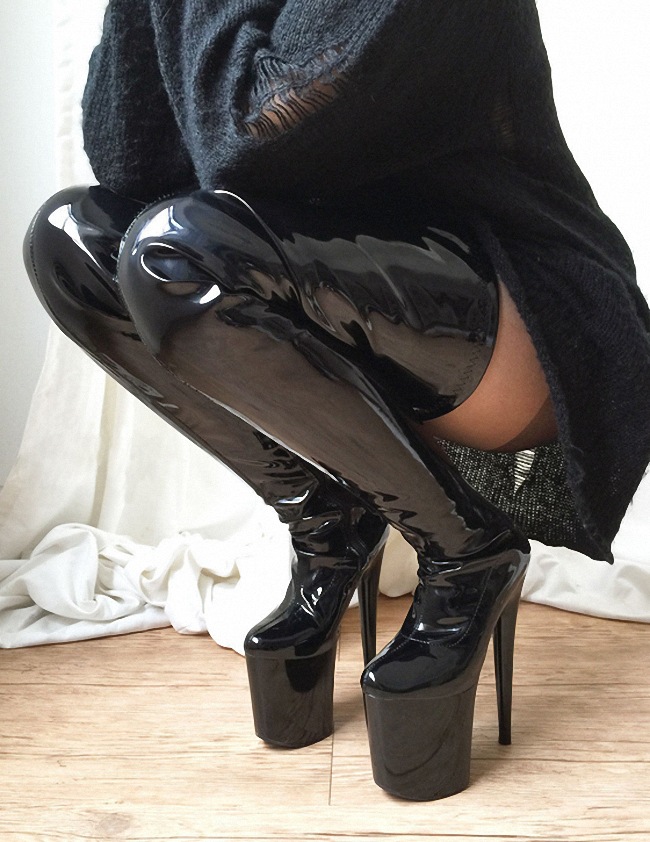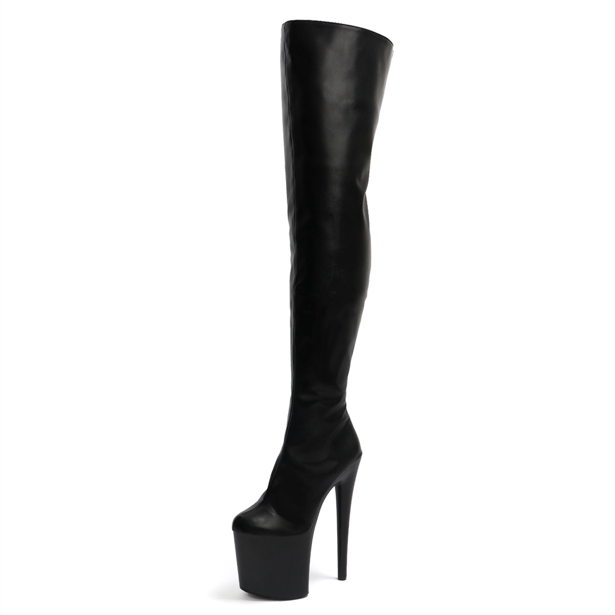 Đôi bốt cao đến gối này có phần đế ngoài rất dày và phần gót thẳng đứng cao đến hai mươi phân, tạo dáng cực kỳ nổi bật. Sản phẩm được thiết kế dành riêng cho những người có cỡ chân lớn. Kiểu dáng mạnh mẽ và cá tính, phù hợp cho các buổi trình diễn hoặc tiết mục khiêu vũ. Khi sử dụng, bạn nên bước đi cẩn thận và chú ý giữ thăng bằng để đảm bảo an toàn. | Tên sản phẩm: Giày Boot Cổ Cao Nữ Big Size Ngoại Cỡ Cao 20cm Cổ Cao Qua Gối Chống Nước - Giày Dép Nữ | Mã sản phẩm: B0523 - Giá: 2.450.000đ | Mã nhà sản xuất: SHDI-G05Hình ảnh sản phẩm