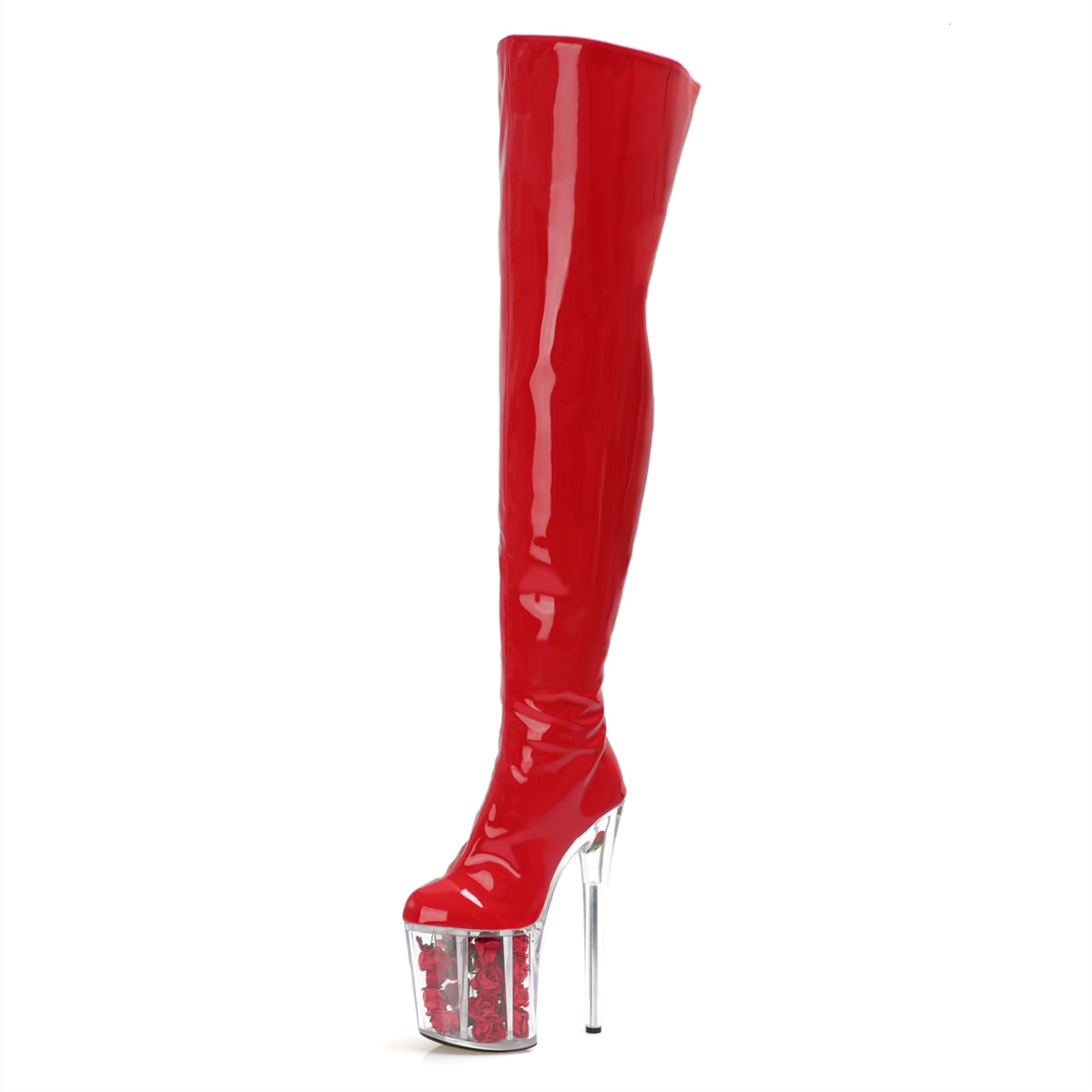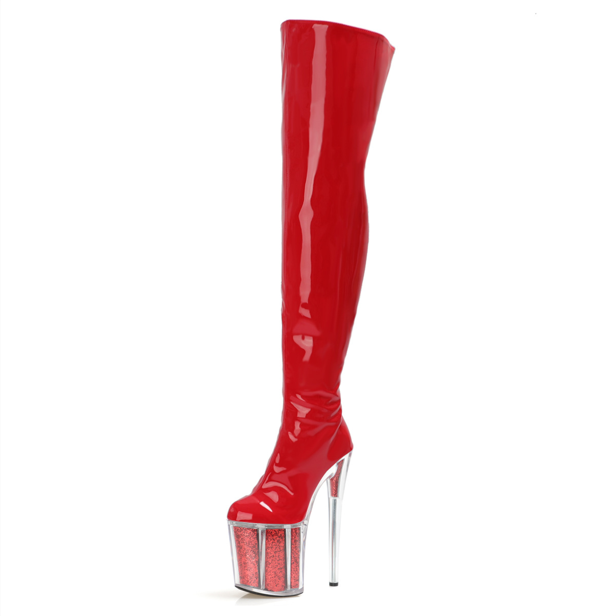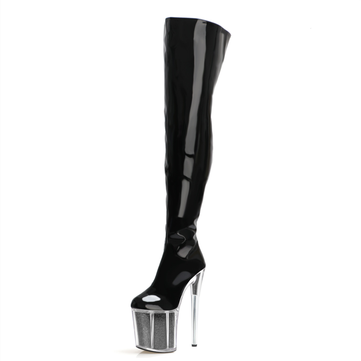 Đôi bốt cao đến gối này có phần đế ngoài rất dày và phần gót thẳng đứng cao đến hai mươi phân, tạo dáng cực kỳ nổi bật. Sản phẩm được thiết kế dành riêng cho những người có cỡ chân lớn. Kiểu dáng mạnh mẽ và cá tính, phù hợp cho các buổi trình diễn hoặc tiết mục khiêu vũ. Khi sử dụng, bạn nên bước đi cẩn thận và chú ý giữ thăng bằng để đảm bảo an toàn. | Tên sản phẩm: Giày Boot Cổ Cao Nữ Big Size Ngoại Cỡ Cao 20cm Cổ Cao Qua Gối Chống Nước - Giày Dép Nữ | Mã sản phẩm: B0523 - Giá: 2.450.000đ | Mã nhà sản xuất: SHDI-G05Hình ảnh sản phẩm