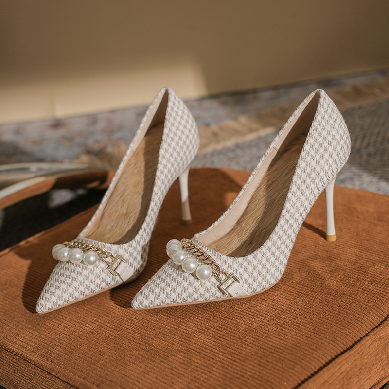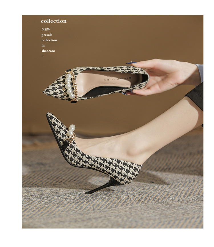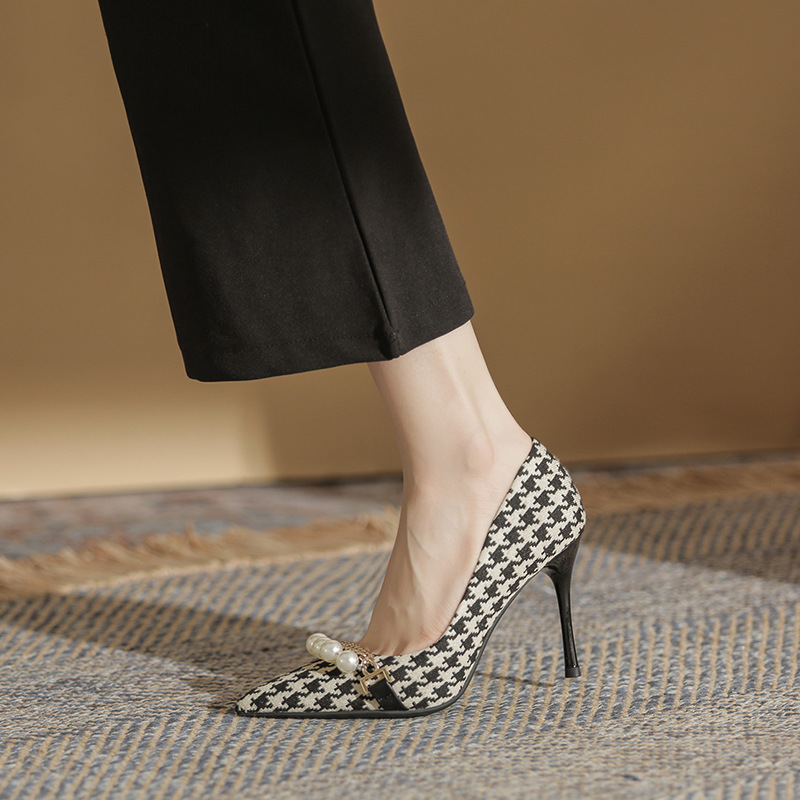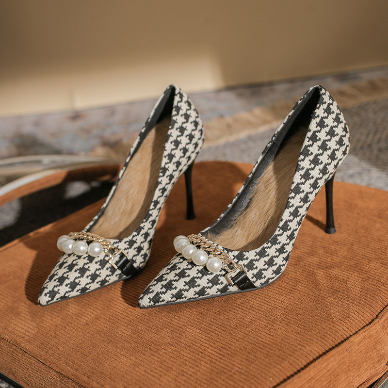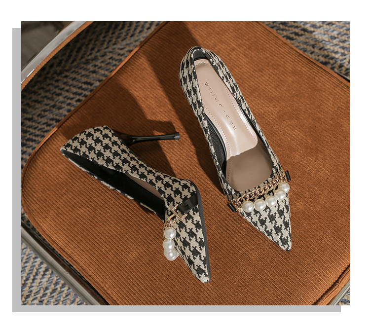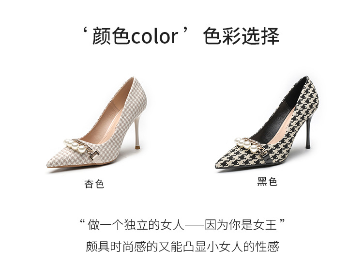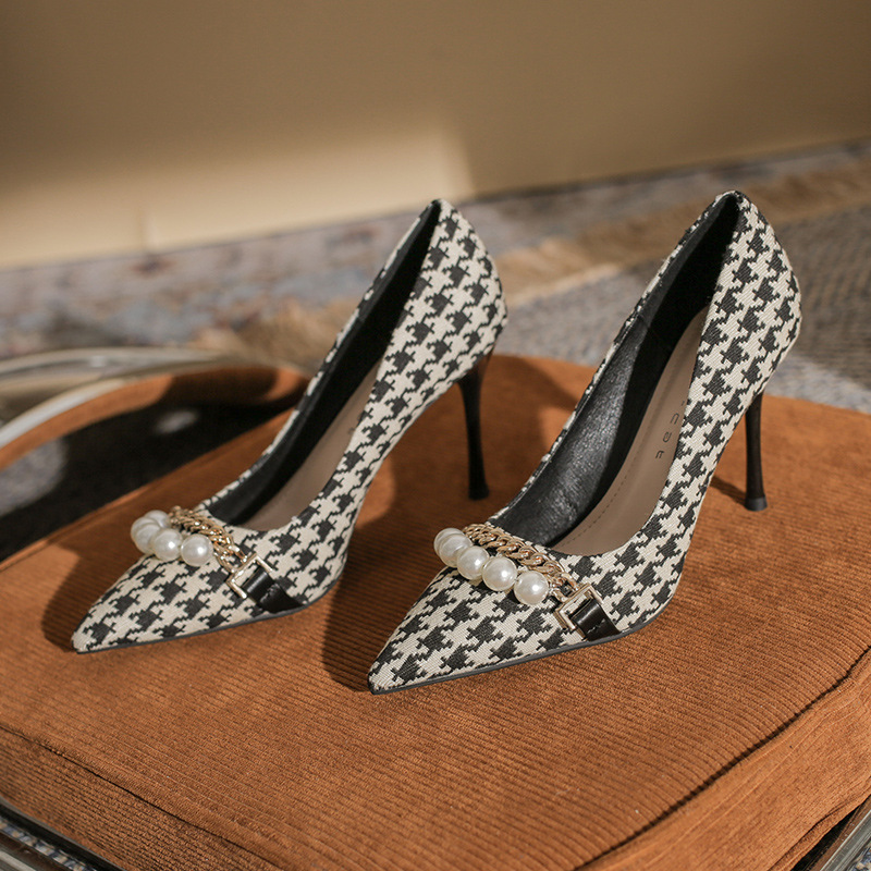 Giày cao gót nữ thiết kế mũi nhọn, gót thanh mảnh tôn dáng. Điểm nhấn là dây kim loại bóng cùng viền ngọc tr thanh lịch ở cổ giày. Kiểu dáng kết hợp hai tông màu tạo vẻ trẻ trung, hiện đại. Phù hợp mang cùng nhiều loại trang phục khác nhau. Dễ dàng phối đồ đi làm, dự tiệc hay gặp mặt bạn bè. Cách sử dụng đơn giản, chỉ cần xỏ chân vào và cài khóa móc ở dây kim loại. | Tên sản phẩm: Giày Cao Gót Nữ Mũi Nhọn Gót Nhọn Hàng Mùa Xuân Thu Đông - Giày Dép Nữ | Mã sản phẩm: B0531 - Giá: 830.000đ | Mã nhà sản xuất: HUDS-G03Hình ảnh sản phẩm