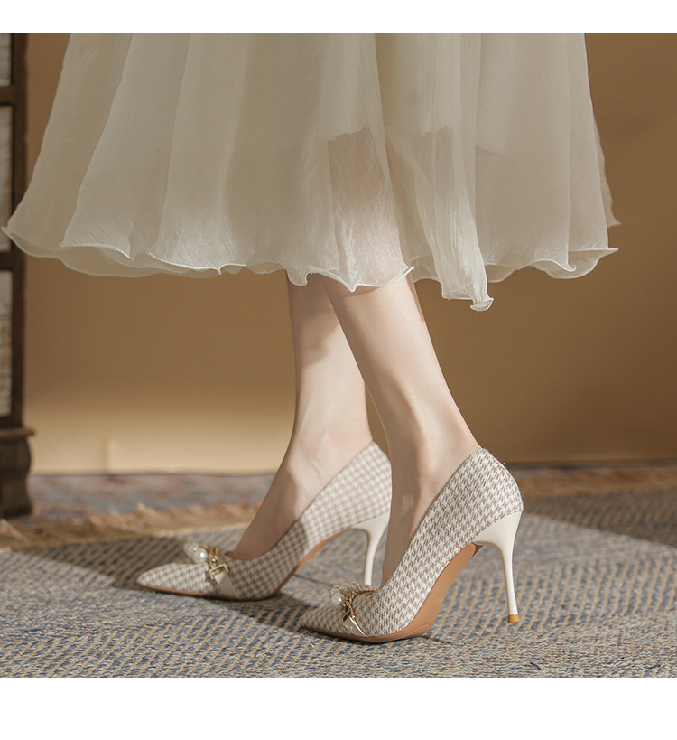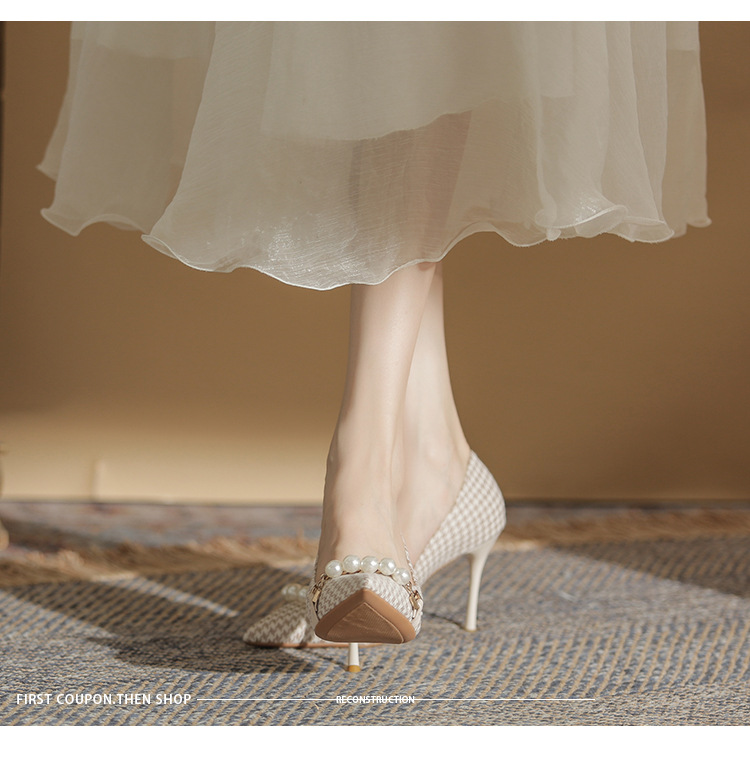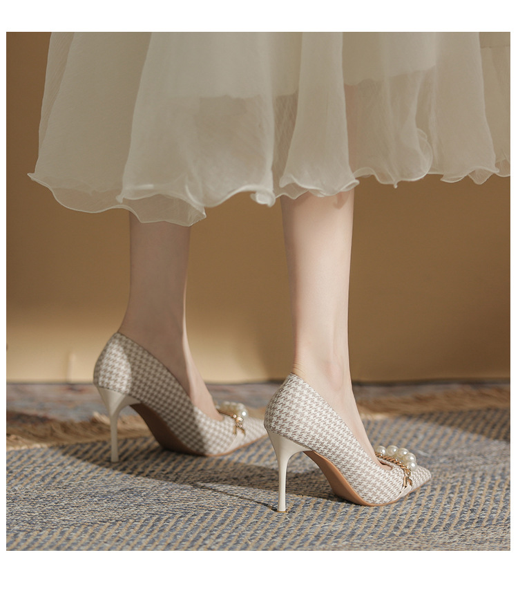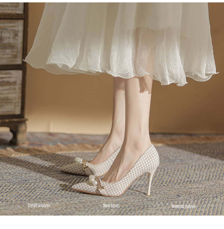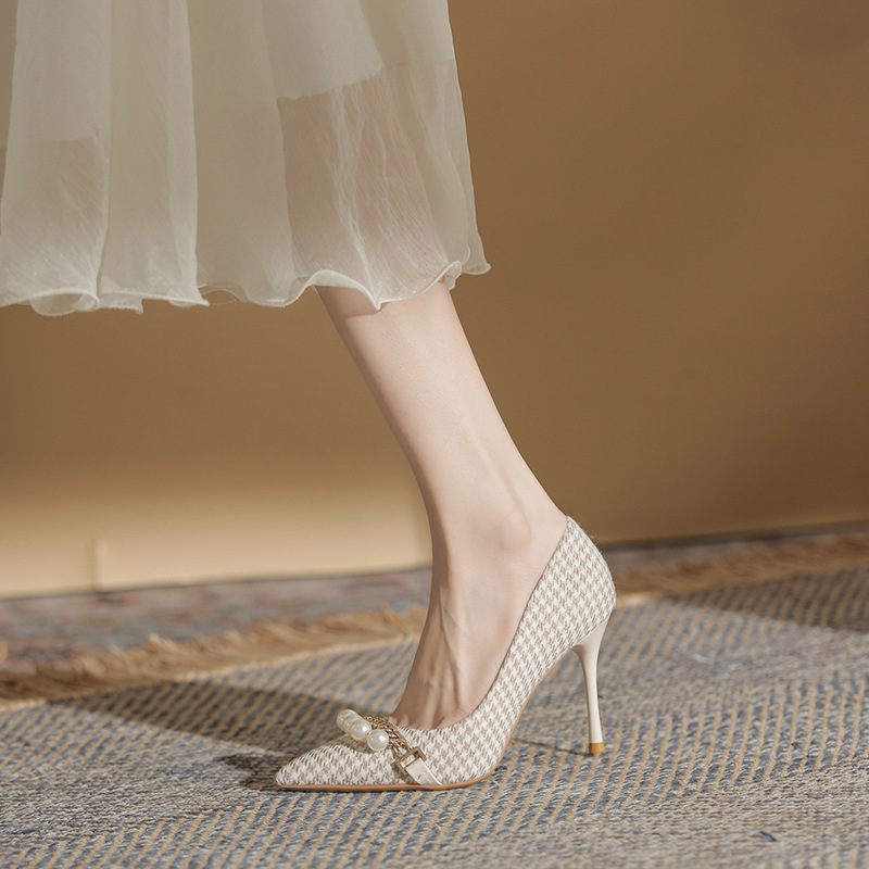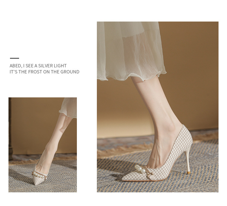 Giày cao gót nữ thiết kế mũi nhọn, gót thanh mảnh tôn dáng. Điểm nhấn là dây kim loại bóng cùng viền ngọc tr thanh lịch ở cổ giày. Kiểu dáng kết hợp hai tông màu tạo vẻ trẻ trung, hiện đại. Phù hợp mang cùng nhiều loại trang phục khác nhau. Dễ dàng phối đồ đi làm, dự tiệc hay gặp mặt bạn bè. Cách sử dụng đơn giản, chỉ cần xỏ chân vào và cài khóa móc ở dây kim loại. | Tên sản phẩm: Giày Cao Gót Nữ Mũi Nhọn Gót Nhọn Hàng Mùa Xuân Thu Đông - Giày Dép Nữ | Mã sản phẩm: B0531 - Giá: 830.000đ | Mã nhà sản xuất: HUDS-G03Hình ảnh sản phẩm