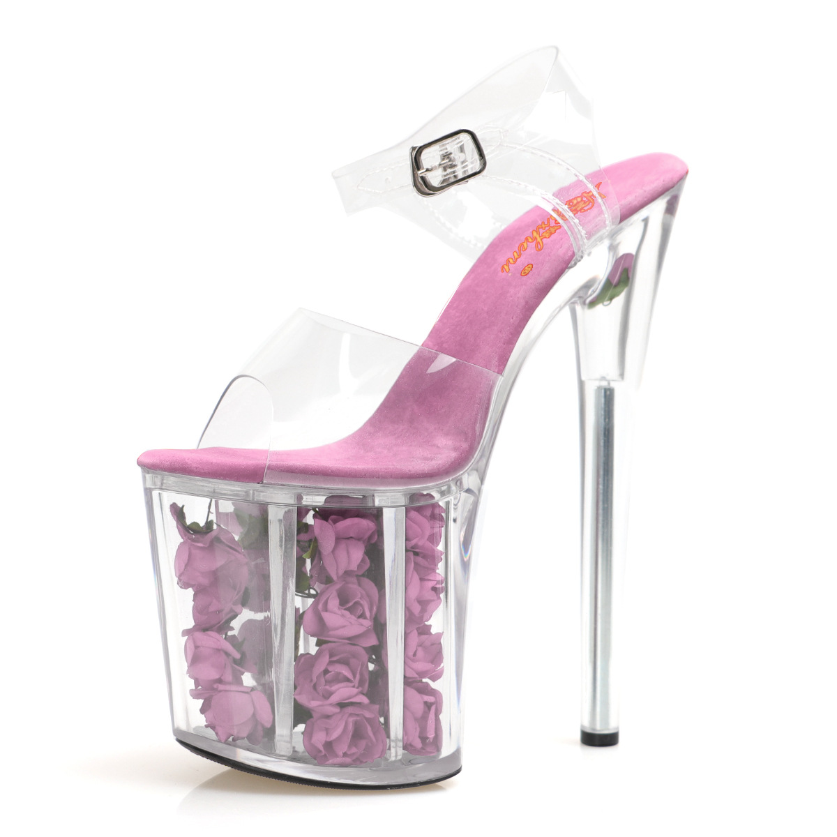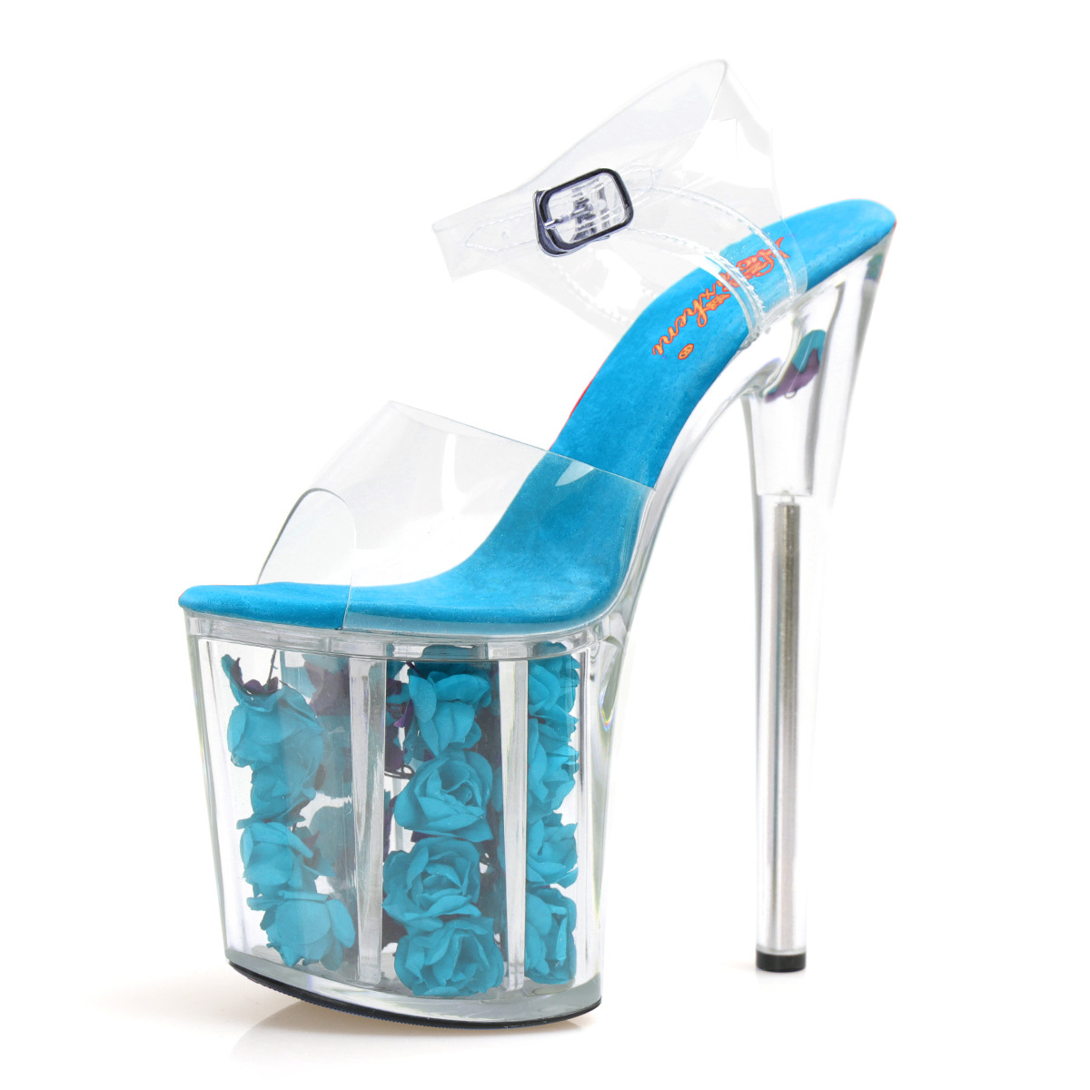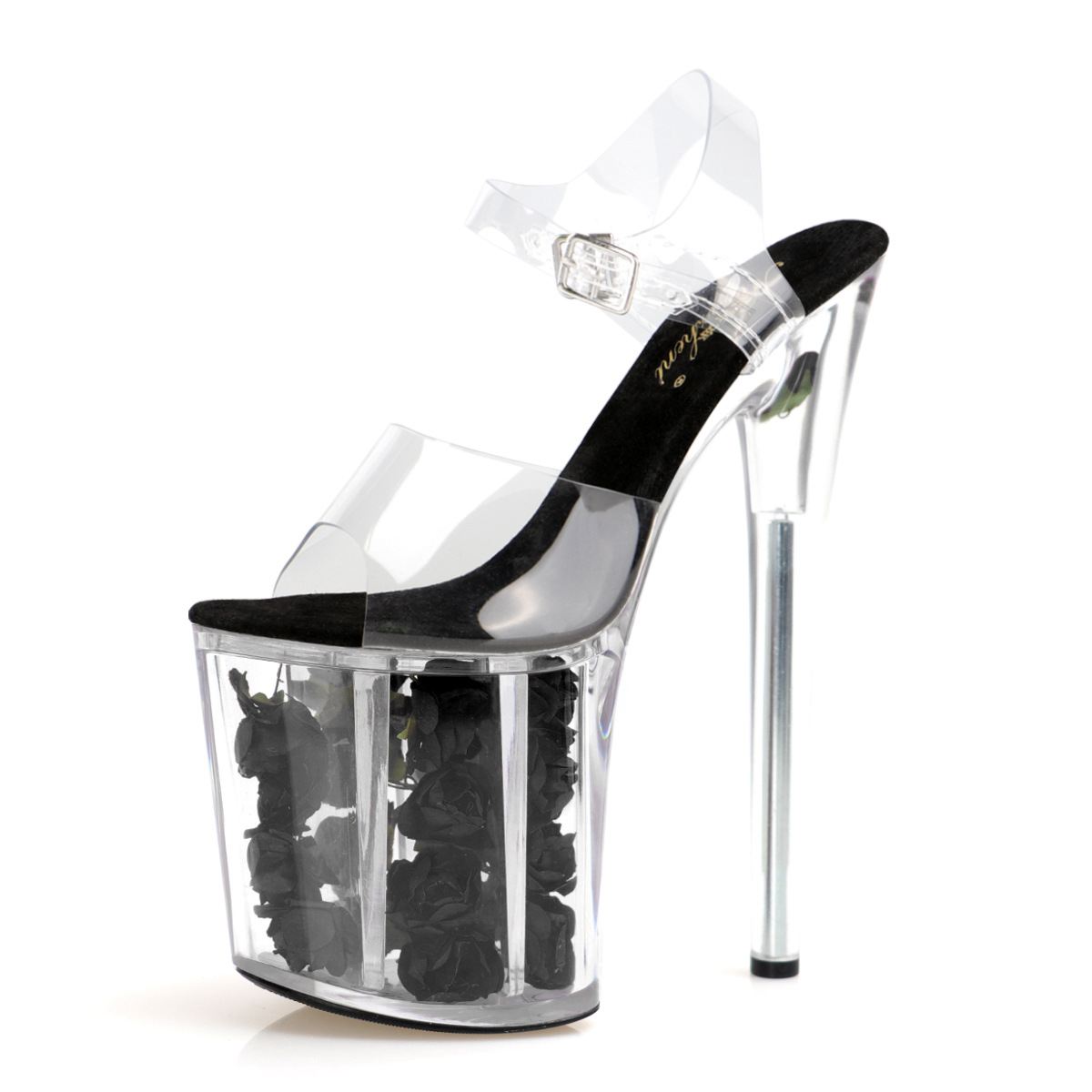 Đôi giày cao nữ tính với phần đế được làm vững chãi, giúp nâng đỡ toàn bộ đôi chân. Phần mũi giày kiểu dáng hở nhẹ tạo điểm nhấn. Chiều cao ấn tượng khoảng 20 cm, phù hợp để biểu diễn hoặc tạo phong cách thời trang cá tính. Chất liệu trong suốt kết hợp họa tiết hoa trên thân giày mang lại vẻ đẹp hiện đại. Sản phẩm có nhiều cỡ chân khác nhau. Khi sử dụng, nên đi những bước ngắn và chậm rãi để giữ thăng bằng tốt hơn. | Tên sản phẩm: Giày Cao Gót Nữ Big Size Ngoại Cỡ Cao 20cm Chống Nước Trong Suốt Miệng Cá - Giày Dép Nữ | Mã sản phẩm: B0532 - Giá: 1.780.000đ | Mã nhà sản xuất: SHDI-G05Hình ảnh sản phẩm