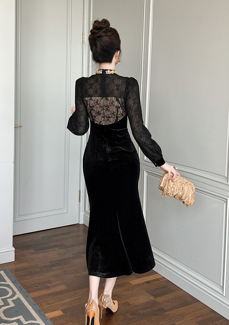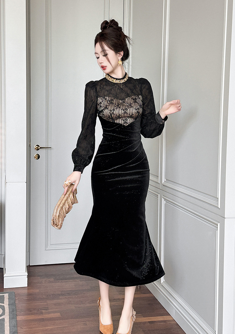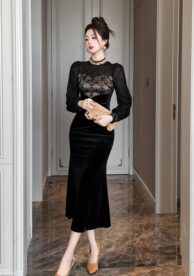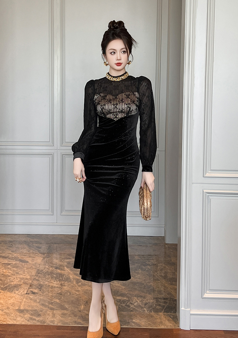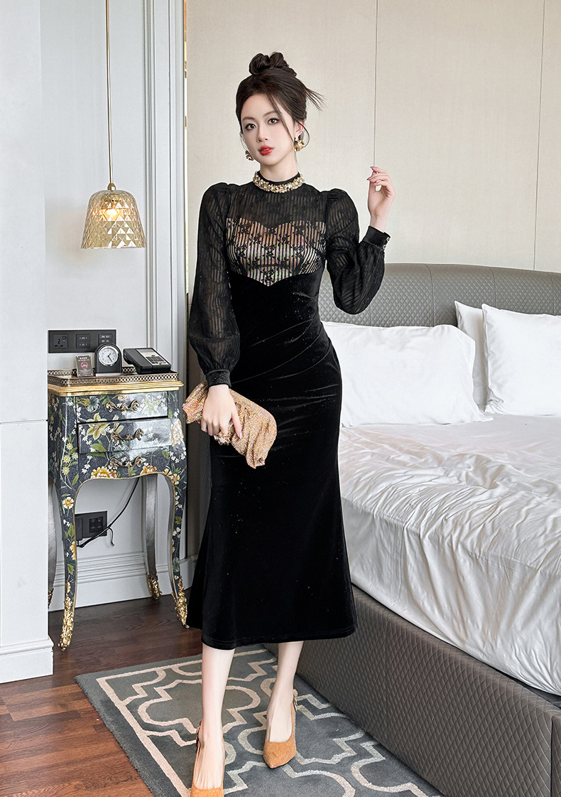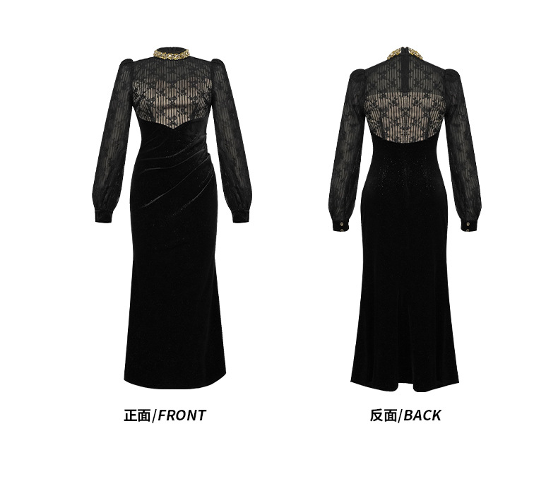 Chiếc đầm dạ hội này có chất vải mềm mại như nhung, điểm nổi bật nhờ những đường đính hạt cầu kỳ và chi tiết nối ghép tinh tế. Kiểu dáng ôm sát tôn lên đường nét cơ thể người mặc. Sản phẩm thích hợp cho các buổi tiệc tối hoặc sự kiện vào mùa thu đông. Khi sử dụng, bạn nên giặt khô hoặc giặt tay nhẹ nhàng để giữ vẻ đẹp lâu bền cho trang phục. | Tên sản phẩm: Váy Đầm Liền Thân Nữ Dáng Ôm Hàng Mùa Xuân Thu Đông - Thời Trang Nữ | Mã sản phẩm: B0545 - Giá: 1.490.000đ | Mã nhà sản xuất: CHDG-G04Hình ảnh sản phẩm