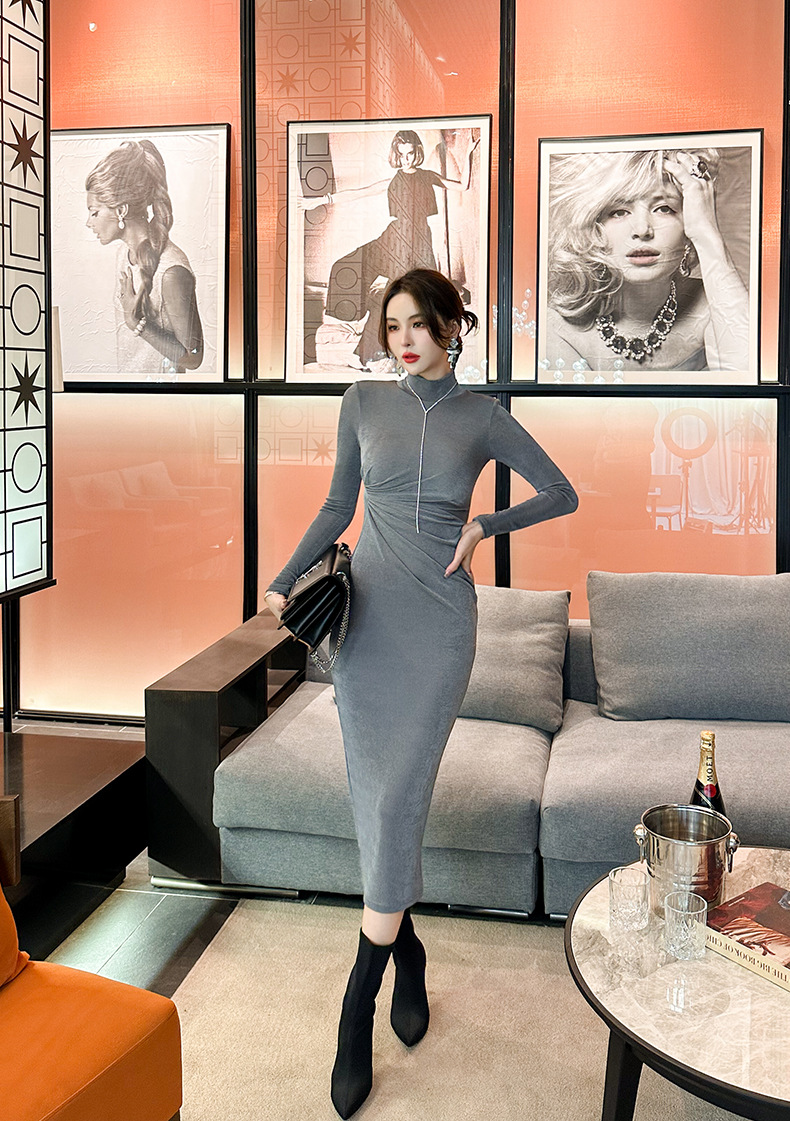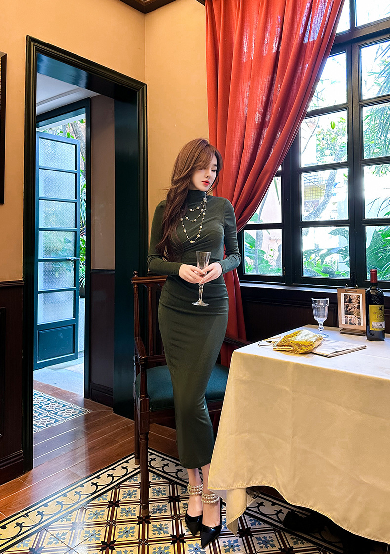 Chiếc váy dáng dài ôm sát cơ thể, điểm nhấn là phần cổ áo đứng thanh lịch theo phong cách châu Âu. Chất vải co giãn nhẹ tạo cảm giác thoải mái khi mặc, đồng thời giúp tôn lên những đường nét cơ thể một cách tinh tế. Sản phẩm thích hợp để mặc bên trong hoặc kết hợp cùng áo khoác ngoài. Bạn có thể dễ dàng phối cùng giày cao gót hoặc giày thể thao để tạo nên những phong cách khác nhau. | Tên sản phẩm: Váy Đầm Liền Thân Dáng Dài Nữ Dáng Ôm Hàng Mùa Xuân Thu Đông - Thời Trang Nữ | Mã sản phẩm: B0557 - Giá: 920.000đ | Mã nhà sản xuất: CHDG-G03Hình ảnh sản phẩm