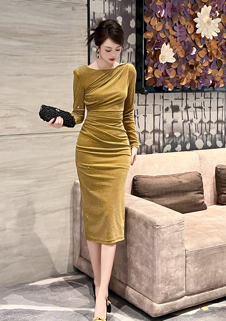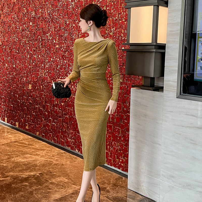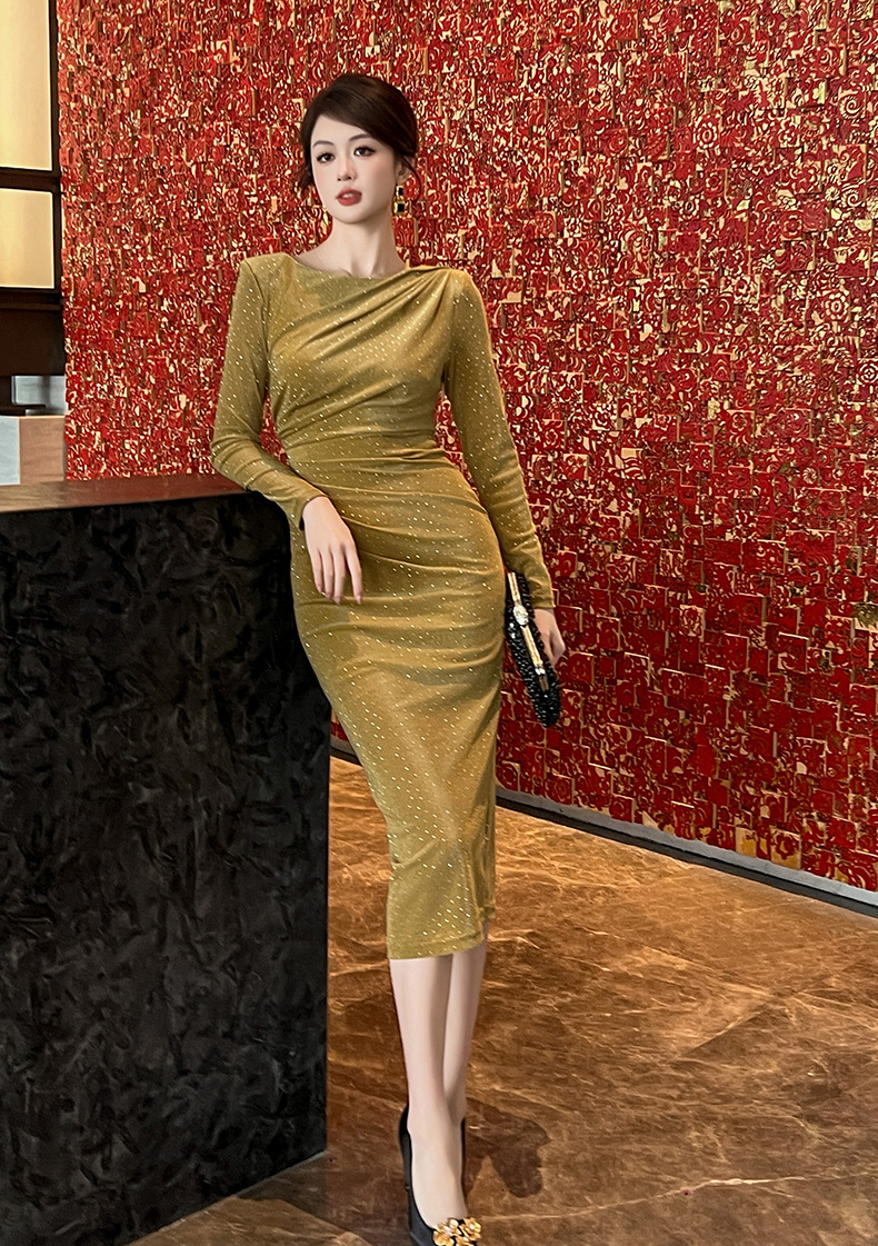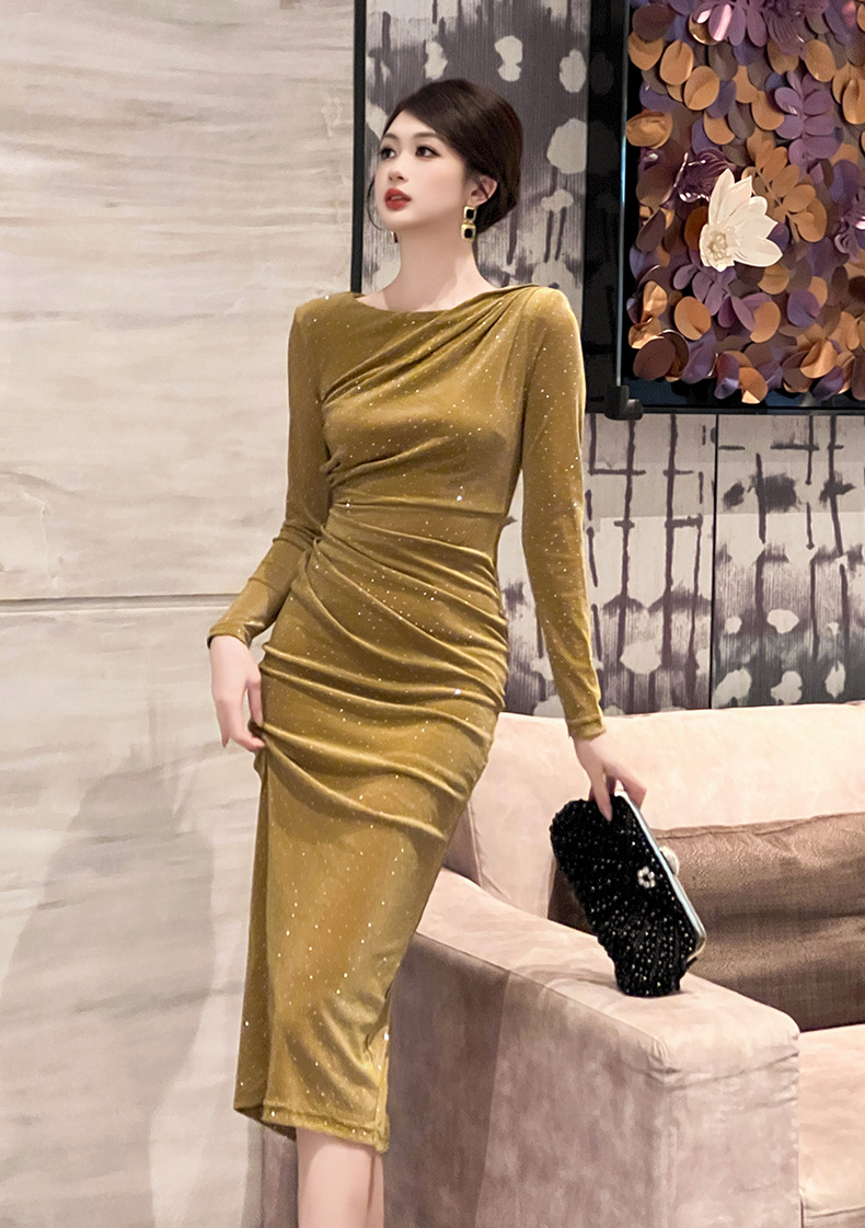 Đầm dạ hội dành cho mùa thu đông này có kiểu dáng ôm sát cơ thể, tôn lên những đường nét duyên dáng. Chất liệu vải được tạo kiểu với các nếp gấp mềm mại, giúp chiếc đầm thêm phần tinh tế và năng động. Bạn có thể mặc chiếc đầm này để tham dự các buổi tiệc tối hoặc sự kiện cần trang phục lịch sự. Thiết kế cổ điển và form dáng bó sát giúp dễ dàng phối hợp với các loại phụ kiện khác nhau. | Tên sản phẩm: Váy Đầm Liền Thân Nữ Hàng Mùa Xuân Thu Đông - Thời Trang Nữ | Mã sản phẩm: B0561 - Giá: 1.120.000đ | Mã nhà sản xuất: CHDG-G04Hình ảnh sản phẩm