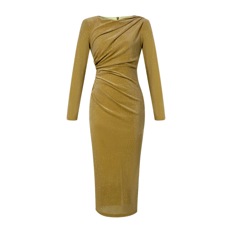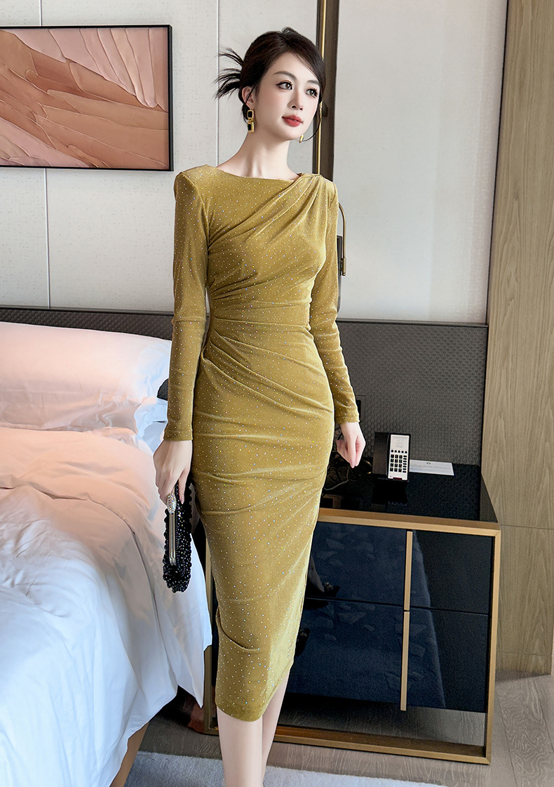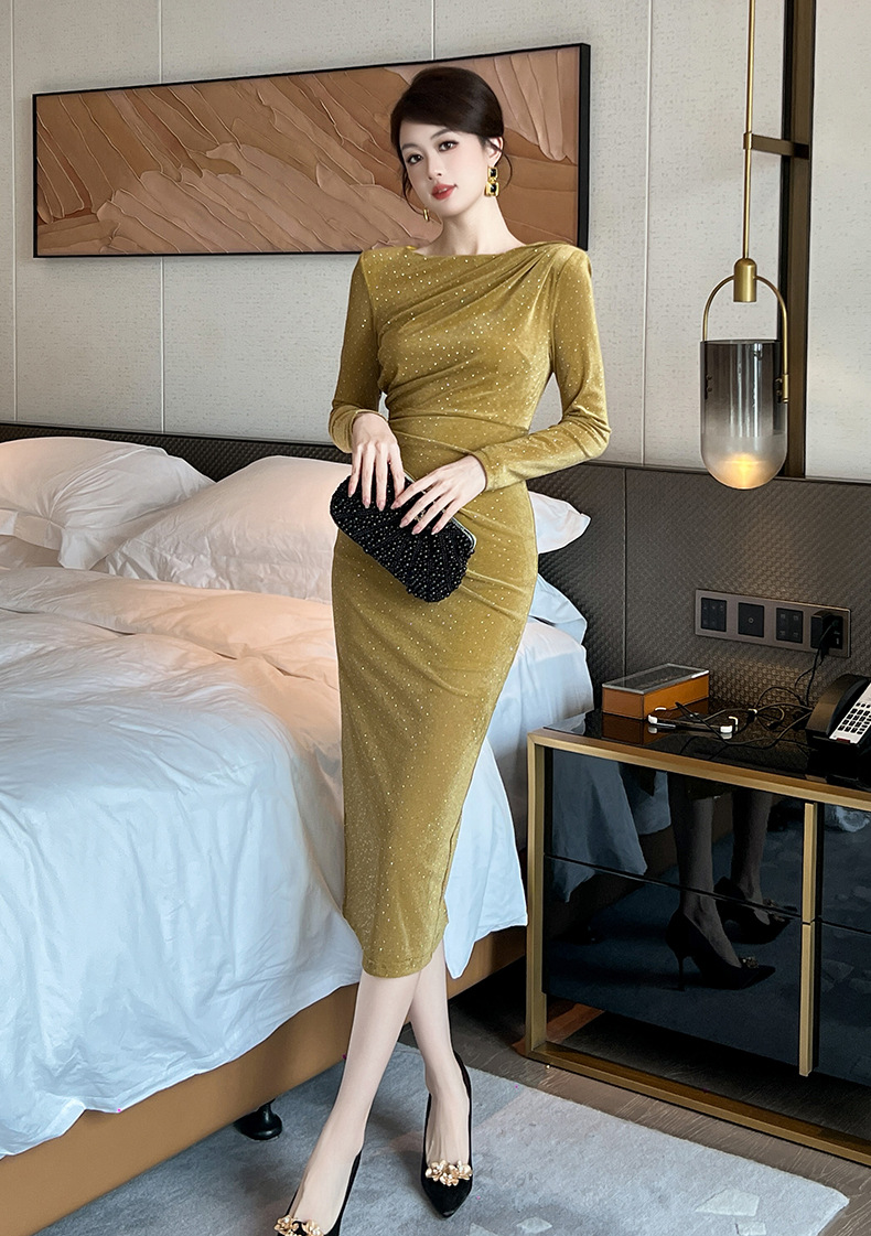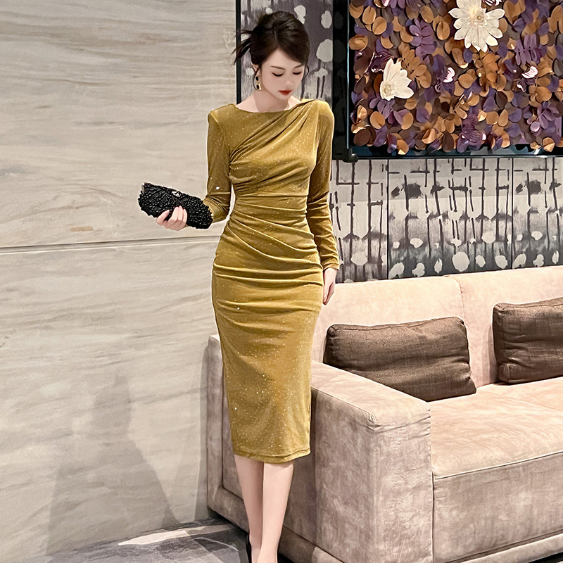 Đầm dạ hội dành cho mùa thu đông này có kiểu dáng ôm sát cơ thể, tôn lên những đường nét duyên dáng. Chất liệu vải được tạo kiểu với các nếp gấp mềm mại, giúp chiếc đầm thêm phần tinh tế và năng động. Bạn có thể mặc chiếc đầm này để tham dự các buổi tiệc tối hoặc sự kiện cần trang phục lịch sự. Thiết kế cổ điển và form dáng bó sát giúp dễ dàng phối hợp với các loại phụ kiện khác nhau. | Tên sản phẩm: Váy Đầm Liền Thân Nữ Hàng Mùa Xuân Thu Đông - Thời Trang Nữ | Mã sản phẩm: B0561 - Giá: 1.120.000đ | Mã nhà sản xuất: CHDG-G04Hình ảnh sản phẩm