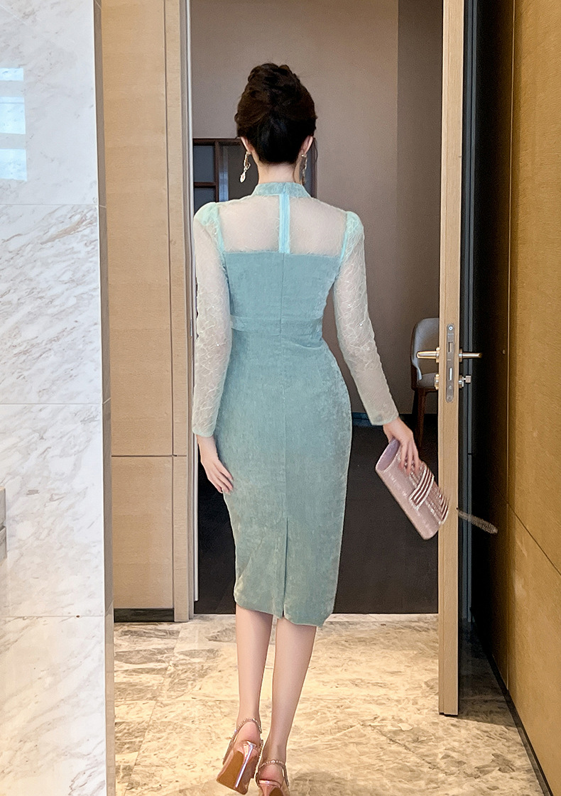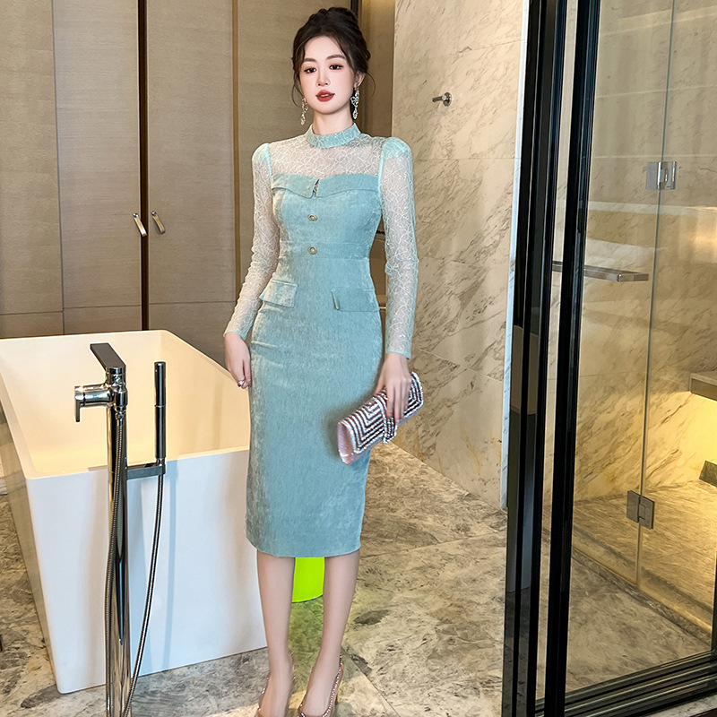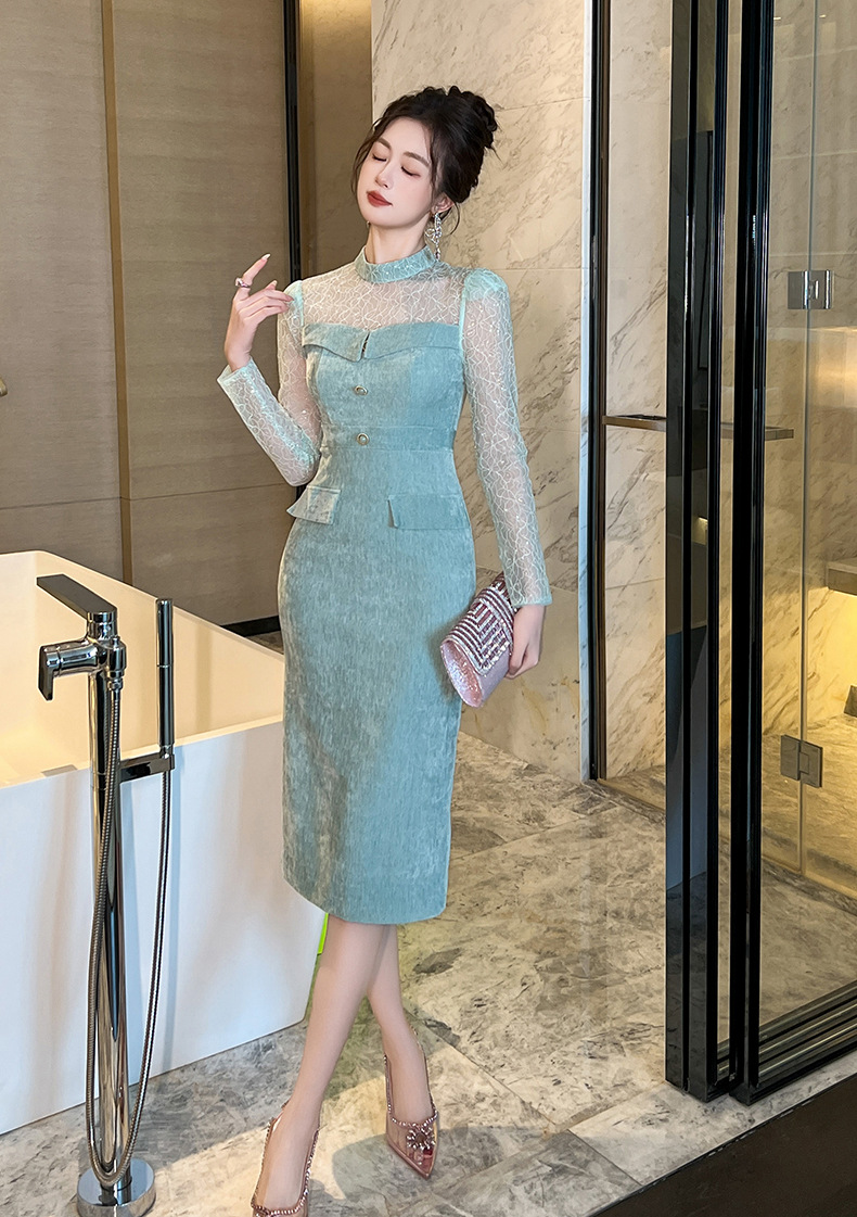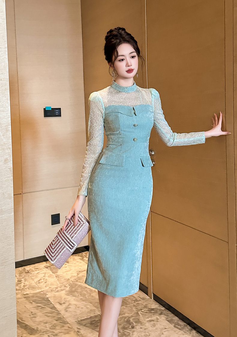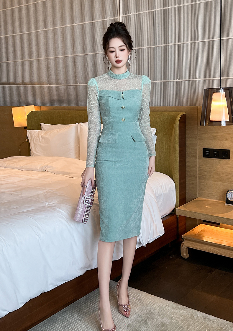 Chiếc váy dành cho nữ này có cổ tròn dễ mặc, kết hợp giữa chất liệu nhung mềm mại và phần trang trí bằng vải mỏng nhẹ nhàng. Kiểu dáng ôn nhẹ vào cơ thể, phù hợp cho những ngày thu đông. Thiết kế mang phong cách nhẹ nhàng, thanh thoát. Sản phẩm mặc kèm với áo khoác nhẹ hoặc phụ kiện đơn giản để tạo điểm nhấn. | Tên sản phẩm: Váy Đầm Liền Thân Nữ Dáng Ôm Lưới Mỏng Hàng Mùa Xuân Thu Đông - Thời Trang Nữ | Mã sản phẩm: B0564 - Giá: 1.290.000đ | Mã nhà sản xuất: CHDG-G04Hình ảnh sản phẩm