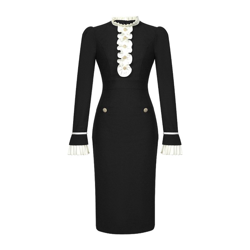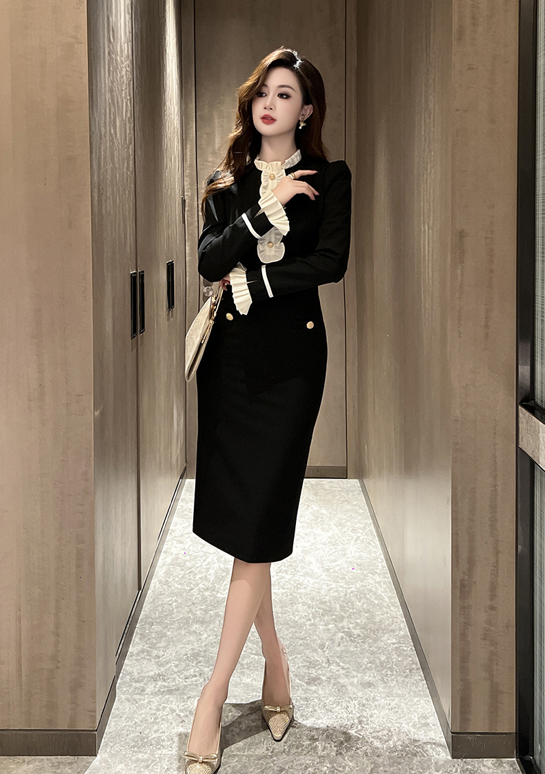Chiếc đầm này lấy cảm hứng từ phong cách thời trang cổ điển, mang đến vẻ đẹp thanh lịch và dịu dàng. Thiết kế có eo ôm tôn lên đường nét cơ thể một cách tinh tế. Điểm nhấn là sự kết hợp màu sắc trên nền đen chủ đạo, tạo nên nét thu hút riêng. Kiểu dáng phù hợp cho nhiều dịp khác nhau. Có thể mặc đi làm, dự tiệc hoặc hẹn hò. Phối cùng giày cao gót và túi xách nhỏ để hoàn thiện bộ trang phục. | Tên sản phẩm: Váy Đầm Liền Thân Nữ Hàng Mùa Xuân Thu Đông - Thời Trang Nữ | Mã sản phẩm: B0570 - Giá: 1.380.000đ | Mã nhà sản xuất: CHDG-G04Hình ảnh sản phẩm