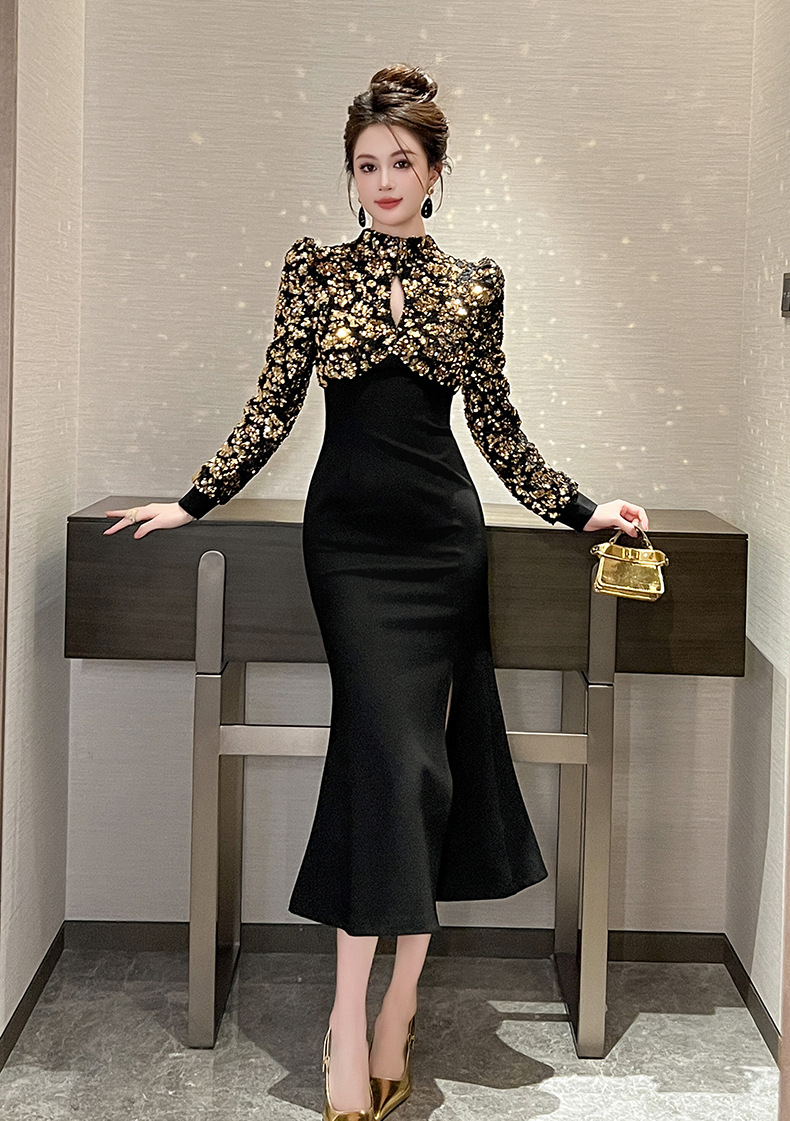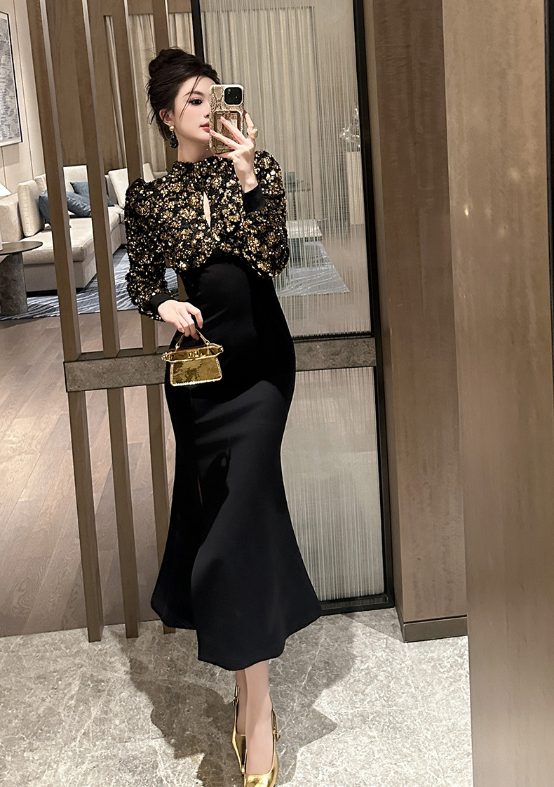 Chiếc đầm dành cho các dịp lễ hội cuối năm, với thiết kế ôm eo tôn dáng và xẻ nhẹ ở phần vạt tạo sự uyển chuyển. Chất liệu vải mềm mại kết hợp điểm nhấn là các chi tiết ánh kim lấp lánh nhỏ, phù hợp cho các buổi tiệc tối. Sản phẩm dễ dàng phối cùng giày cao gót và một vài món trang sức đơn giản để có vẻ ngoài ấn tượng. | Tên sản phẩm: Váy Đầm Liền Thân Dáng Dài Nữ Hàng Mùa Xuân Thu Đông - Thời Trang Nữ | Mã sản phẩm: B0591 - Giá: 1.380.000đ | Mã nhà sản xuất: CHDG-G04Hình ảnh sản phẩm