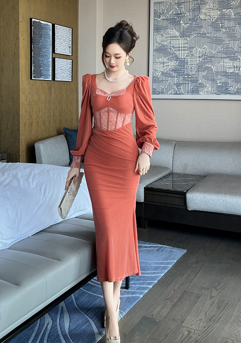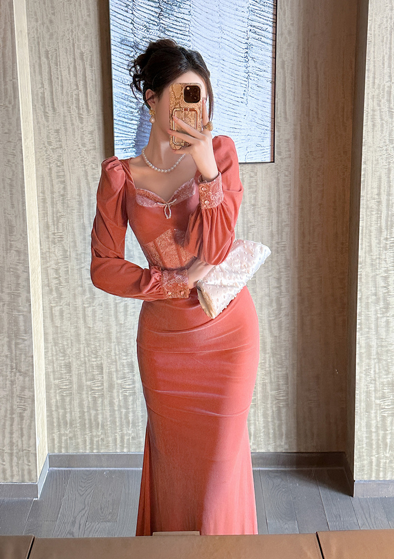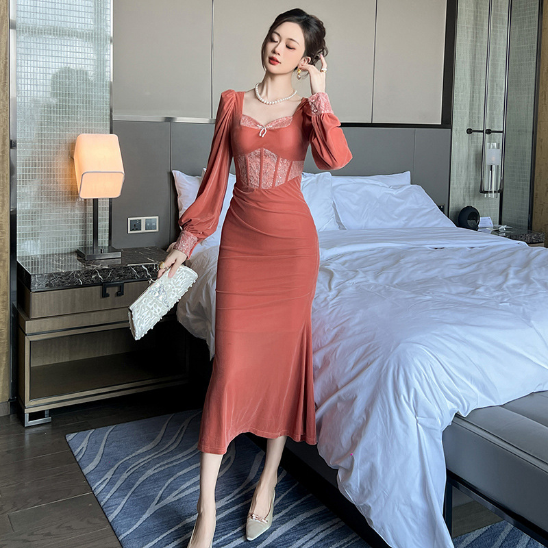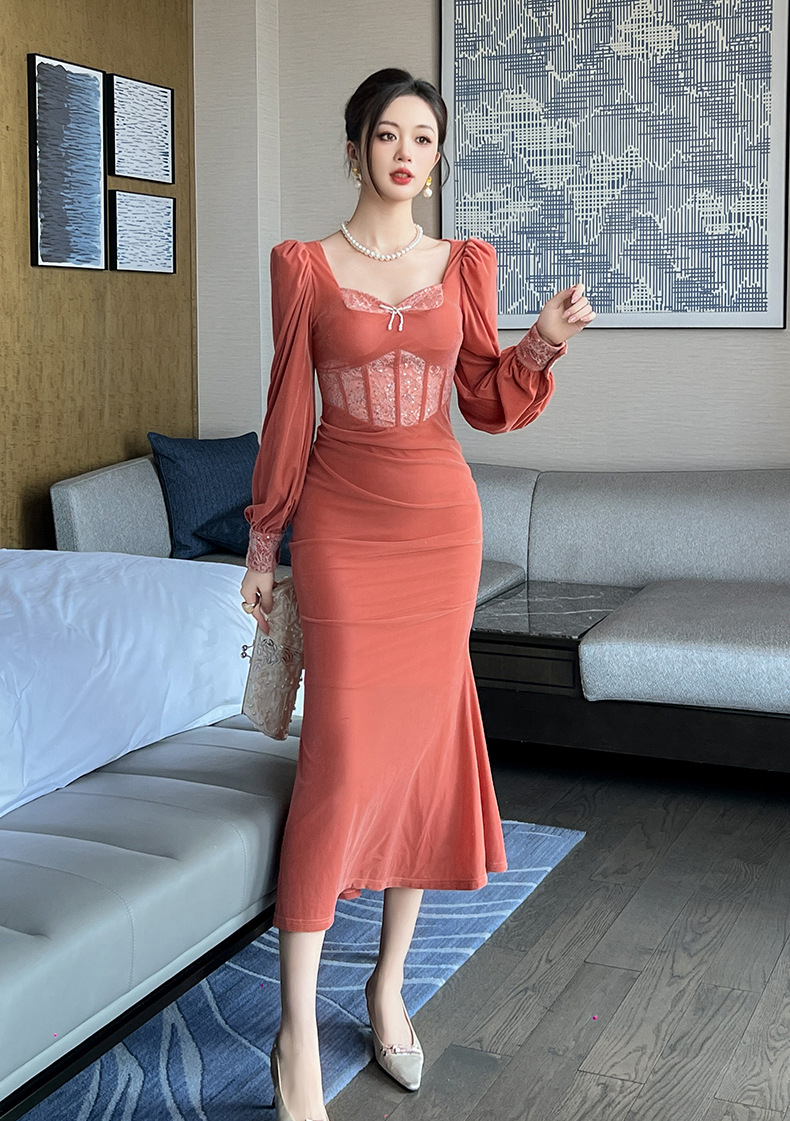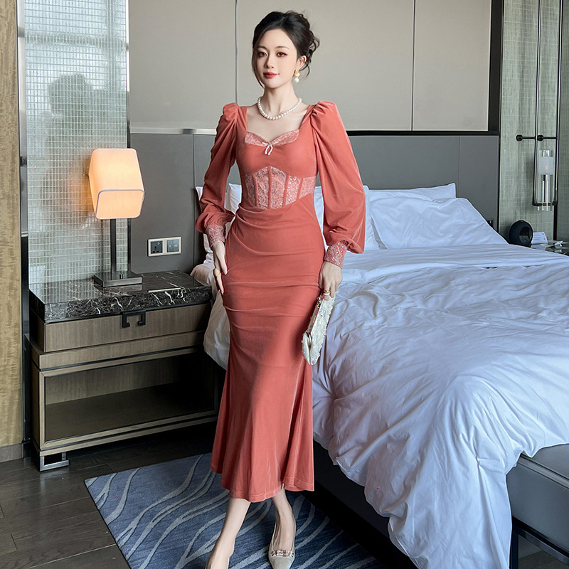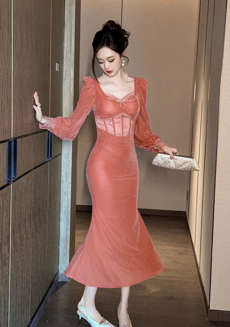 Chiếc đầm dành cho nữ, kiểu dáng ôm sát với phần cổ vuông thanh lịch. Chất liệu nhung mềm mại kết hợp điểm xuyến những chi tiết ren tinh tế ở phần tay và thân. Thiết kế đuôi cá ở phần váy tạo nên sự duyên dáng, uyển chuyển cho mỗi bước đi. Sản phẩm phù hợp để mặc trong nhiều dịp khác nhau, từ những buổi gặp mặt thân mật đến các sự kiện đòi hỏi sự chỉn chu. | Tên sản phẩm: Váy Đầm Liền Thân Nữ Chất Liệu Ren Dáng Ôm Kiểu Đuôi Cá Hàng Mùa Xuân Thu Đông - Thời Trang Nữ | Mã sản phẩm: B0602 - Giá: 1.380.000đ | Mã nhà sản xuất: CHDG-G04Hình ảnh sản phẩm