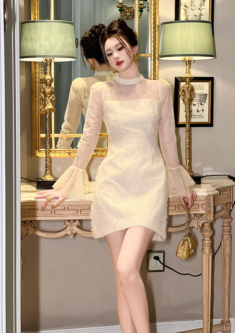 Chiếc đầm này có kiểu dáng chữ A thanh thoát, phần eo ôm nhẹ nhàng tôn lên đường nét cơ thể. Cổ tròn và tay loe rộng tạo nên điểm nhấn đặc biệt, được điểm xuyết bởi những hạt đính cầu kỳ. Chất vải dày dặn mềm mại, phù hợp cho thời tiết mát mẻ. Bạn có thể phối cùng giày cao gót và túi xách nhỏ để hoàn thiện bộ trang phục. | Tên sản phẩm: Váy Đầm Liền Thân Nữ Hàng Mùa Xuân Thu Đông - Thời Trang Nữ | Mã sản phẩm: B0608 - Giá: 1.280.000đ | Mã nhà sản xuất: CHDG-G04Hình ảnh sản phẩm