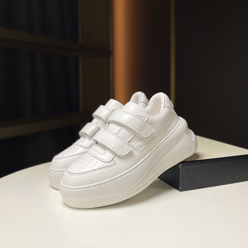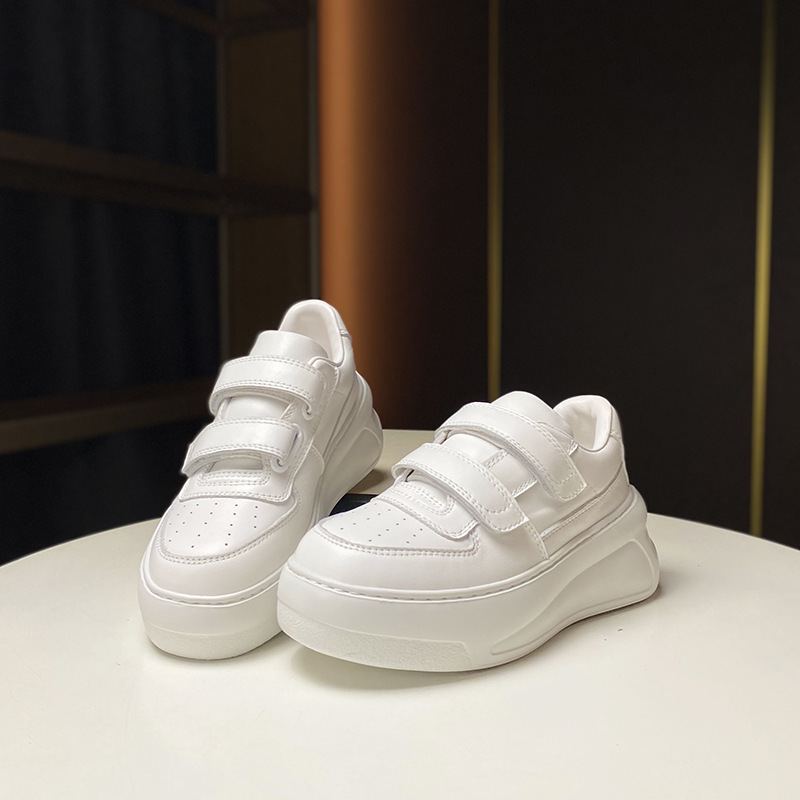 Đôi giày vải trắng nữ này có phần đế được thiết kế dày hơn một cách tinh tế, giúp tôn lên dáng vóc của người mang. Sản phẩm sử dụng chất liệu da thật cho cảm giác mềm mại và thoải mái. Kiểu dáng thể thao năng động, phối cùng miếng dán khóa dính tiện lợi, dễ dàng điều chỉnh độ ôm vừa vặn. Đây là lựa chọn phù hợp cho những hoạt động thường ngày, mang lại sự thoải mái và dễ chịu từ bước chân đầu tiên. | Tên sản phẩm: Giày Thể Thao Tăng Chiều Cao Nữ Chất Liệu Da Bò Tăng Chiều Cao Đế Cao Hàng Mùa Xuân Thu Đông - Giày Dép Nữ | Mã sản phẩm: B0642 - Giá: 2.260.000đ | Mã nhà sản xuất: GUDT-G05Hình ảnh sản phẩm