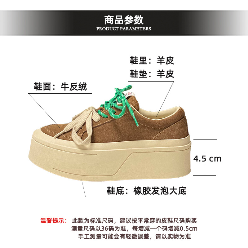 Giày nữ đế dành cho mùa thu với chất liệu da mềm mịn, bề mặt được xử lý cho cảm giác nhẹ nhàng. Thiết kế đế dày giúp tăng chiều cao một cách tinh tế, phù hợp cho những bạn gái có vóc dáng nhỏ. Sản phẩm có hai dây buộc điều chỉnh linh hoạt, tạo điểm nhấn năng động. Kiểu dáng thoải mái, dễ phối cùng nhiều trang phục hàng ngày như quần jeans hay váy. Chỉ cần buộc dây và vệ sinh bề mặt bằng khăn mềm sau khi sử dụng. | Tên sản phẩm: Giày Thể Thao Tăng Chiều Cao Nữ Chất Liệu Da Bò Tăng Chiều Cao Đế Cao Hàng Mùa Xuân Thu Đông - Giày Dép Nữ | Mã sản phẩm: B0644 - Giá: 2.160.000đ | Mã nhà sản xuất: GUDT-G05Hình ảnh sản phẩm