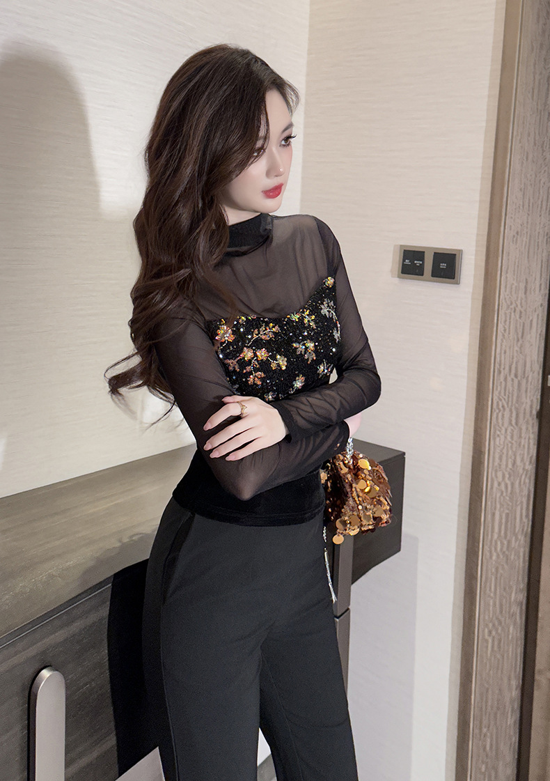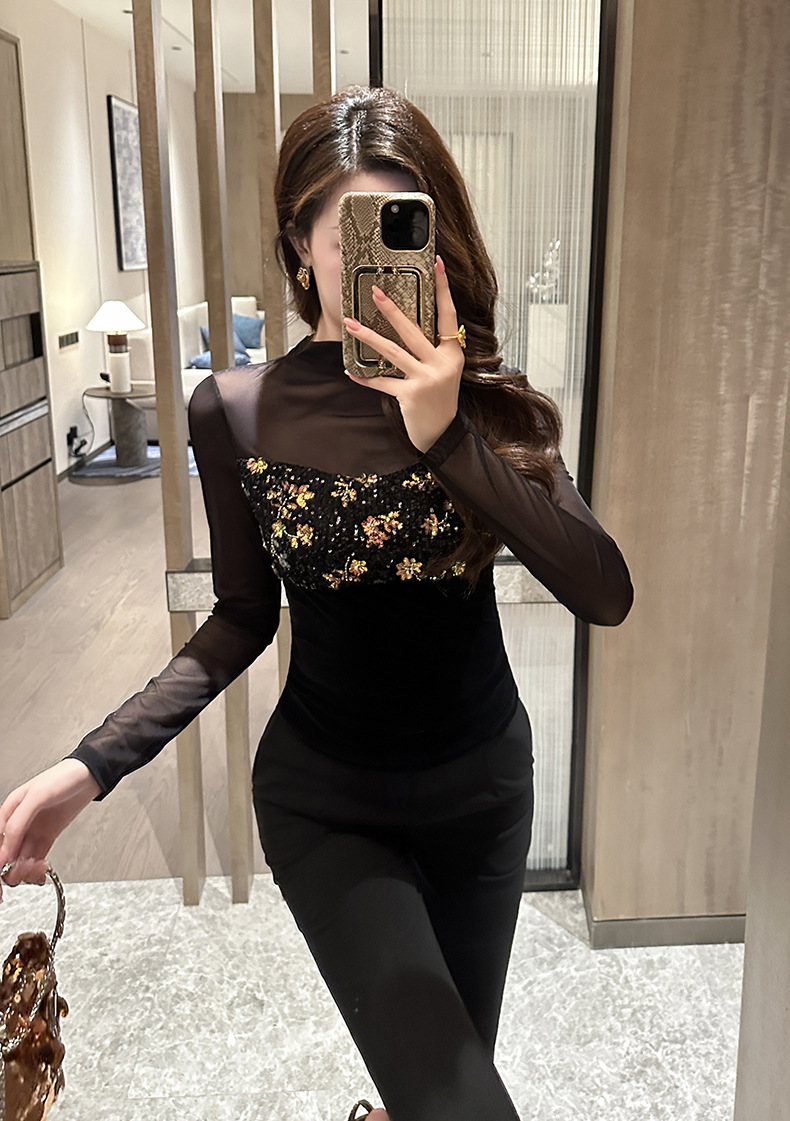 Áo dáng ôm body với điểm nhấn là phần tay và cổ được kết hợp từ chất liệu voan mỏng nhẹ, tạo nên vẻ đẹp vừa dịu dàng vừa quyến rũ. Thân áo điểm xuyết những chi tiết ánh kim lấp lánh tinh tế. Kiểu dáng giúp tôn lên những đường nét cơ thể một cách tự nhiên. Sản phẩm phù hợp để mặc bên trong hoặc phối cùng chân váy, quần jeans đi chơi, dự tiệc. Giặt tay nhẹ nhàng để giữ form áo và độ bền của chi tiết trang trí. | Tên sản phẩm: Áo Lót Nữ Dáng Ôm Lưới Mỏng Hàng Mùa Xuân Thu Đông - Thời Trang Nữ | Mã sản phẩm: B0651 - Giá: 640.000đ | Mã nhà sản xuất: CHDG-G02Hình ảnh sản phẩm