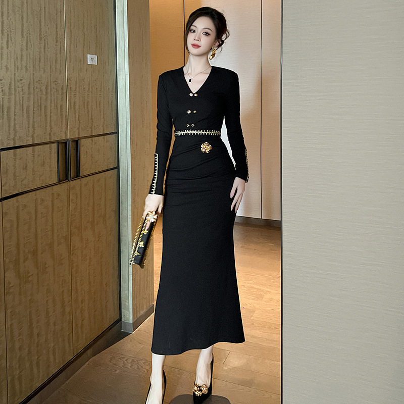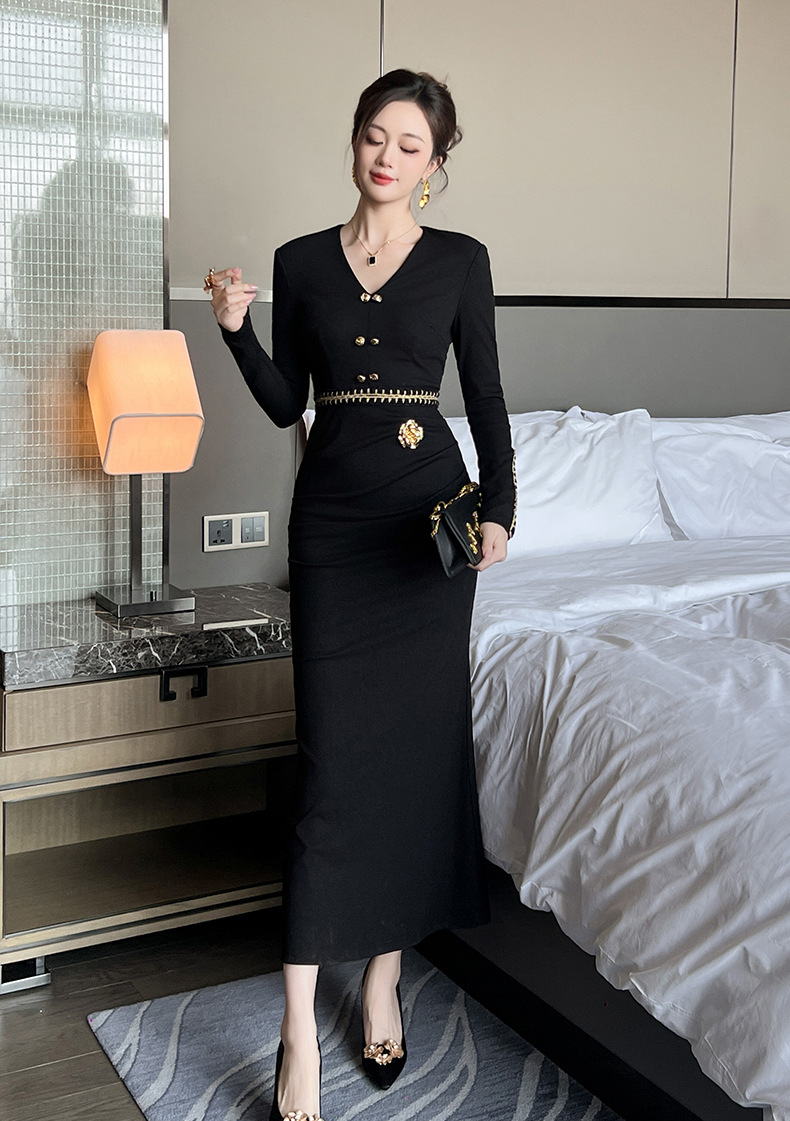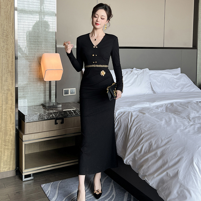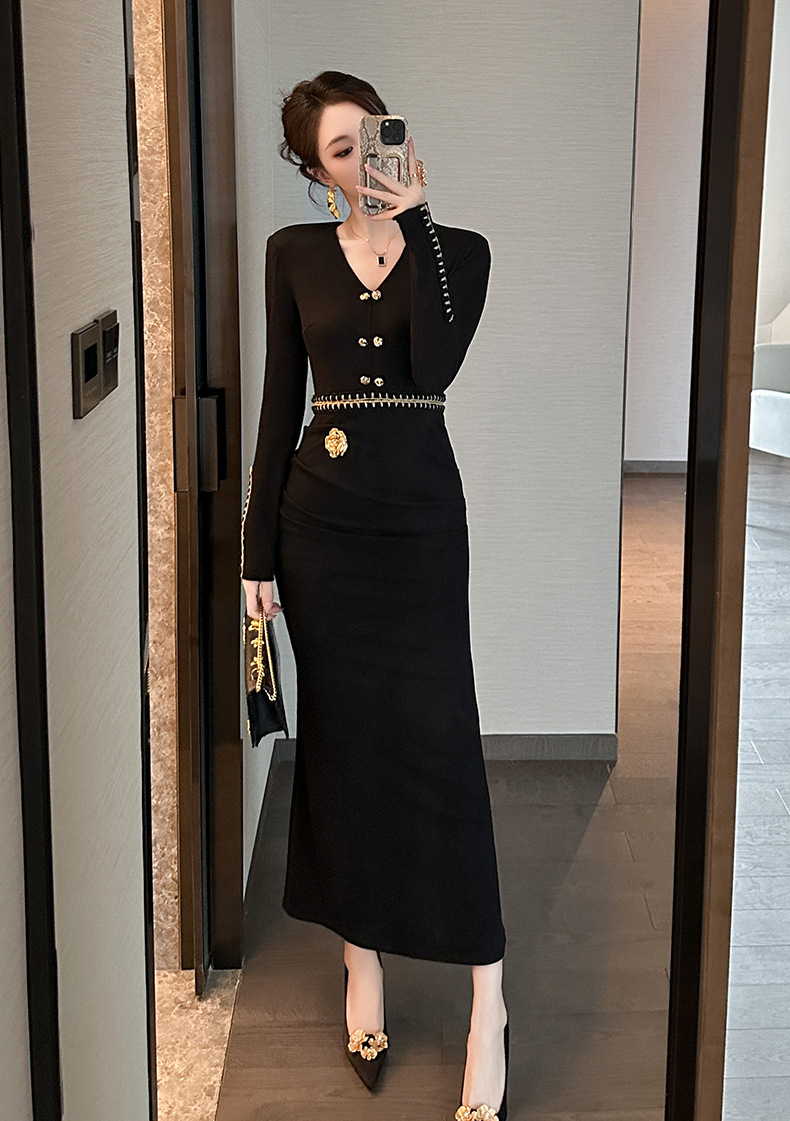 Chiếc đầm ôm dáng dành cho nữ, lấy cảm hứng từ phong cách thanh lịch kinh điển. Thiết kế cổ chữ V tạo điểm nhấn tinh tế, kết hợp cùng kiểu dáng dài và bó sát phần mông, giúp tôn lên các đường nét cơ thể. Chất liệu vải mềm mại, có độ co giãn nhẹ mang lại sự thoải mái khi mặc. Sản phẩm phù hợp cho nhiều dịp trong ngày. Có thể giặt bằng máy và phơi khô một cách dễ dàng. | Tên sản phẩm: Váy Đầm Liền Thân Nữ Dáng Ôm Cổ Chữ V Hàng Mùa Xuân Thu Đông - Thời Trang Nữ | Mã sản phẩm: B0661 - Giá: 1.280.000đ | Mã nhà sản xuất: CHDG-G04Hình ảnh sản phẩm
