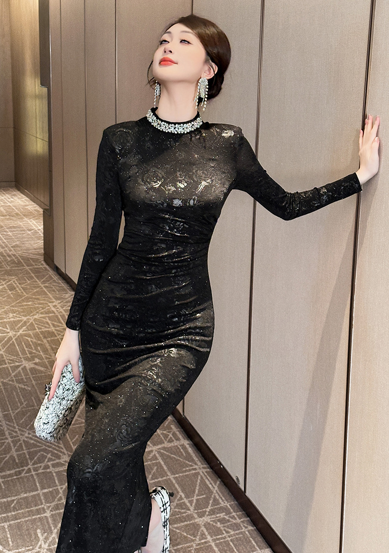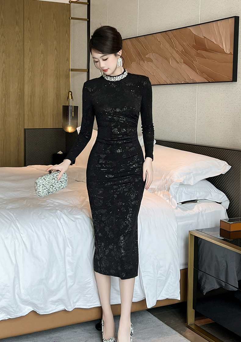 Đầm dự tiệc tôn dáng với form ôm body và cổ tròn thanh lịch. Chất liệu nhung mềm mại, in họa tiết tinh tế và được trang trí tỉ mỉ bằng đường viền đính hạt cườm lấp lánh. Sản phẩm phù hợp cho các buổi tiệc tối hoặc sự kiện. Bạn có thể kết hợp cùng giày cao gót và phụ kiện đơn giản để tạo điểm nhấn cho set đồ. | Tên sản phẩm: Váy Đầm Liền Thân Nữ Dáng Ôm Họa Tiết Hoa Hàng Mùa Xuân Thu Đông - Thời Trang Nữ | Mã sản phẩm: B0665 - Giá: 1.090.000đ | Mã nhà sản xuất: CHDG-G03Hình ảnh sản phẩm